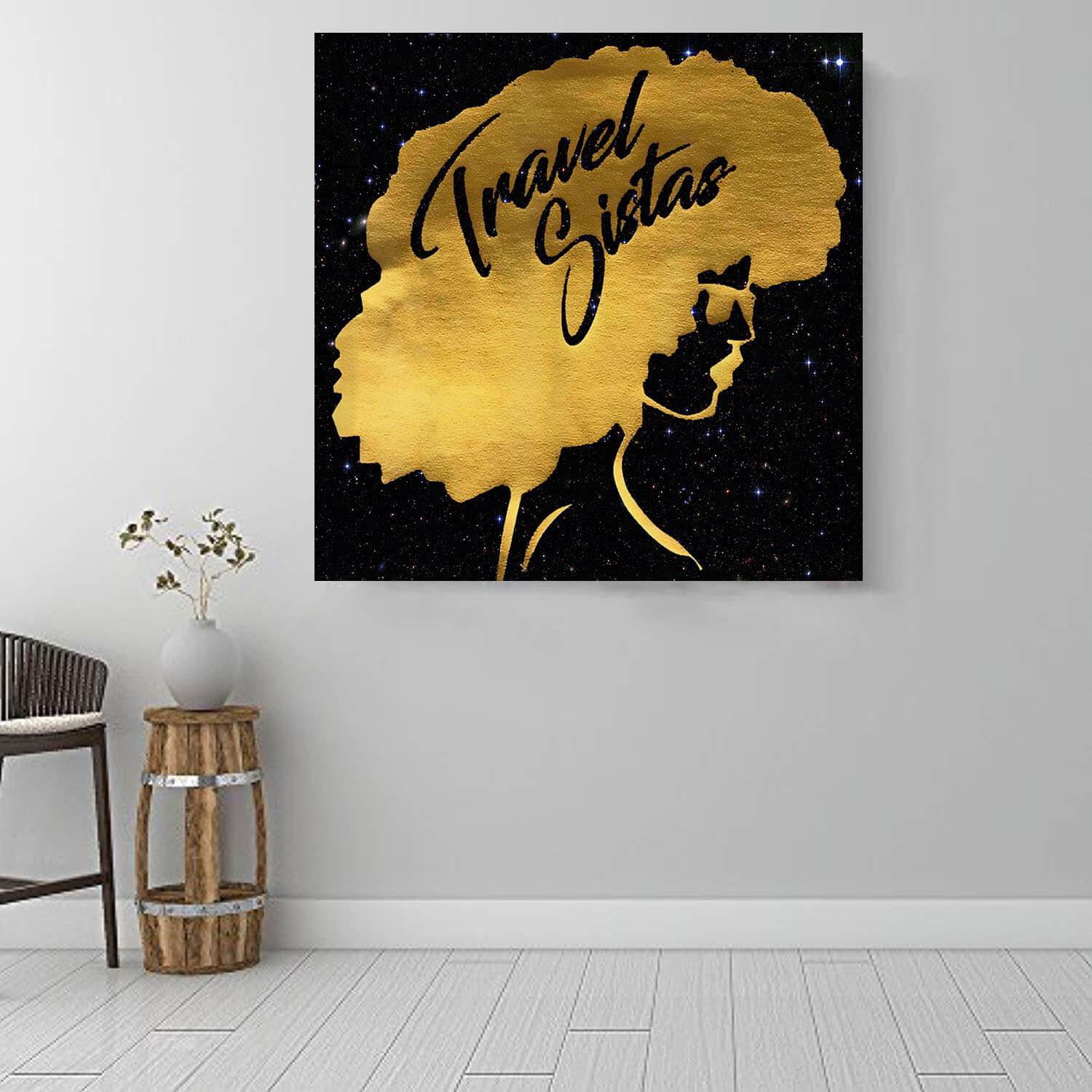 African American Art On Canvas Black Girls Travel Sistas Gold Afrocentric Living Room Decor BPS7315
