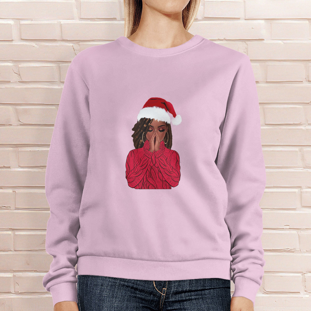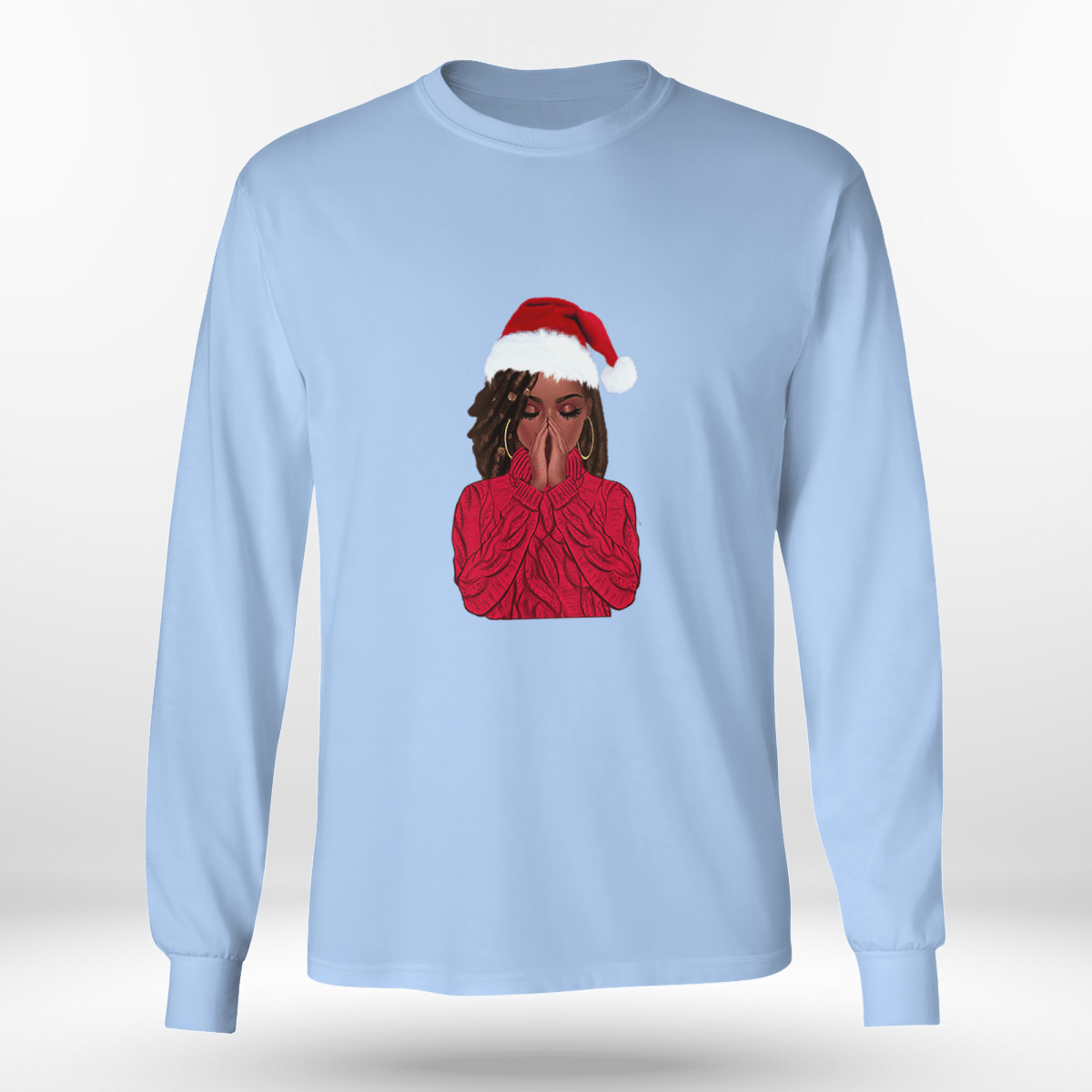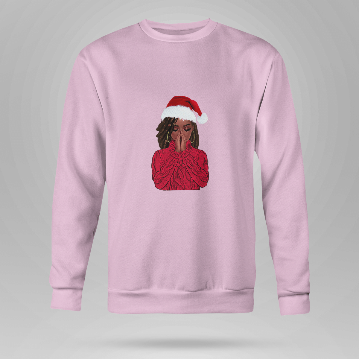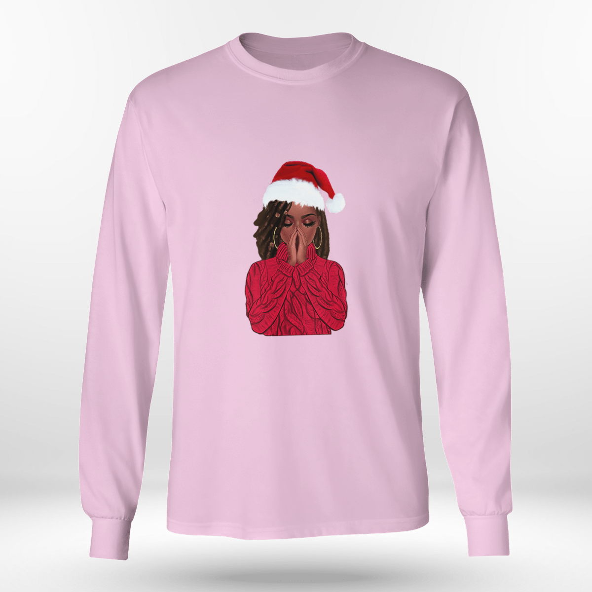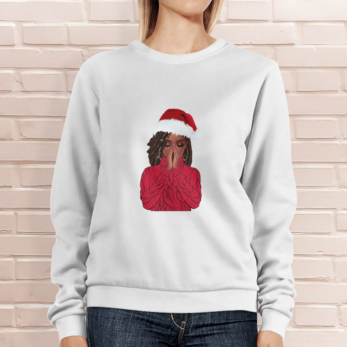 Afro Girl Pray Santa Hat Sweatshirt Hoodie Black Girl Christmas Shirt