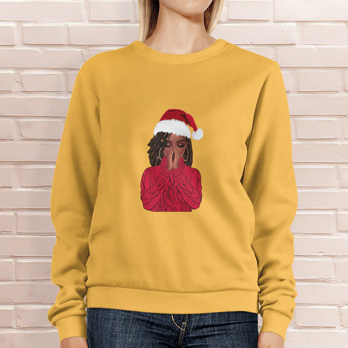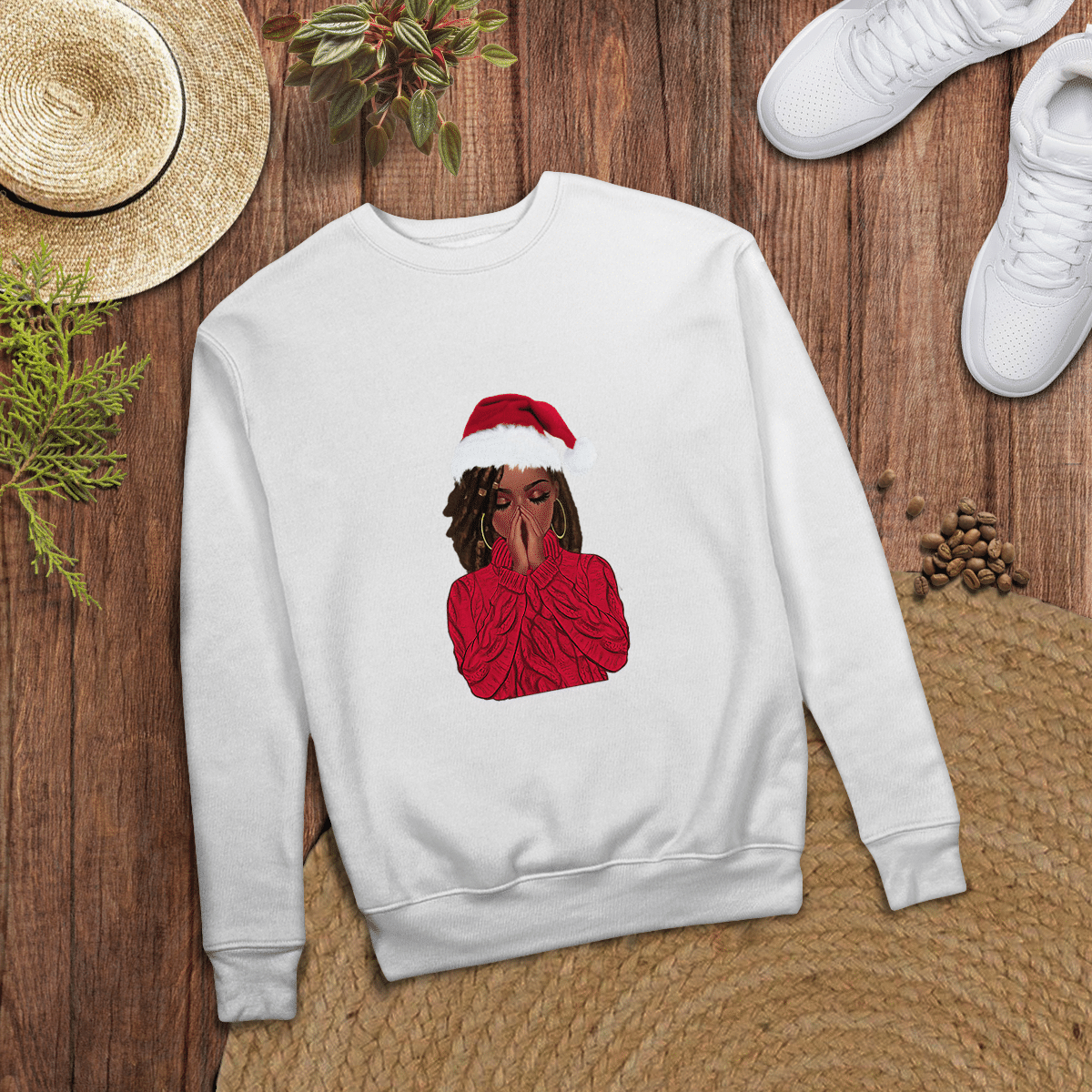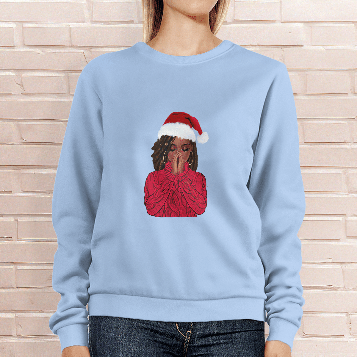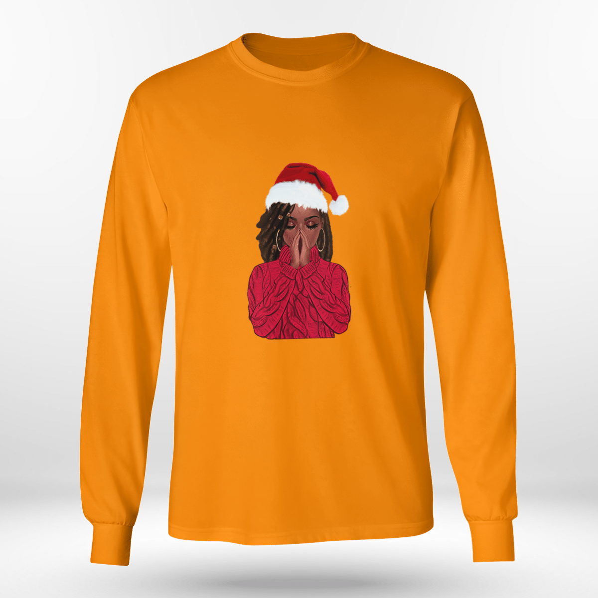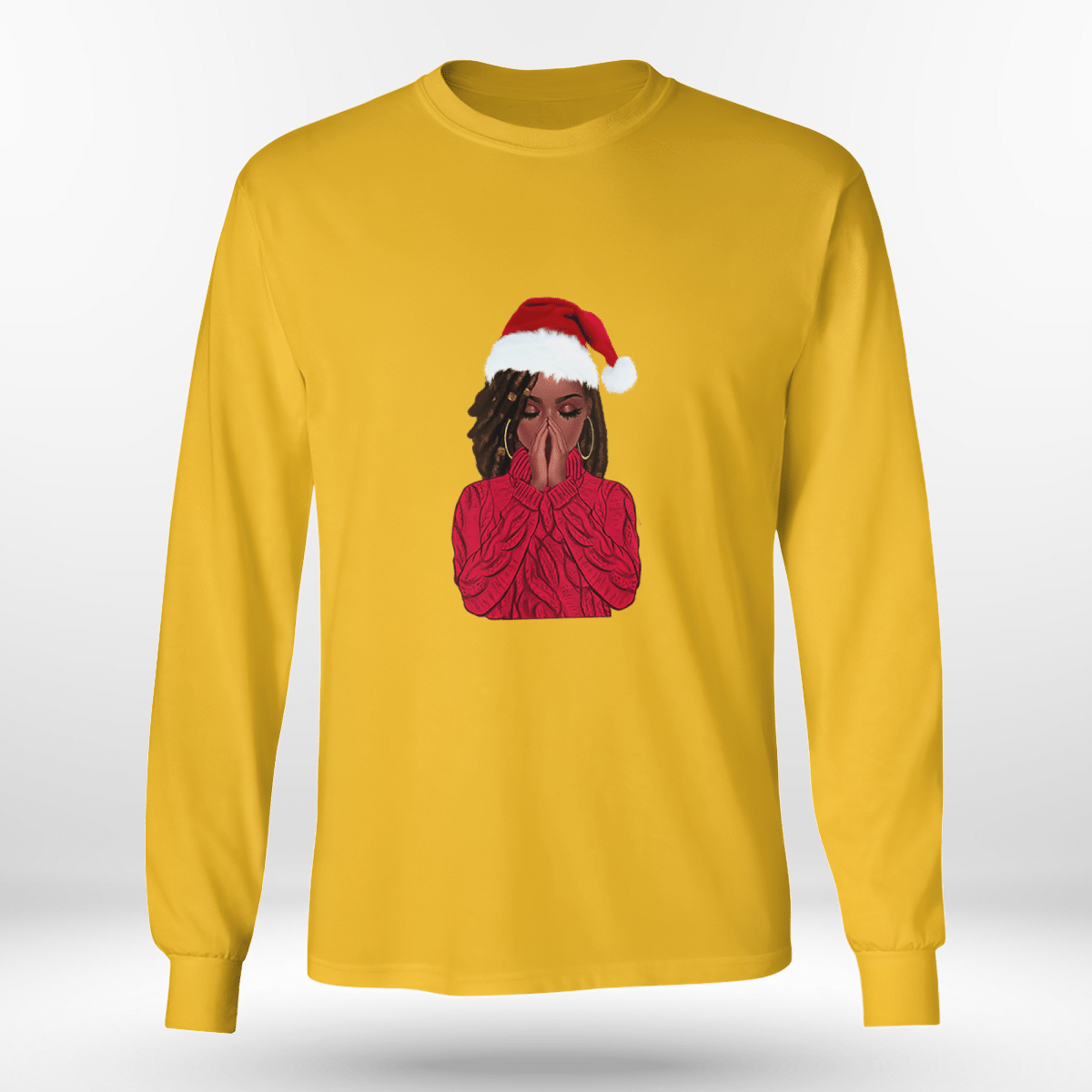 Afro Girl Pray Santa Hat Sweatshirt Hoodie Black Girl Christmas Shirt