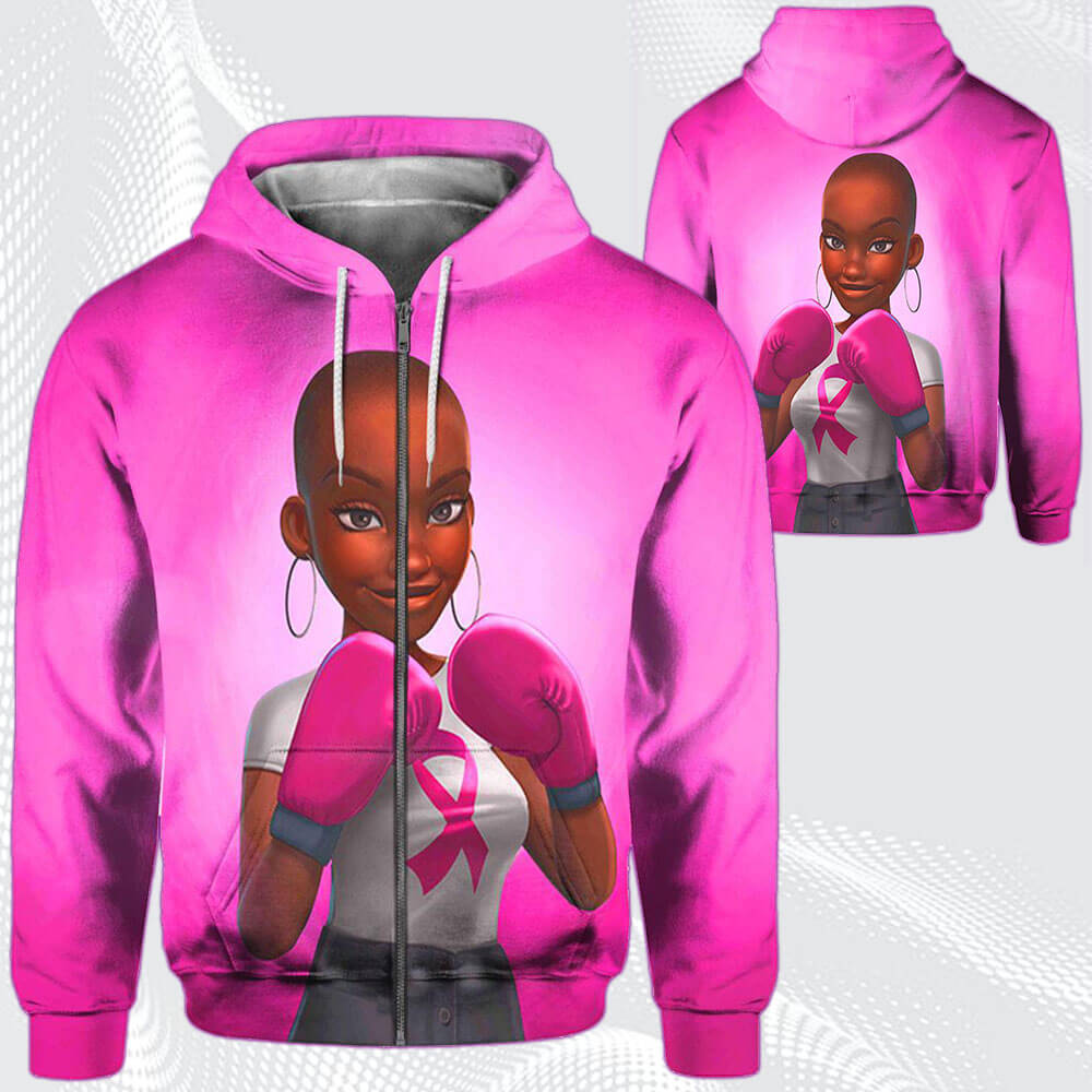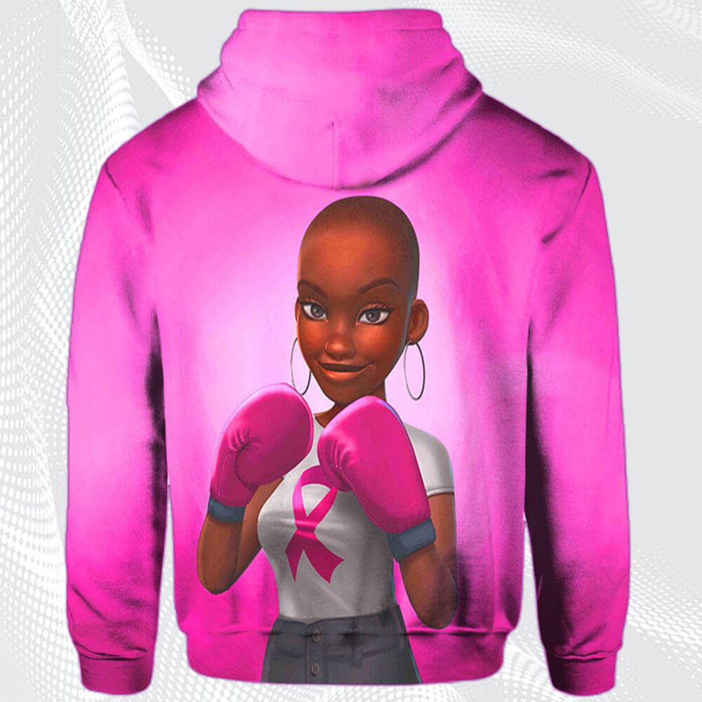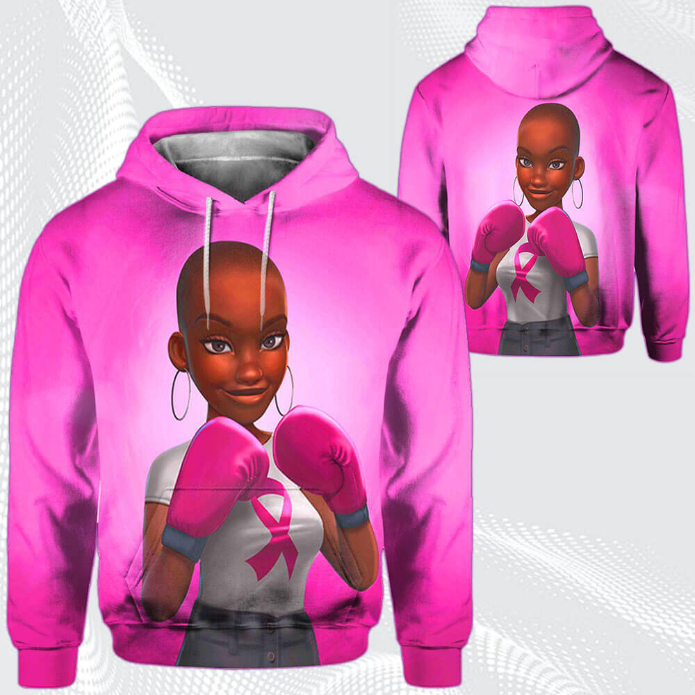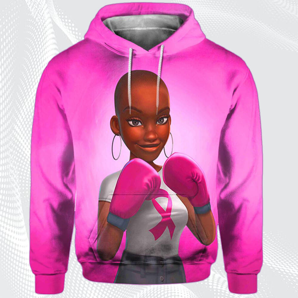 Afrocentric Dress Cute Afro Girl Breast Cancer Awareness Black Art All Over Print Womens Hooded Sweatshirt Black Women Are Fighters Afrocentric Clothing