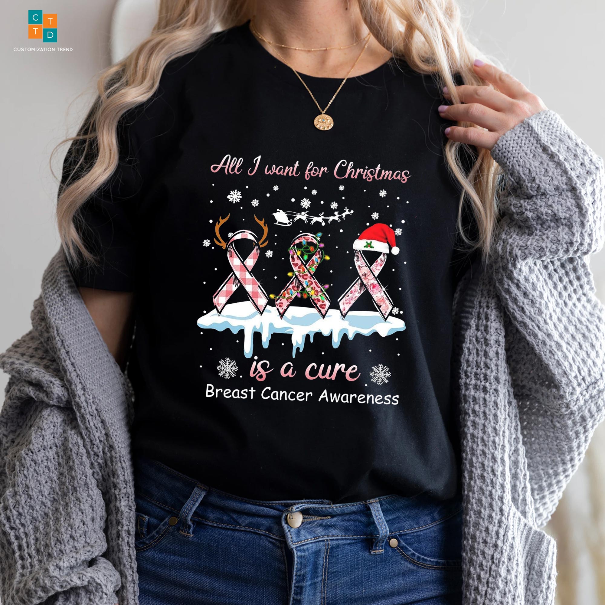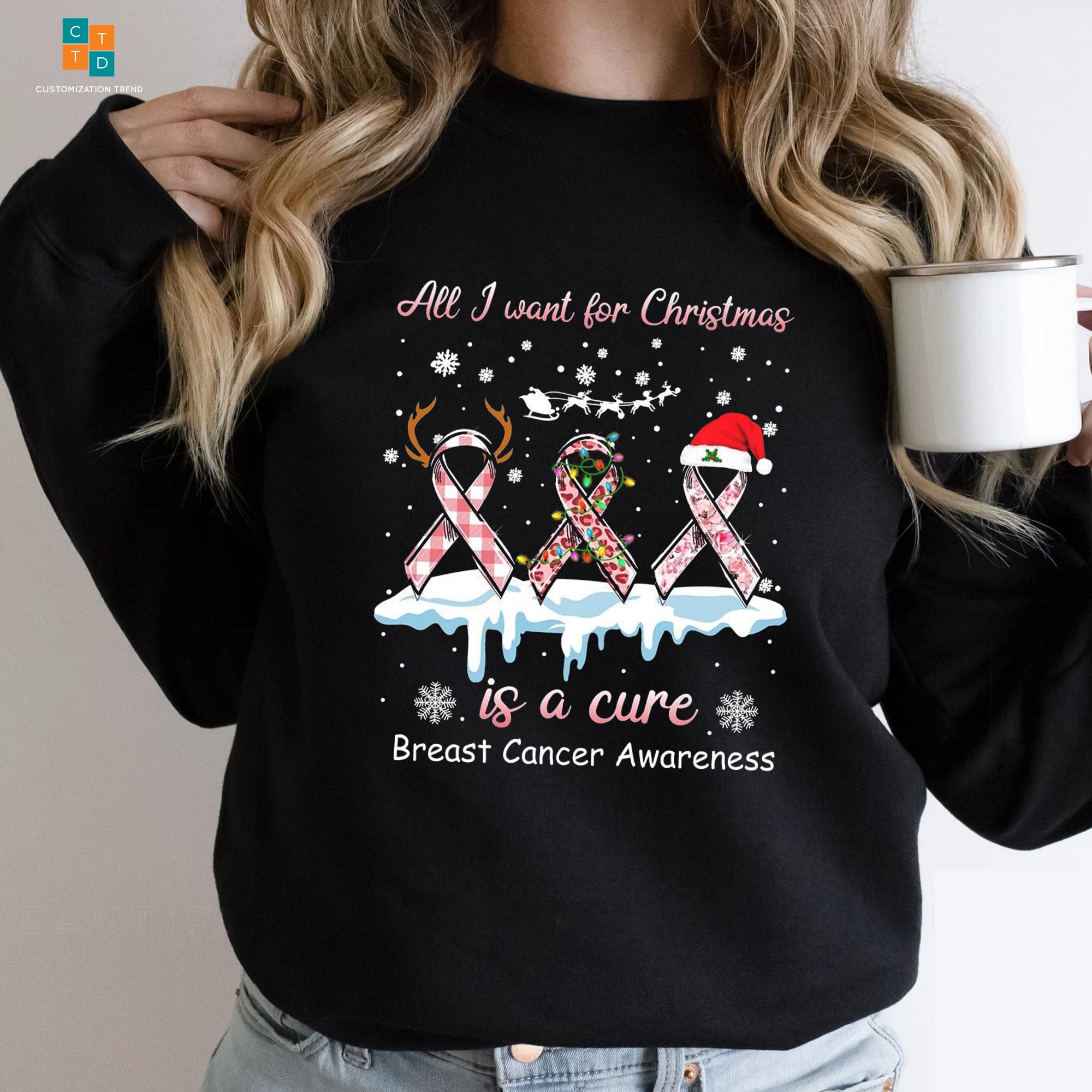 All I Want For Christmas Is A Cure Breast Cancer Awareness Hoodie, Shirt