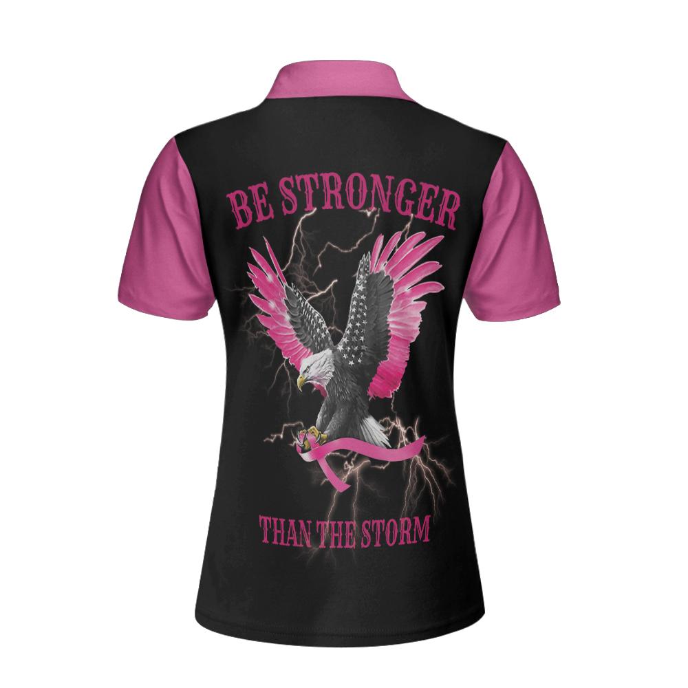 Be Stronger Than The Storm Breast Cancer Awareness Short Sleeve Women Polo Shirt, Eagle Awareness Ribbon Polo Shirt For Ladies