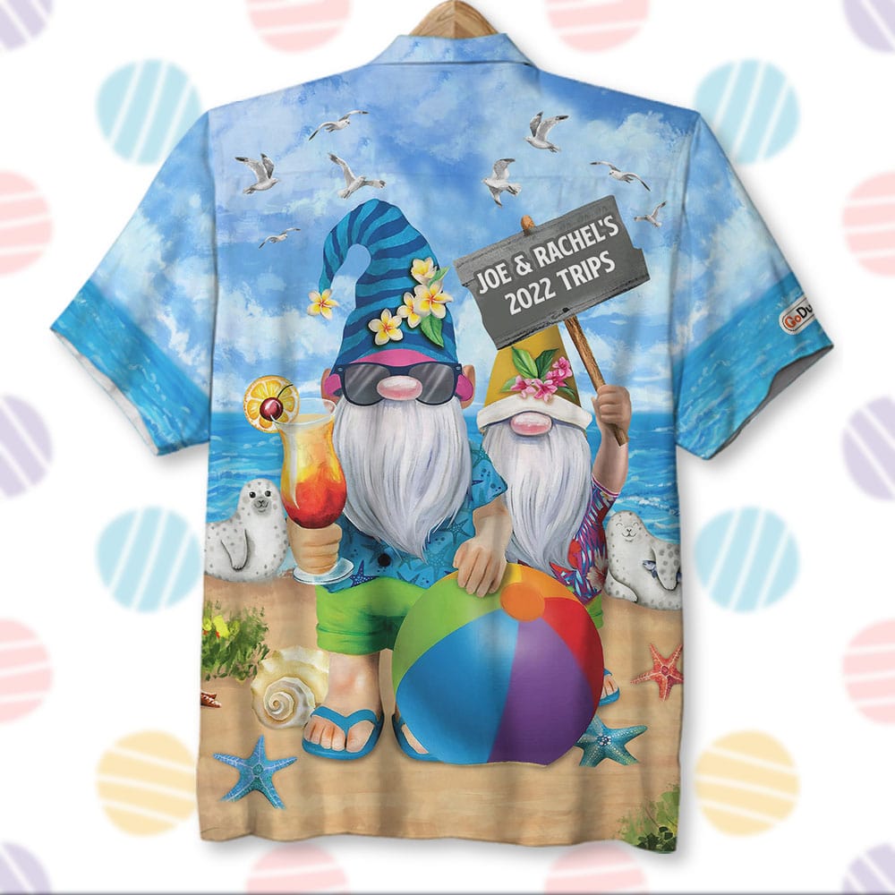 Beach Gnome Couple Together, Personalized Hawaiian Shirt, Summer Gifts For Couple