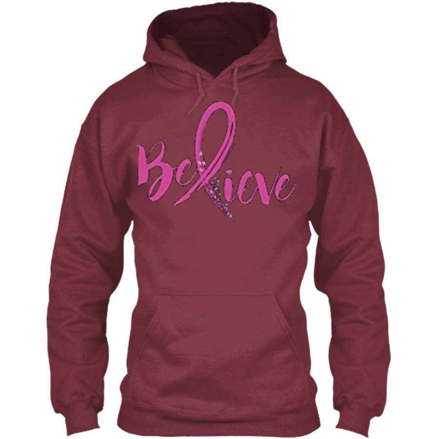 Believe – Women Breast Cancer Awareness Fight T-Shirt Pullover Hoodie 8 oz
