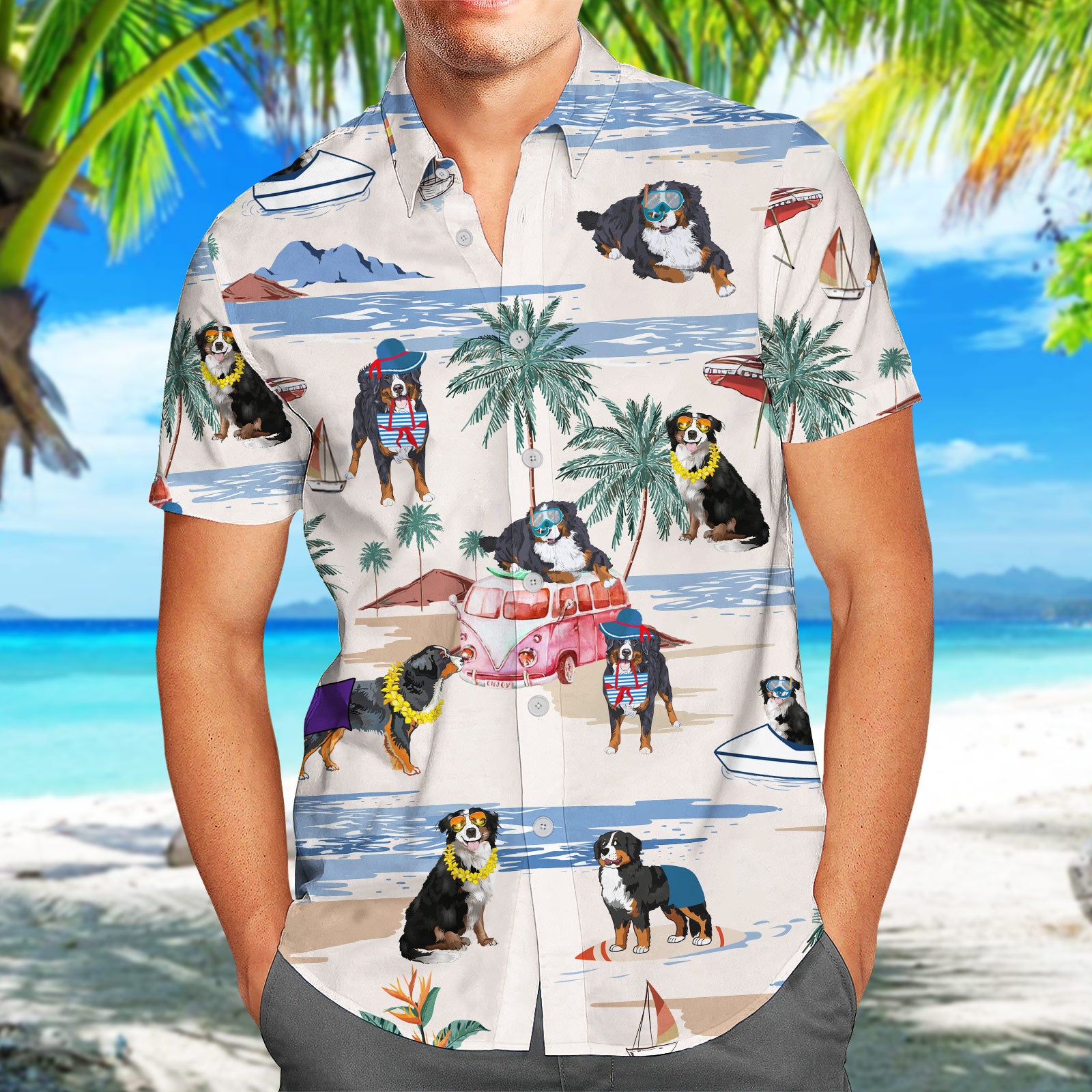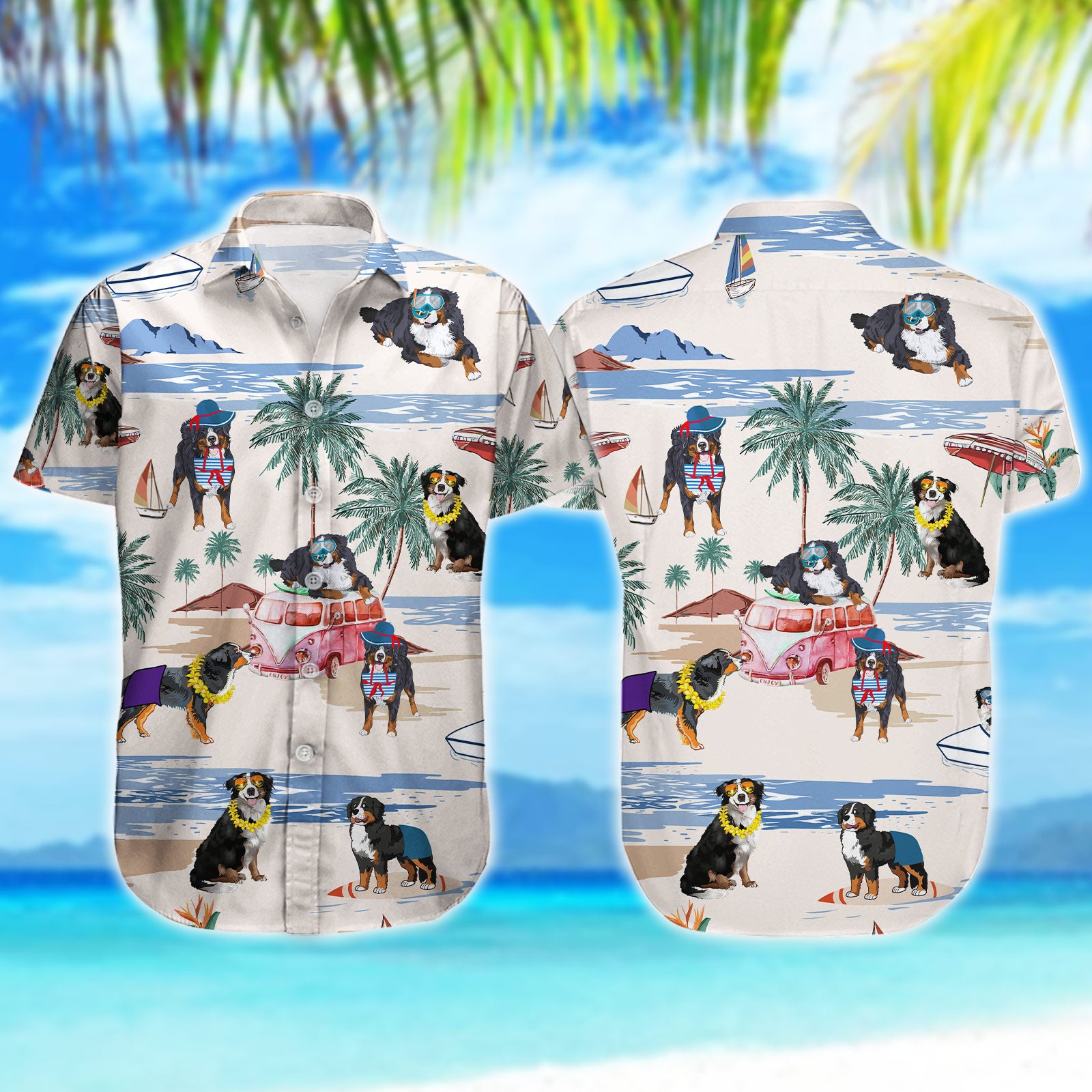 Bernese Mountain Summer Beach Button Shirt, Bernese Mountain Button Shirt, Bernese Dog Summer Hawaiian Shirt, Dog Hawaiian Shirt, Summer Beach Shirt