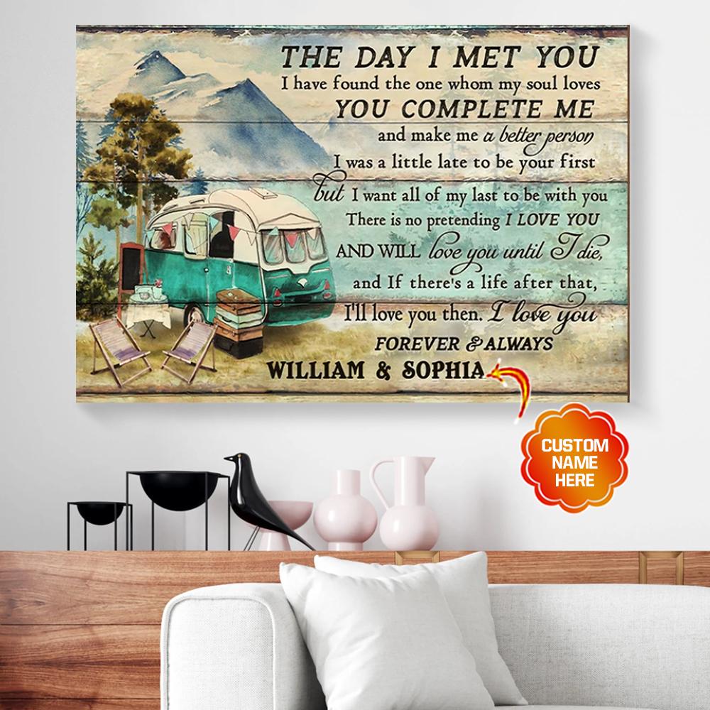 Bestieship Personalized Gift For Couple Camping Bus Canvas Wall Art The Day I Met You