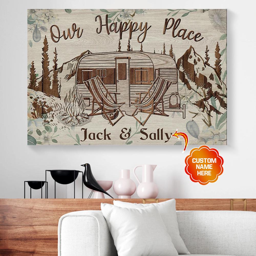 Bestieship Personalized Gift For Couple Camping Floral Canvas Our Happy Place