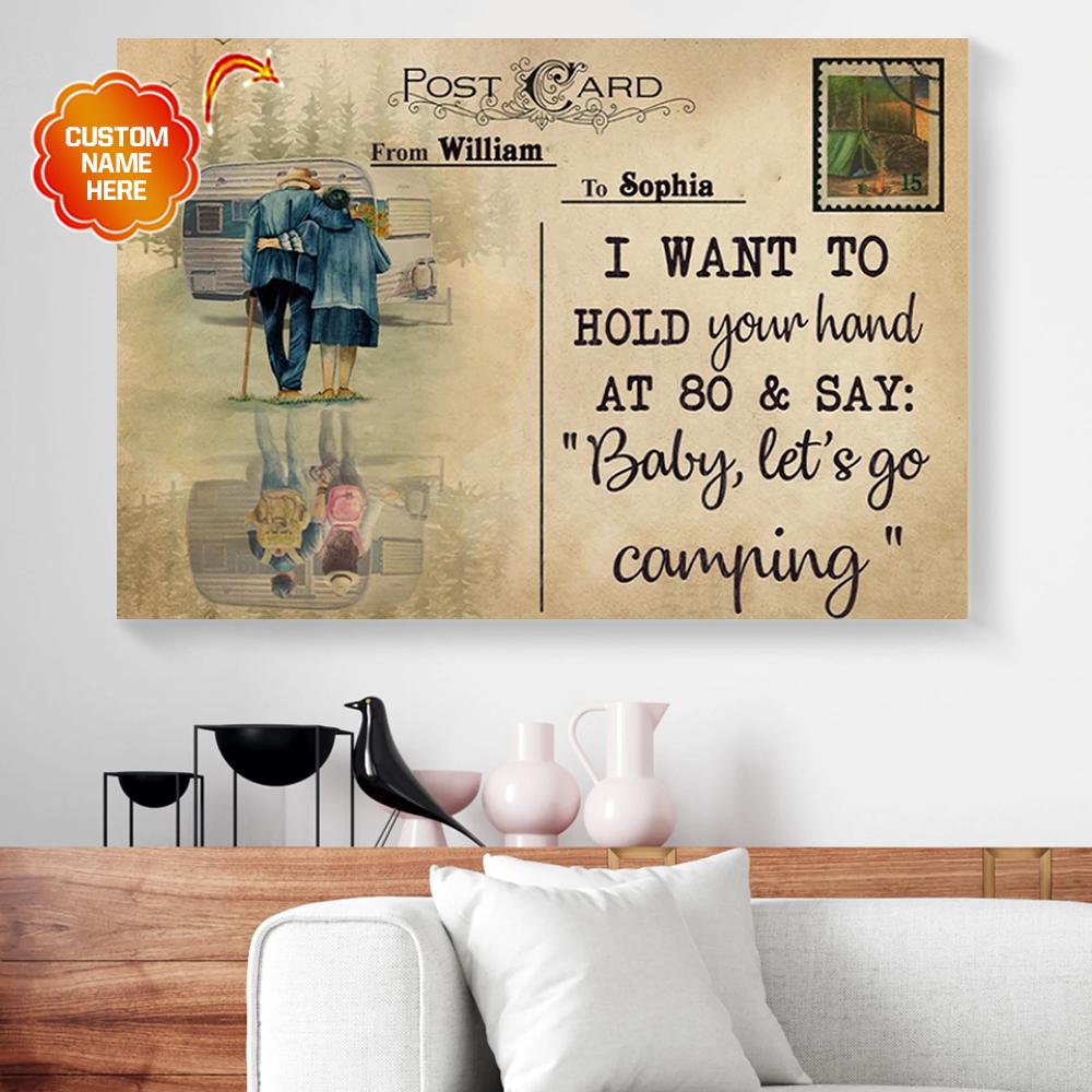 Bestieship Personalized Gift For Couple Camping Postcard Canvas Hold Your Hand