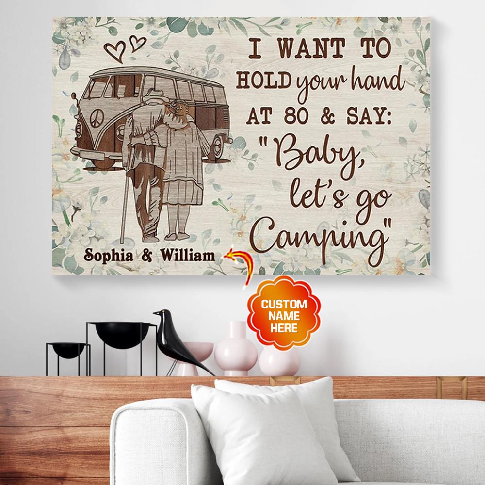 Bestieship Personalized Gift For Couple Camping Van Floral Canvas Hold Your Hand