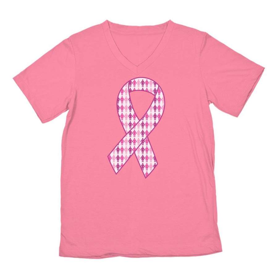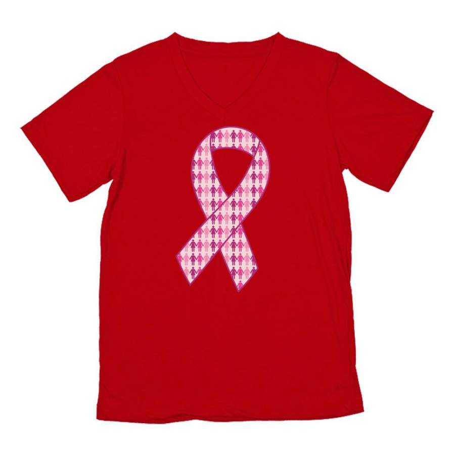 Big Breast Cancer Awareness Ribbon V-Neck T-Shirt