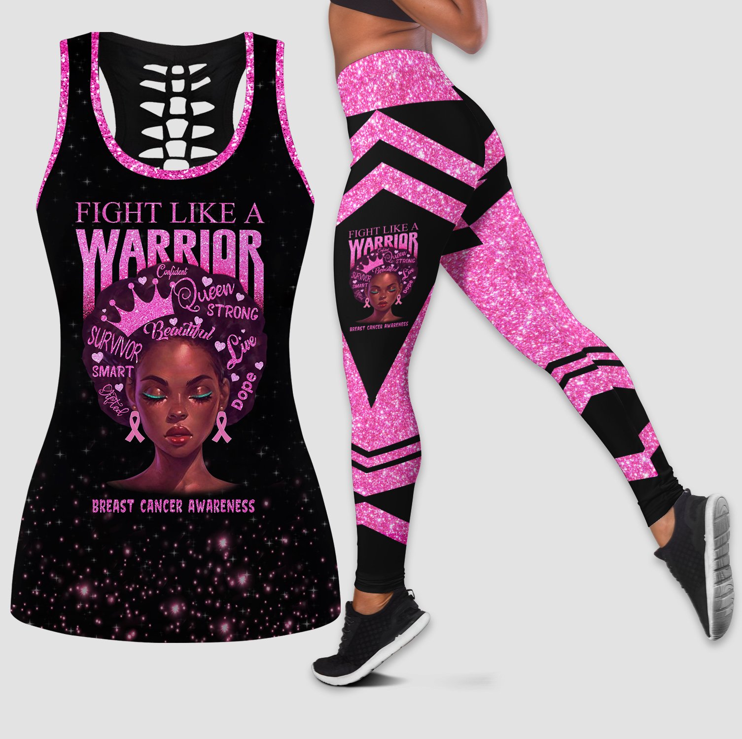Black American Gift Black Girl Fight Like A Warrior Breast Cancer Awareness Tank Top And Leggings Set Hg