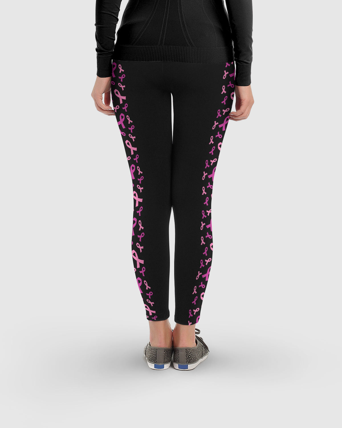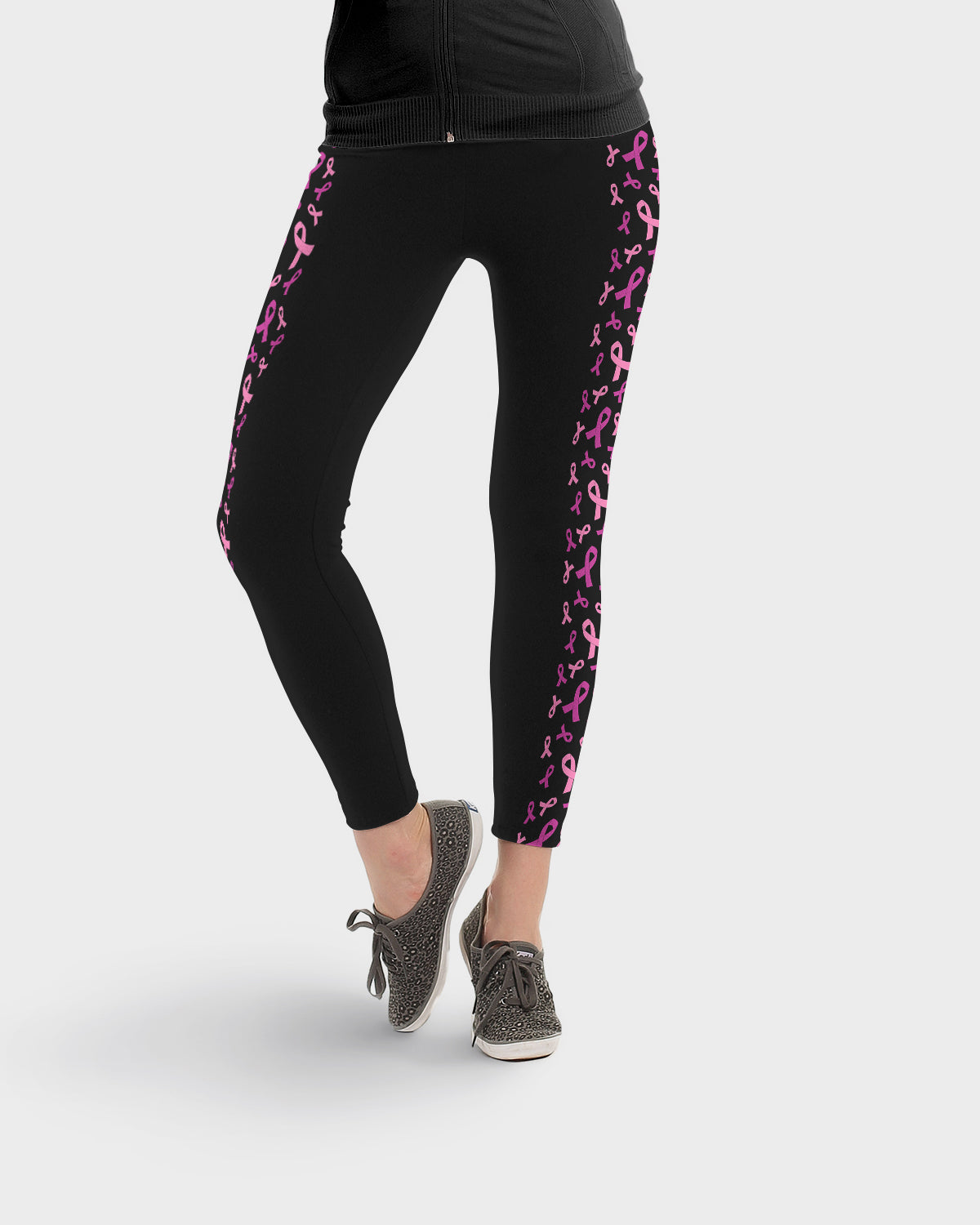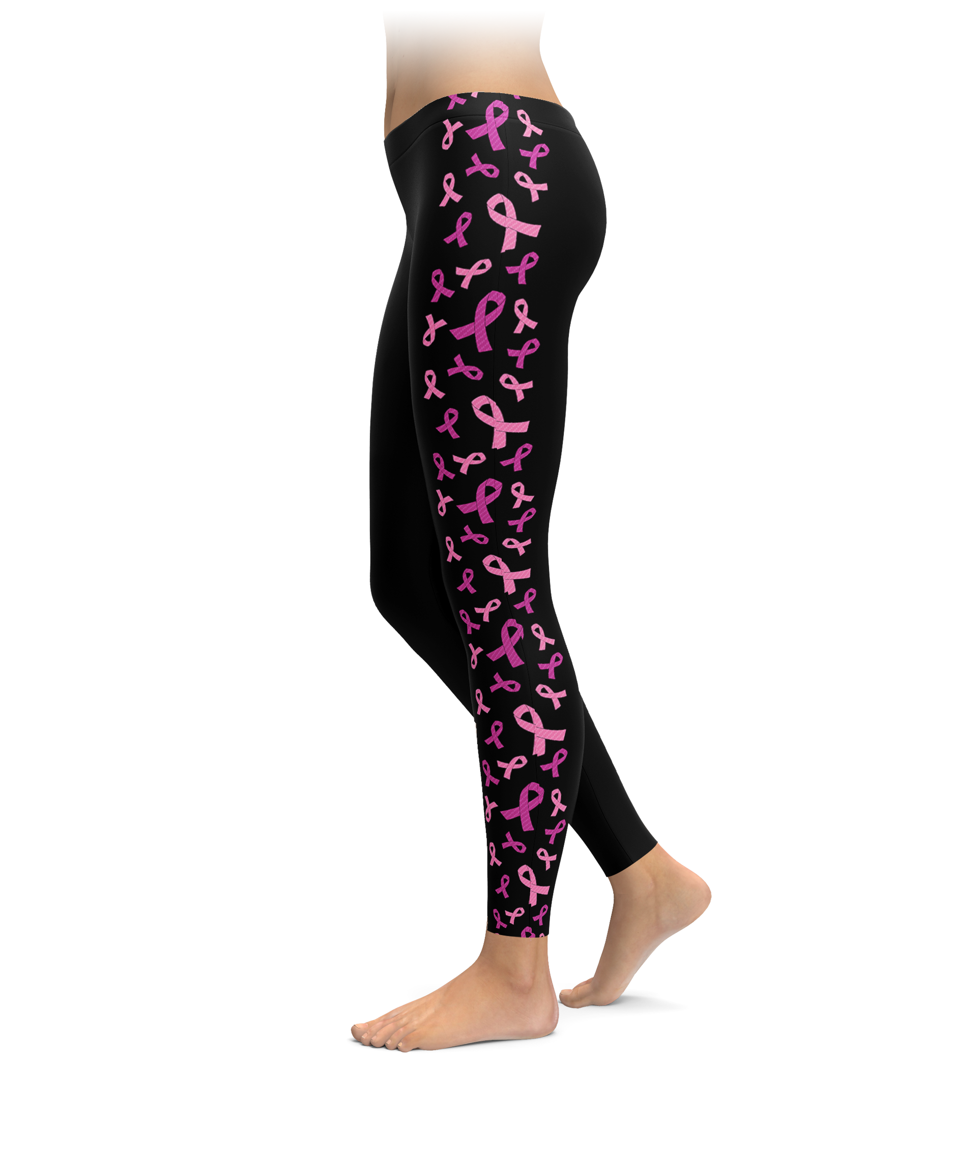 Black Breast Cancer Awareness Ribbon Side Stripe Leggings
