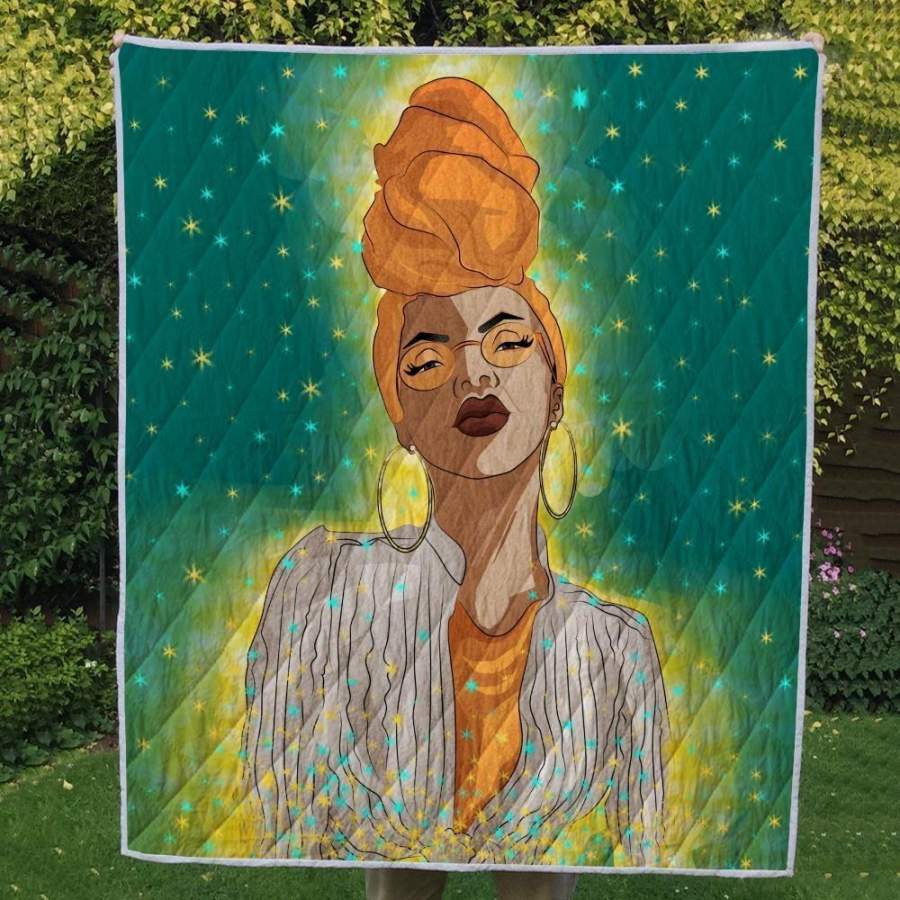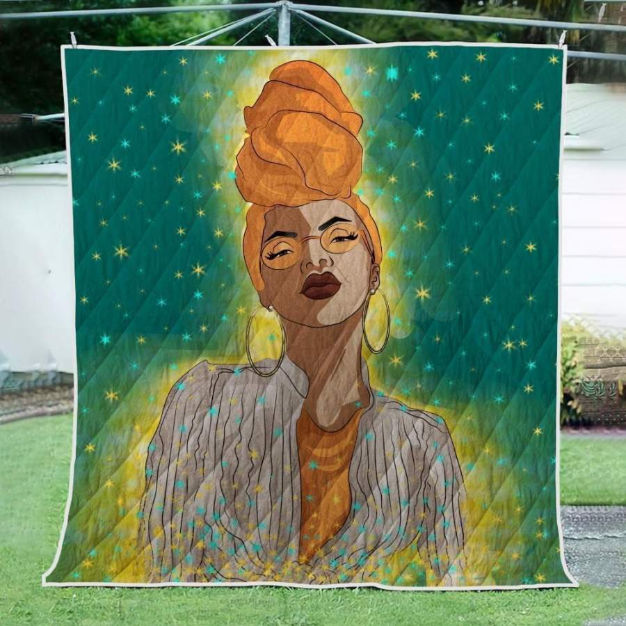 Black Girl Headwrap Art – Beauty Magic Headwraps Quilt Blanket Christmas Gift Ideas