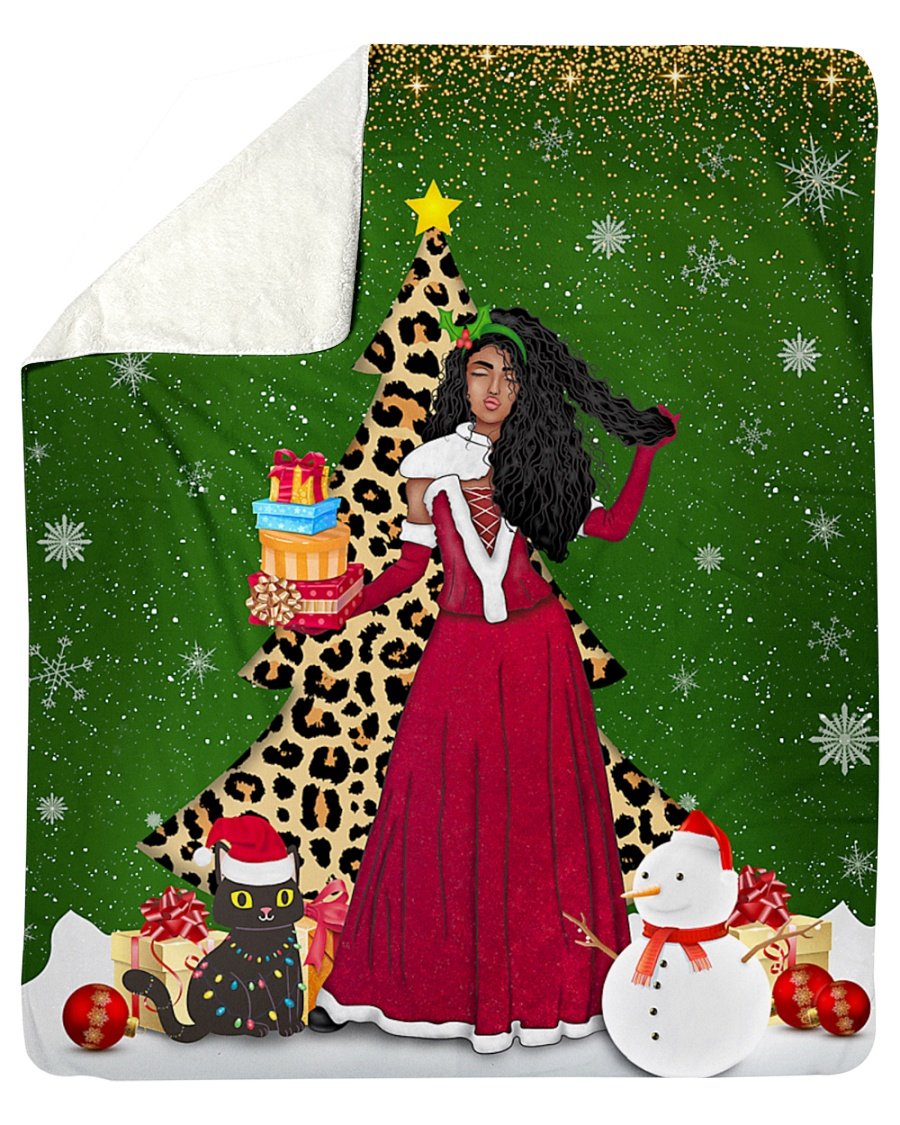Black Girl Long Hair Claus Christmas Gift 3D Fleece Blanket – Quilt Blanket