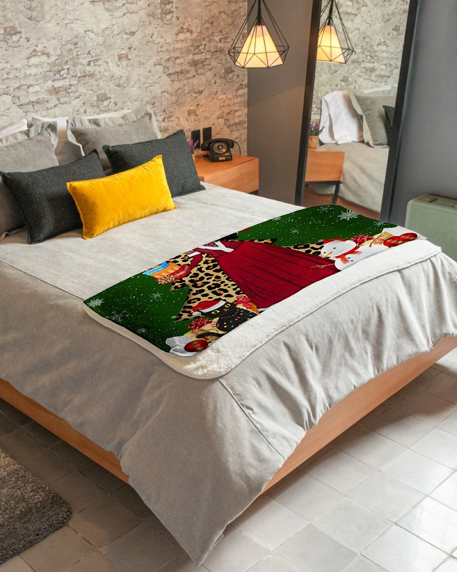 Black Girl Long Hair Claus Christmas Gift 3D Fleece Blanket