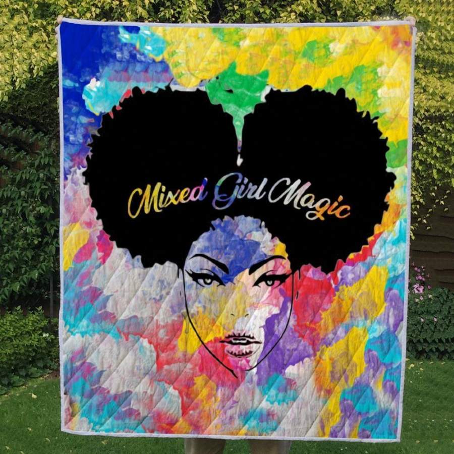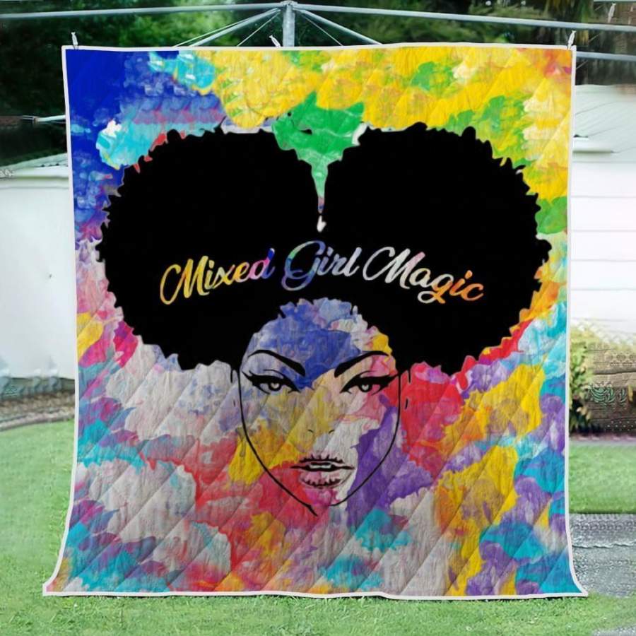 Black Girl Magic Art Quilt Blanket – Mixed Melanin Poppin Girl Magic Quilt Blanket Christmas Gift Ideas
