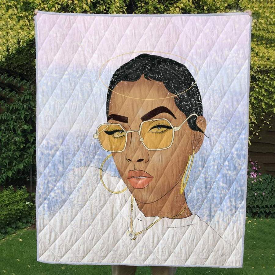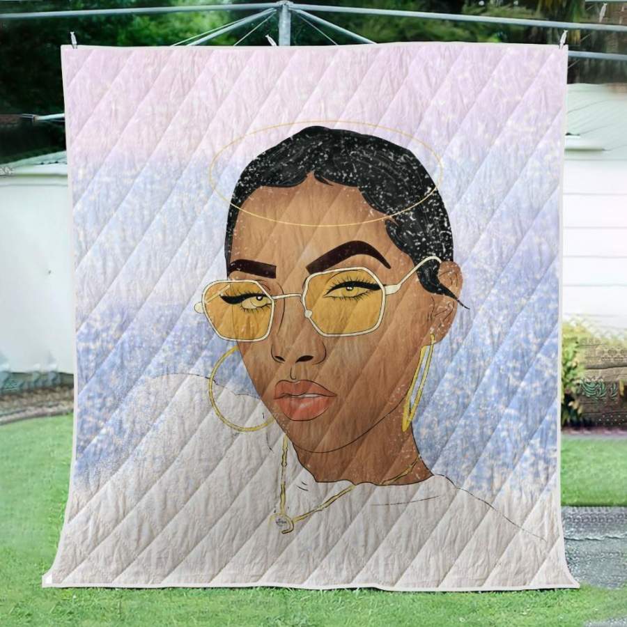 Black Girl Magic Quilt Blanket – Natural Short Hair Girl Style Quilt Blanket Christmas Gift Ideas