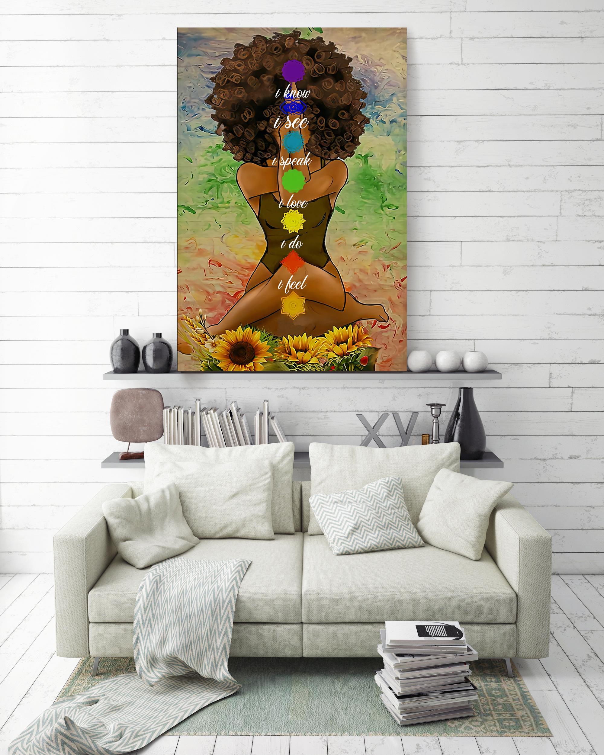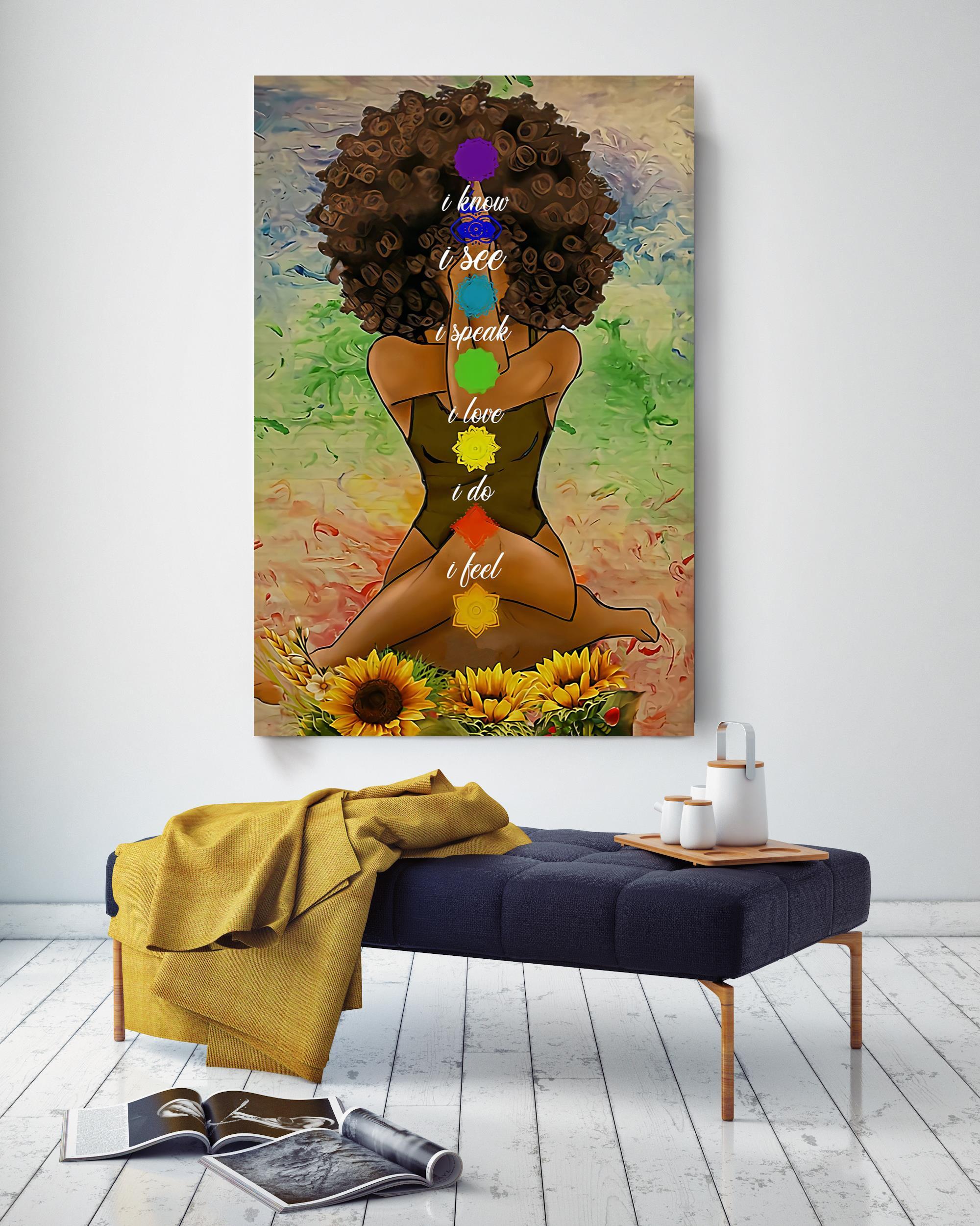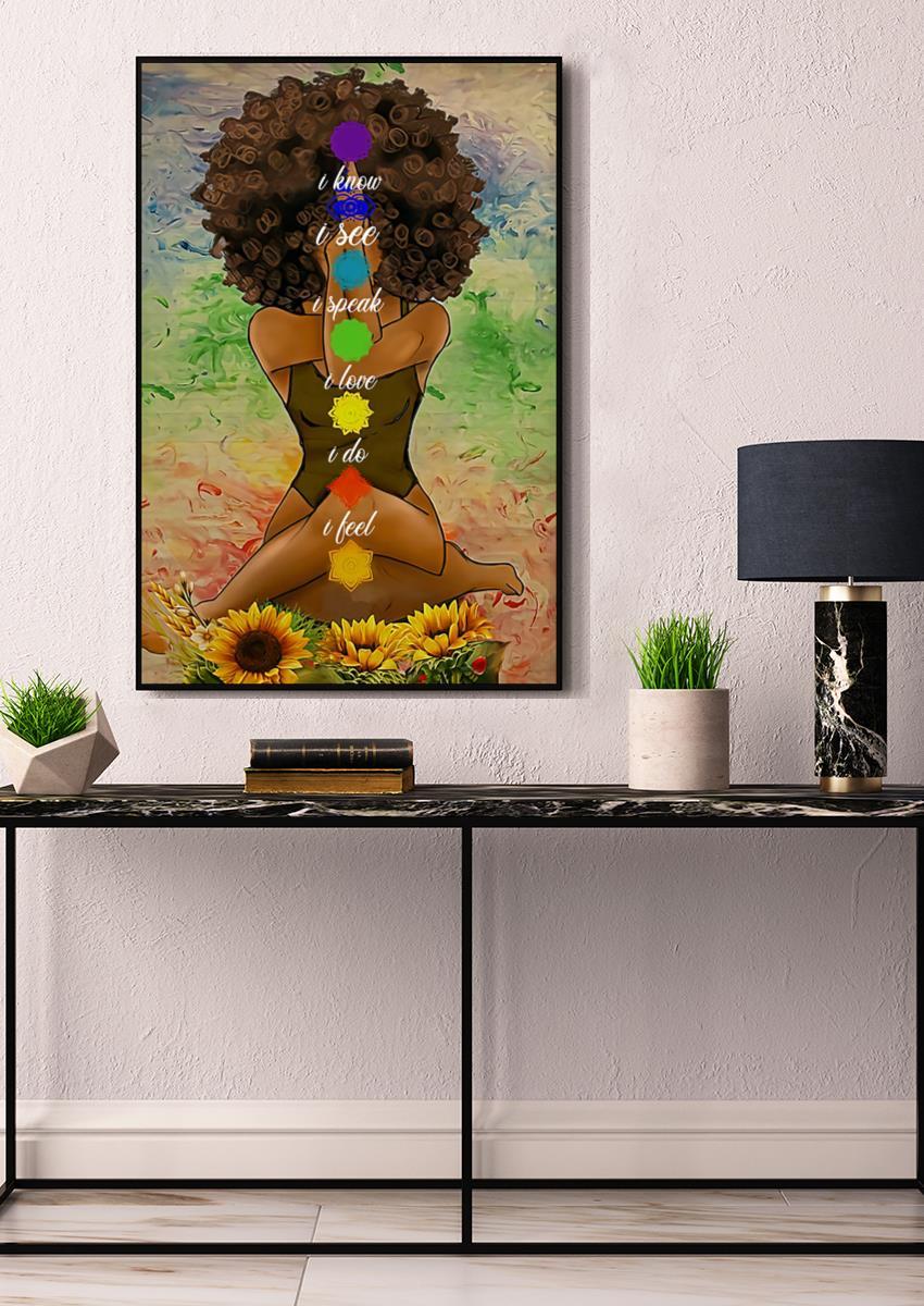 Black Girl Meditation Yoga Afro Woman Mandala Namaste Art For Yoga Lover Poster