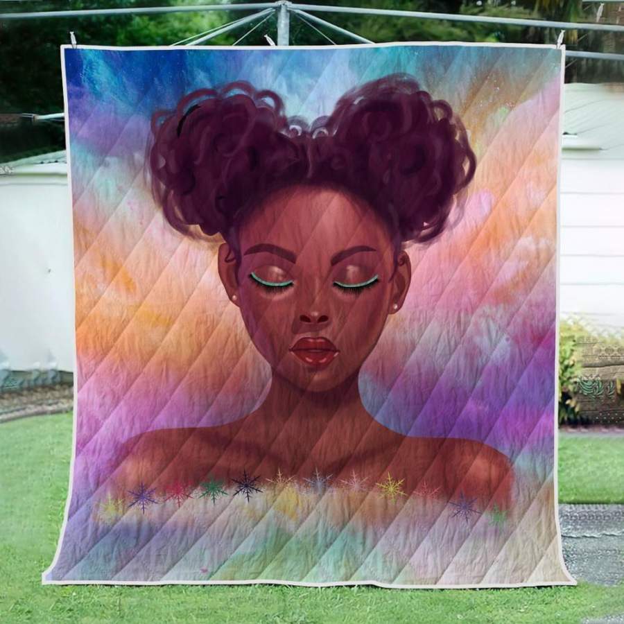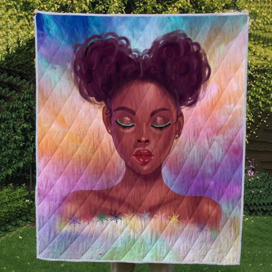 Black Girl Natural Hair Quilt Blanket – Cute Curls Girl Quilt Blanket Christmas Gift Ideas