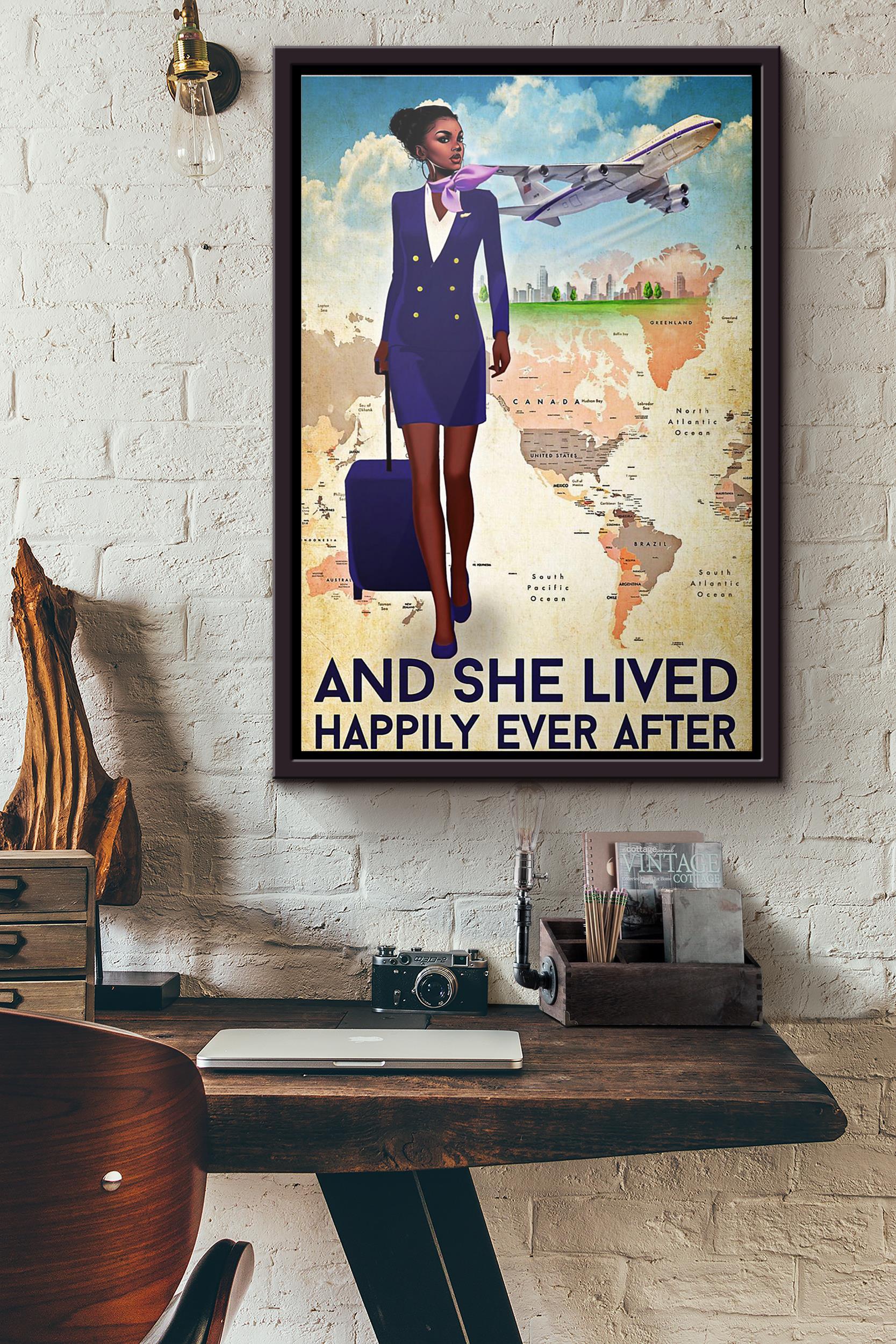 Black Girl Navy Style Flight Attendant And She Lived Happily Ever After Poster Framed Matte Canvas