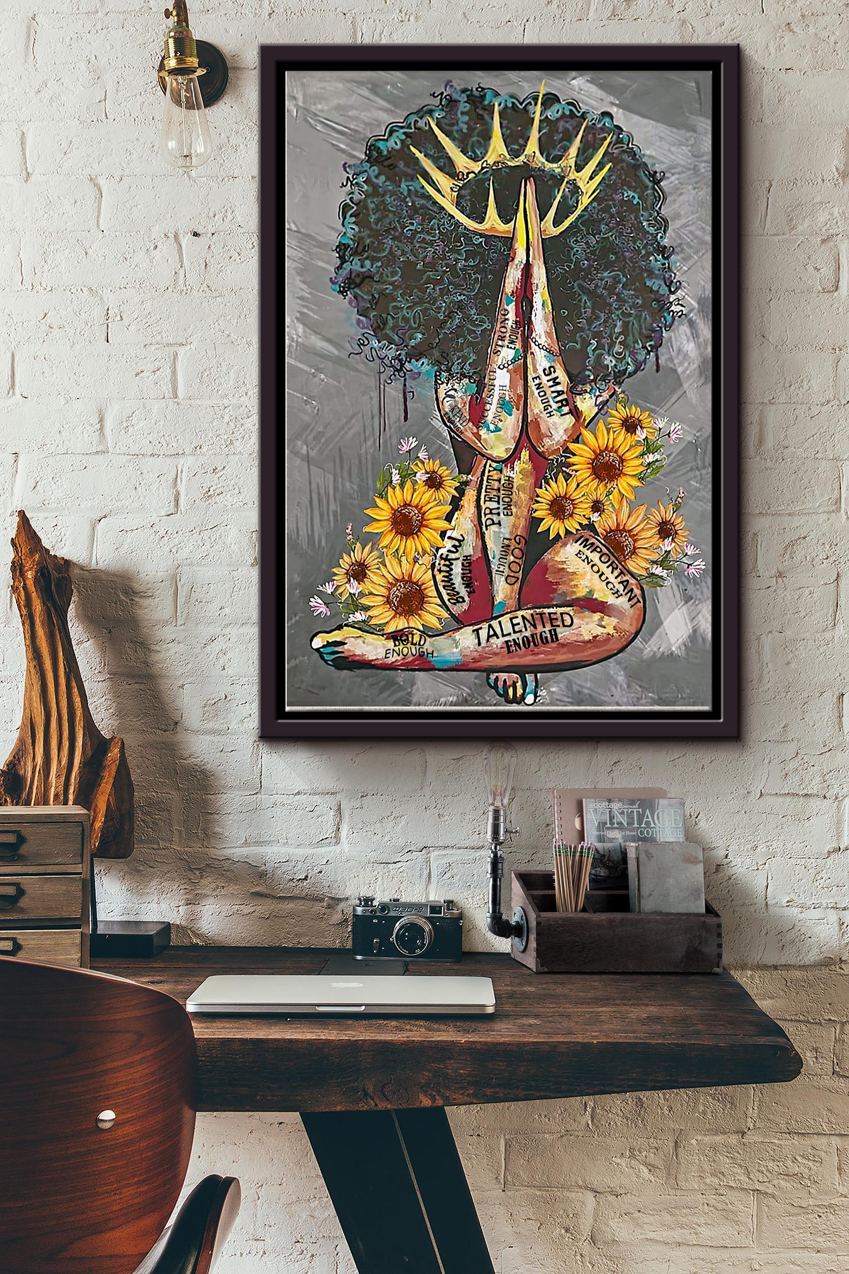 Black Girl Queen Beautiful Poster – Decor Wall Art – Gift For Black Girl Black Women Womens Day Black People Framed Matte Canvas