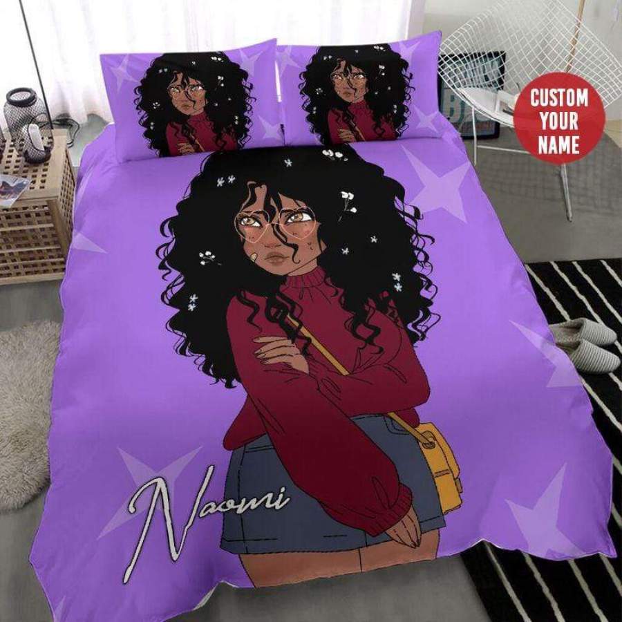 Black Girl Red Hoodie Custom Name Duvet Cover Bedding Set #608H