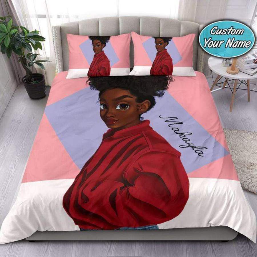Black Girl Red Zip-up Hoodie Custom Name Duvet Cover Bedding Set #149v
