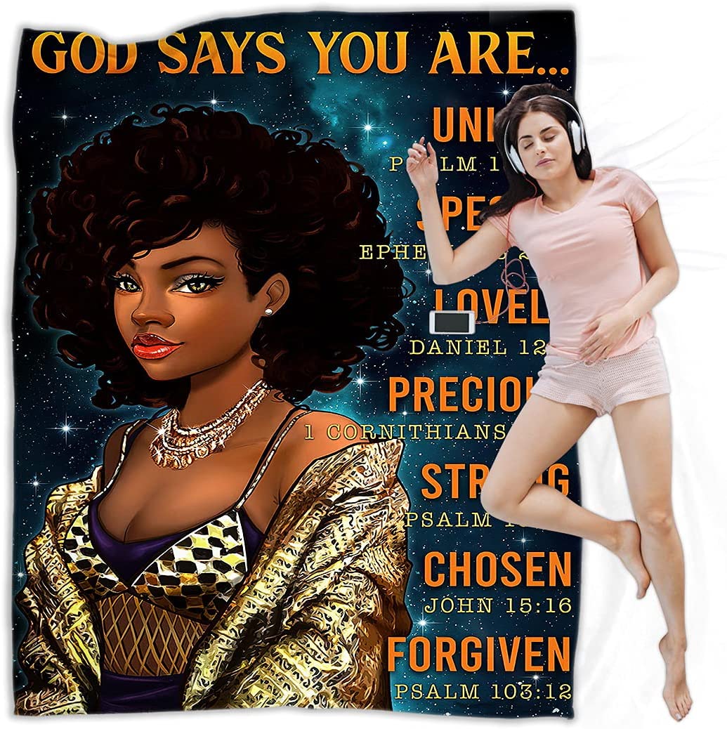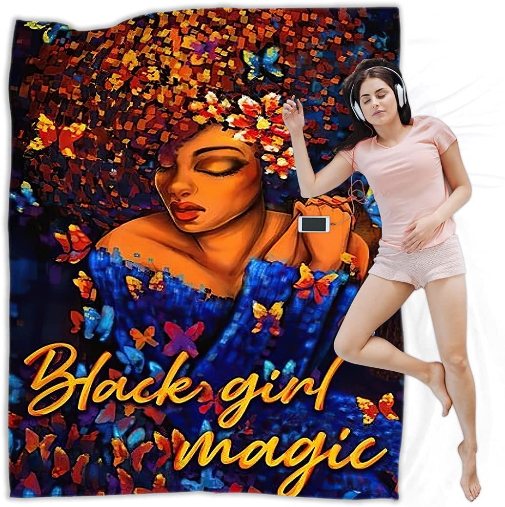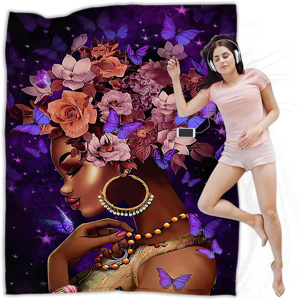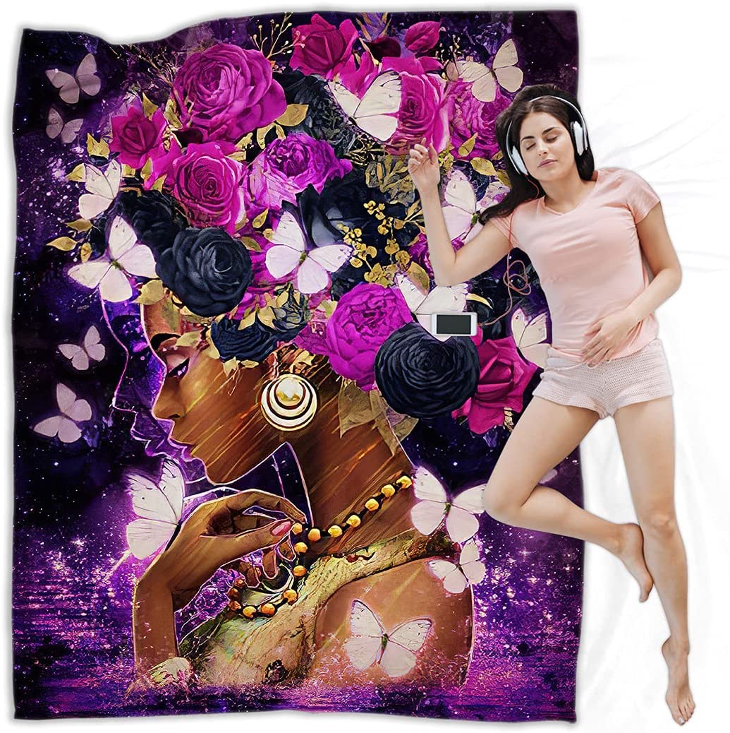 Black Girl Throw Blanket African American Queen Blanket Black Women Inspirational Blanket For Girl Warm Soft Fuzzy Flannel Blanket Bed Couch Sofa Chair Office Camping Fluffy Cozy