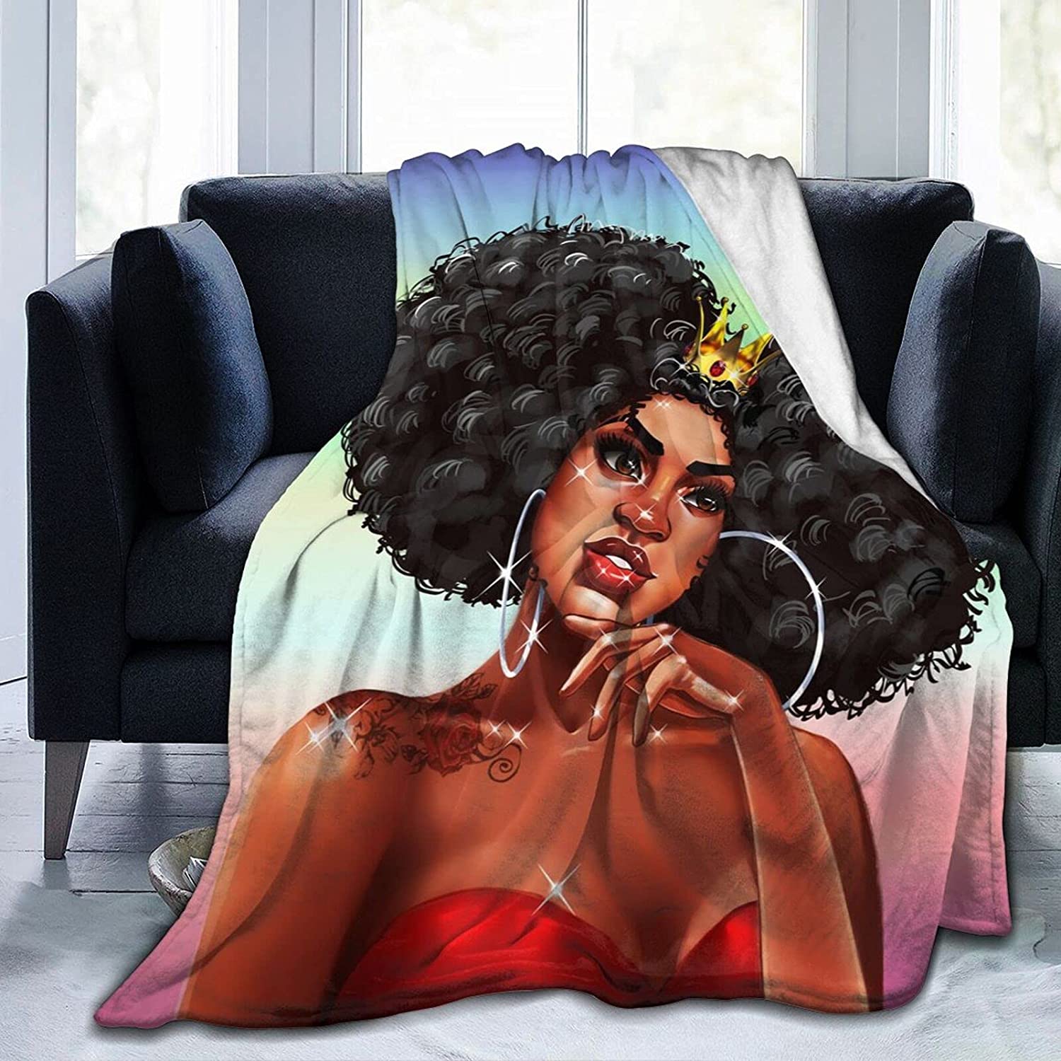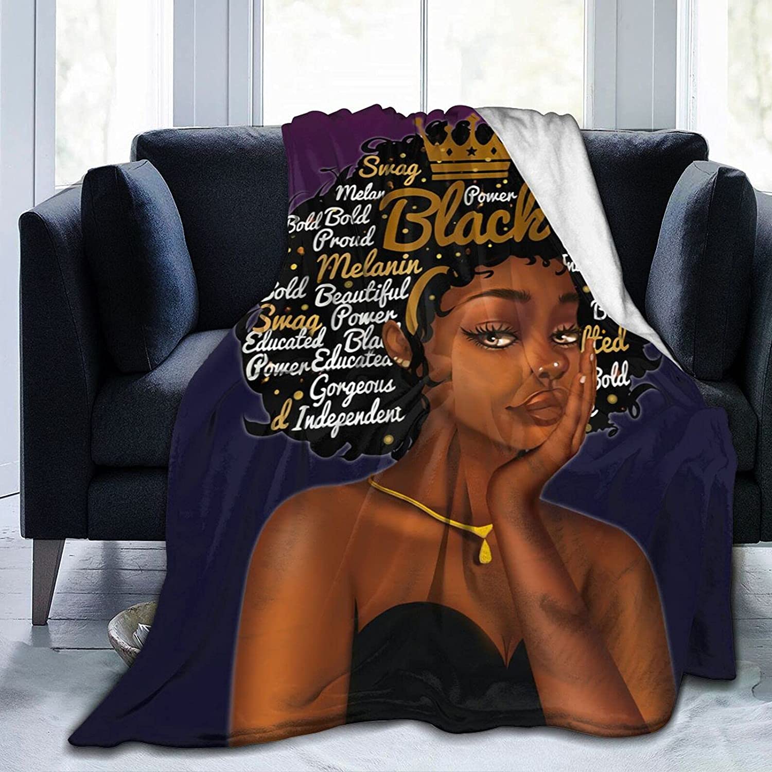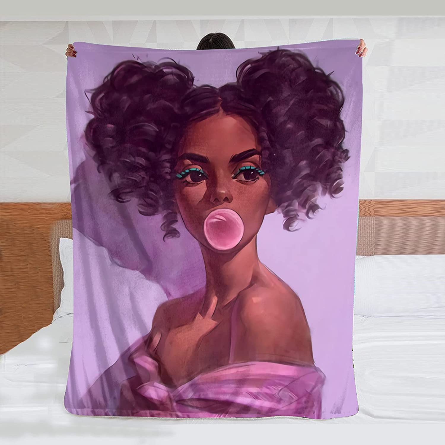 Black Girl Throw Blanket African American Queen Blanket Black Women Inspirational Blanket For Girl Warm Soft Fuzzy Flannel Blanket Bed Couch Sofa Chair Office Camping Fluffy Cozy