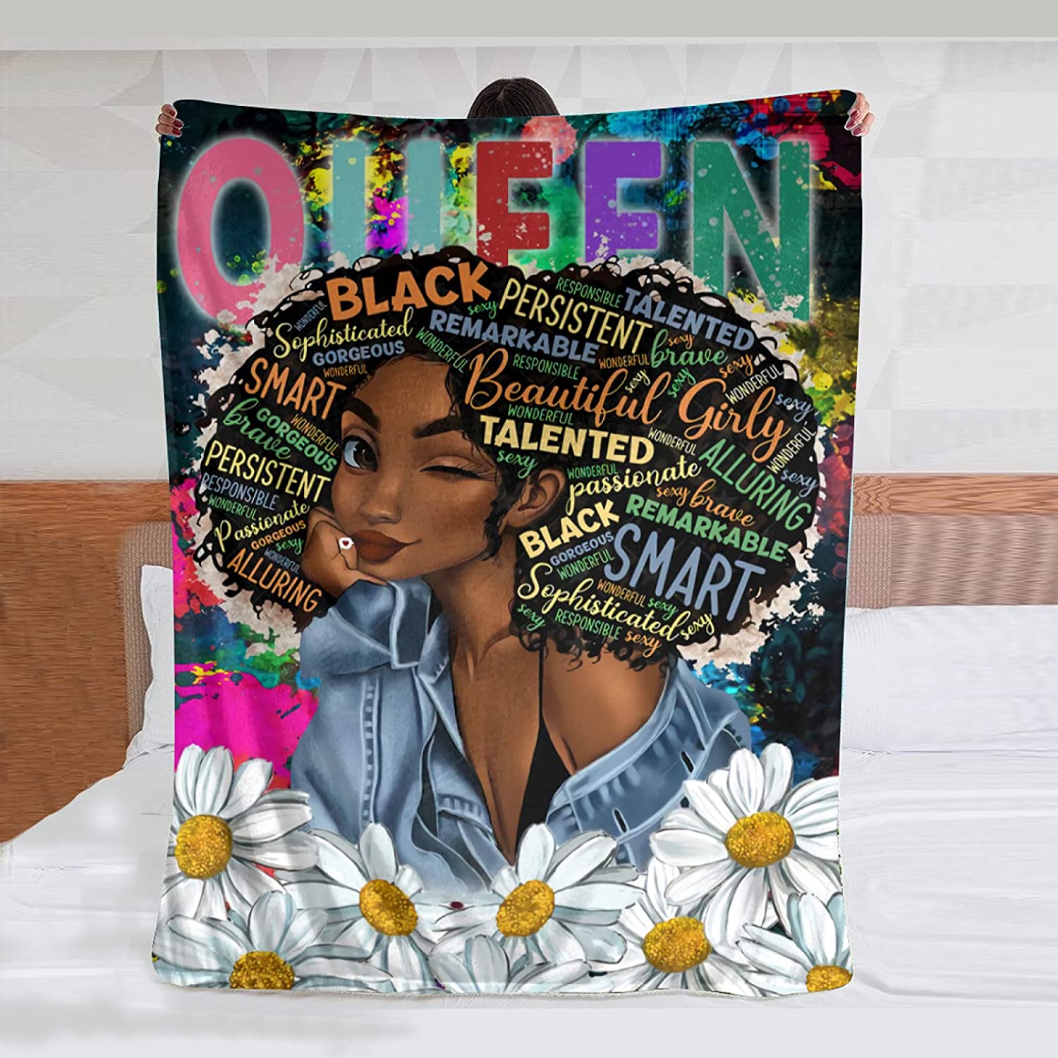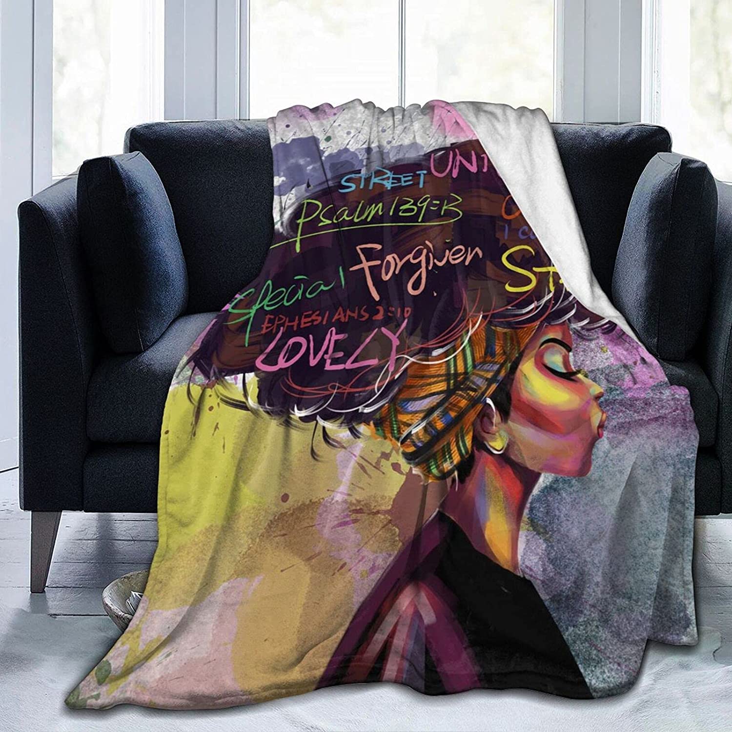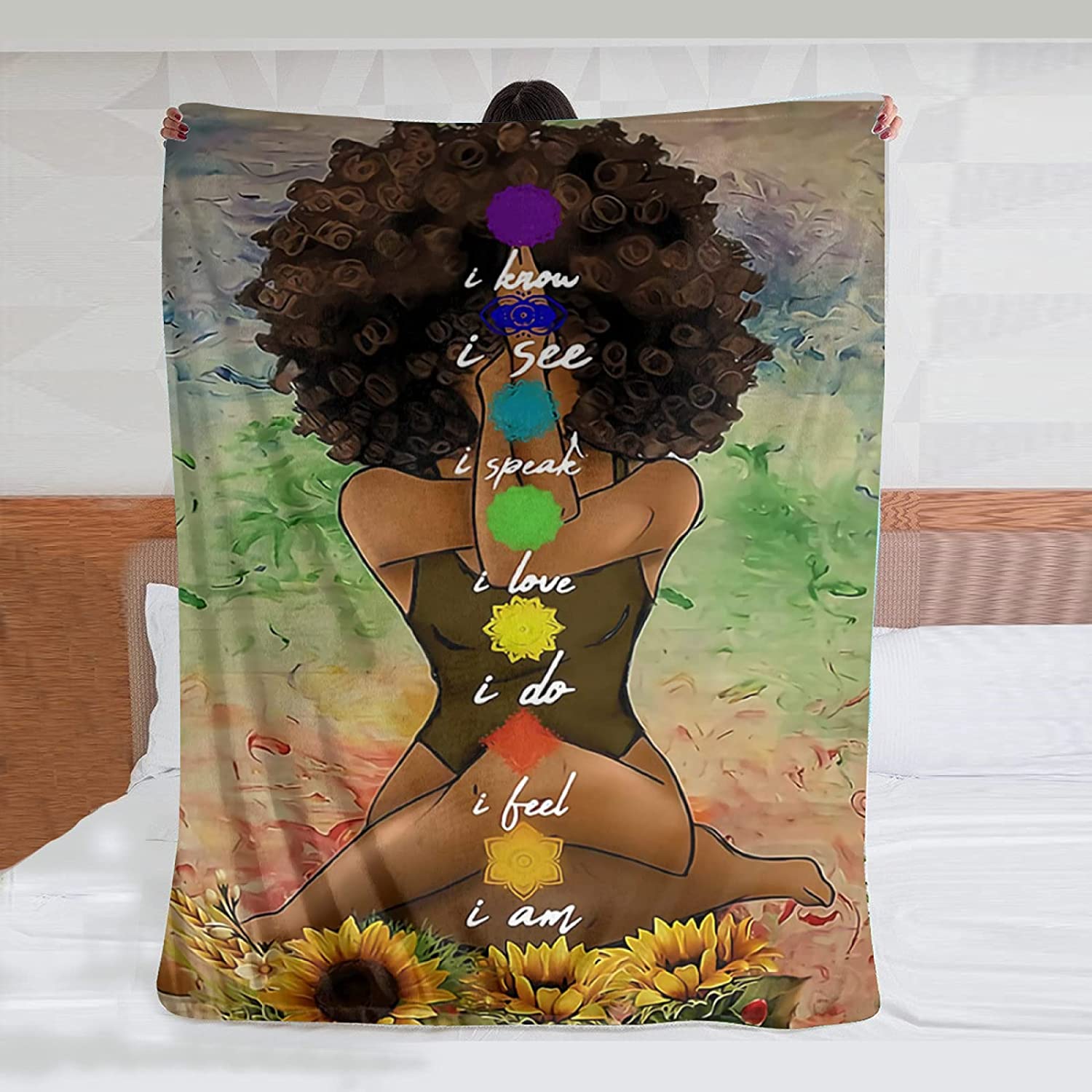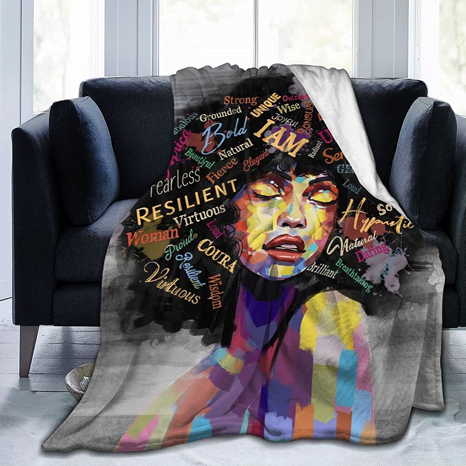 Black Girl Throw Blanket African American Queen Blanket Black Women Inspirational Blanket For Girl Warm Soft Fuzzy Flannel Blanket Bed Couch Sofa Chair Office Camping Fluffy Cozy