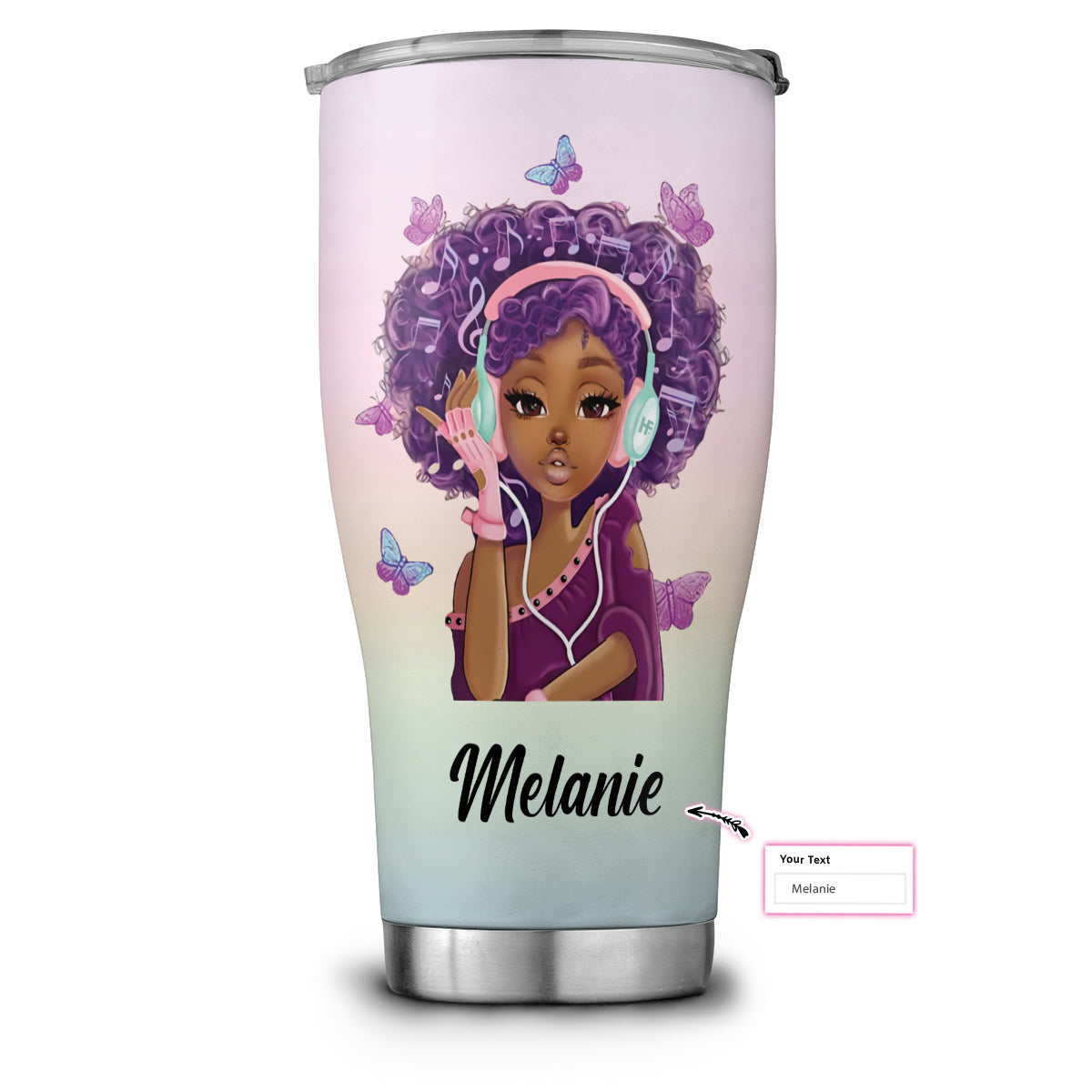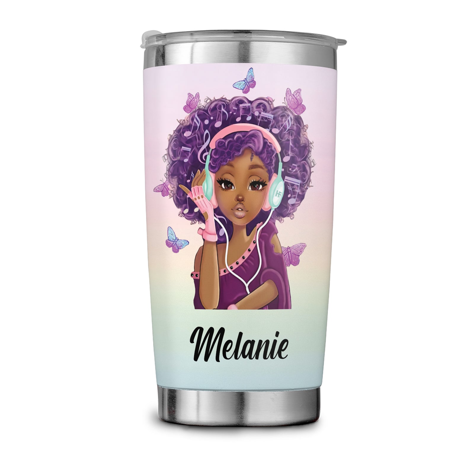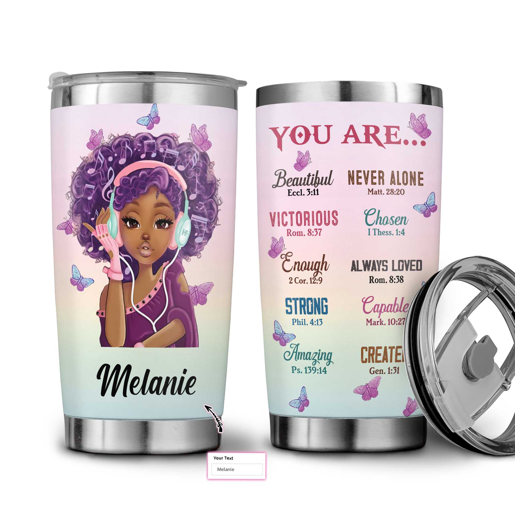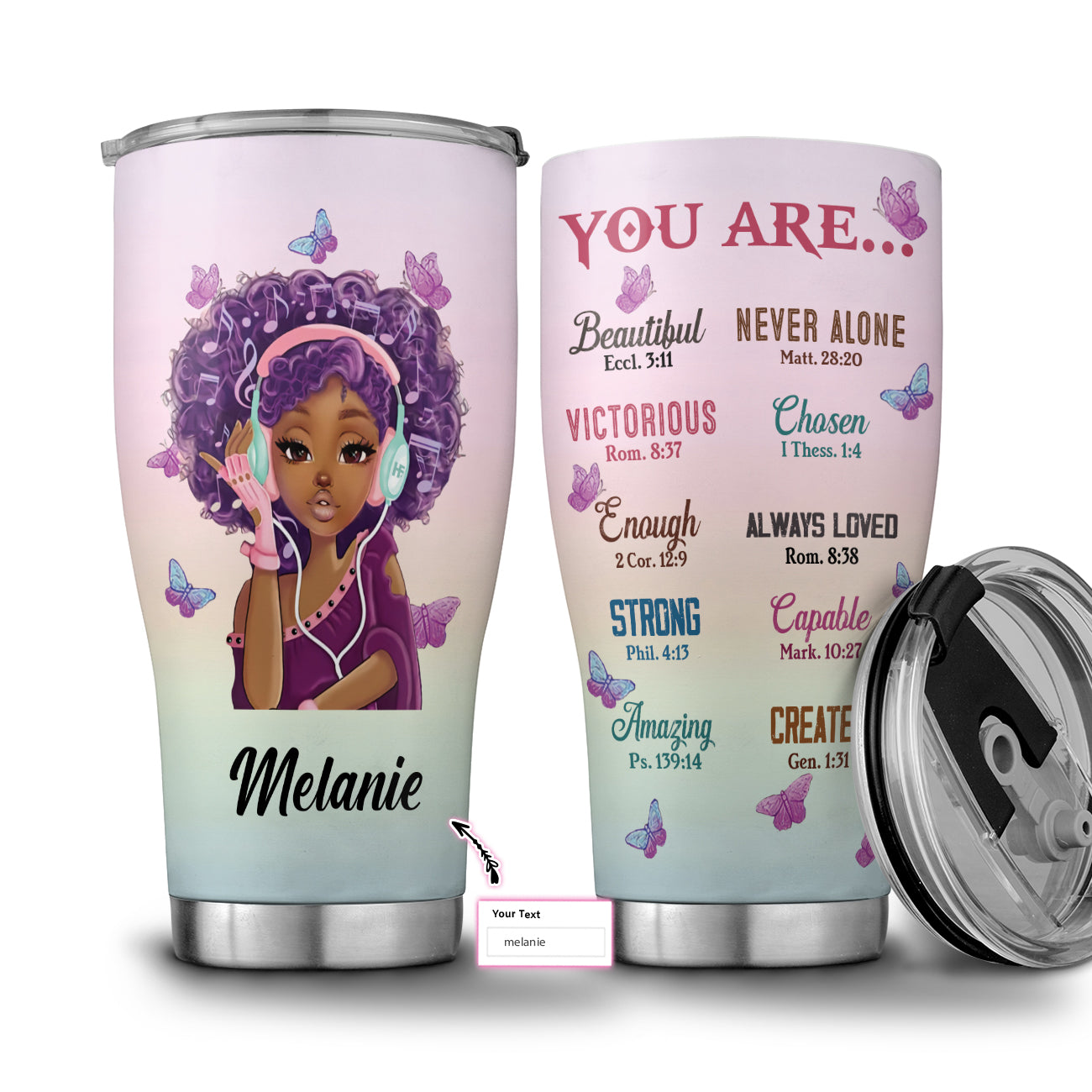 Black Girl You Are Beautiful Custom Stainless Steel Tumbler, Personalized Purple Music Butterfly Cup With Lid