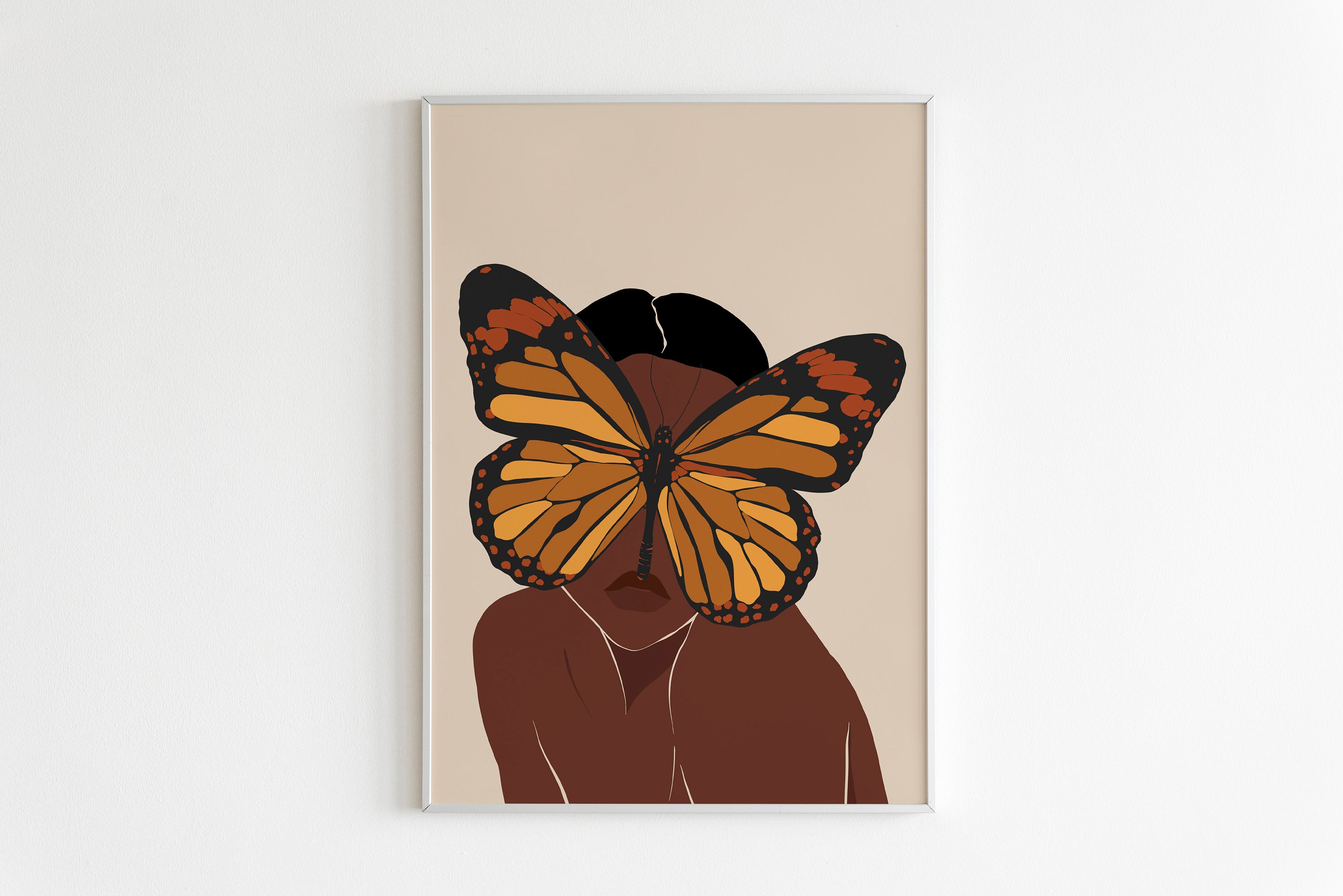 Black Woman Art, Black Art, Butterfly Lover, Butterfly Woman Art, Woman Poster, Black Girl Poster, Female Portrait Art.