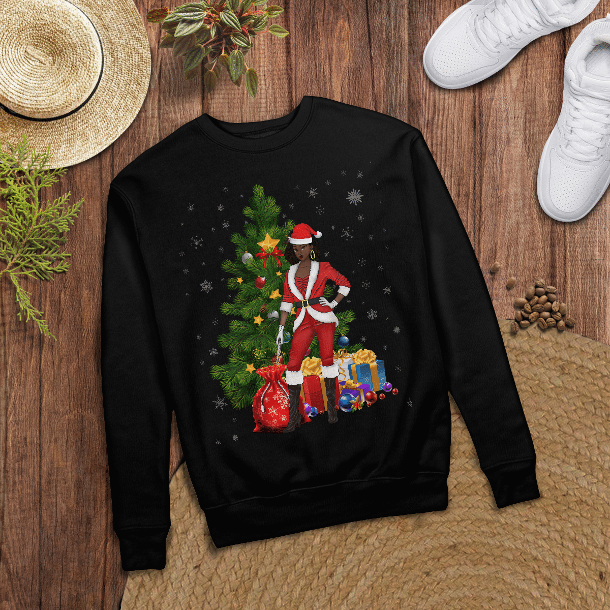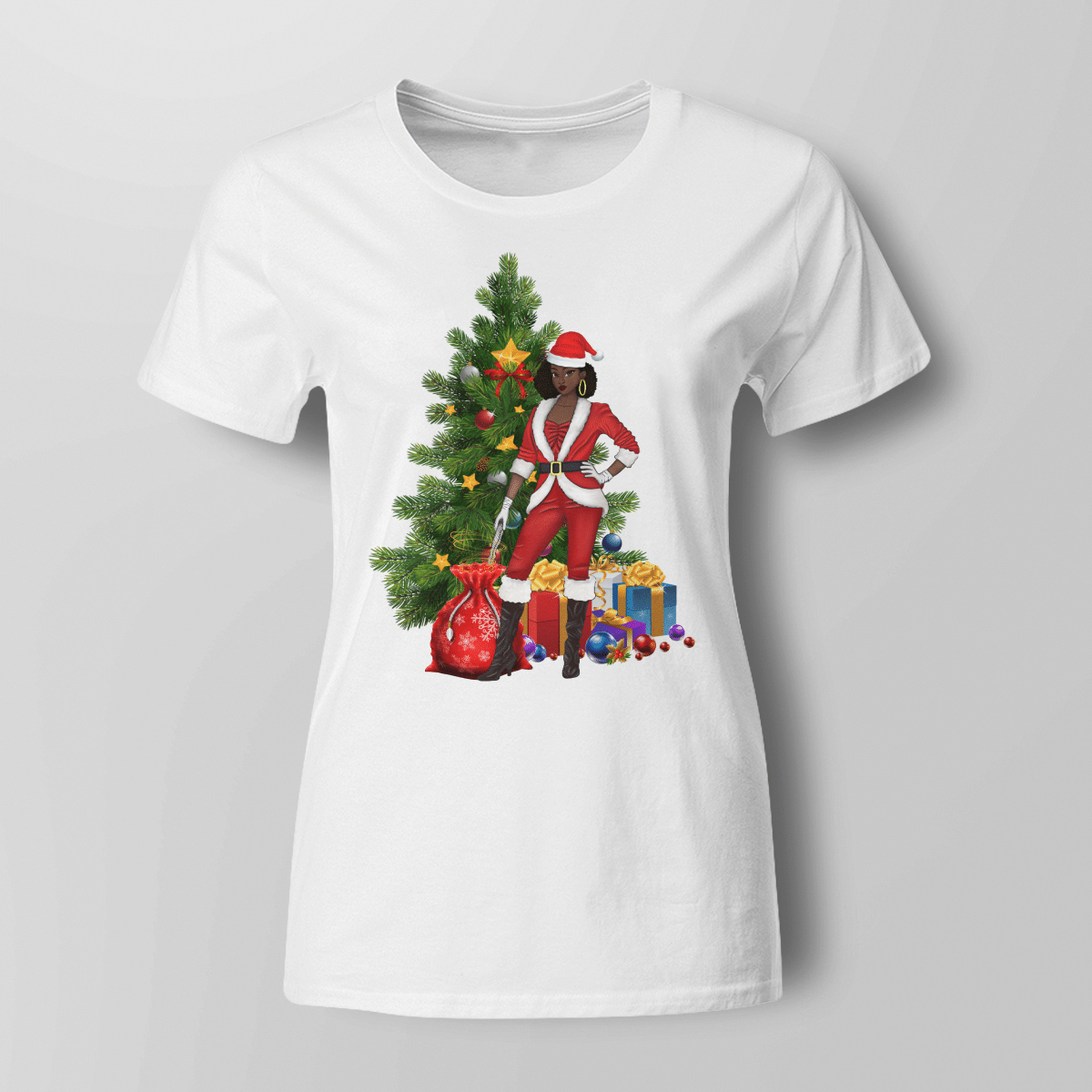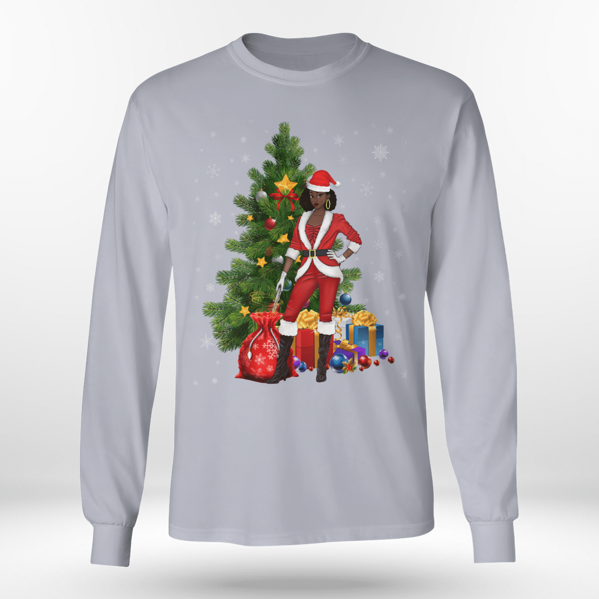 Black Woman Christmas Shirt Santa Claus Christmas Tshirt Afro Santa Shirt For Black Girl Christmas