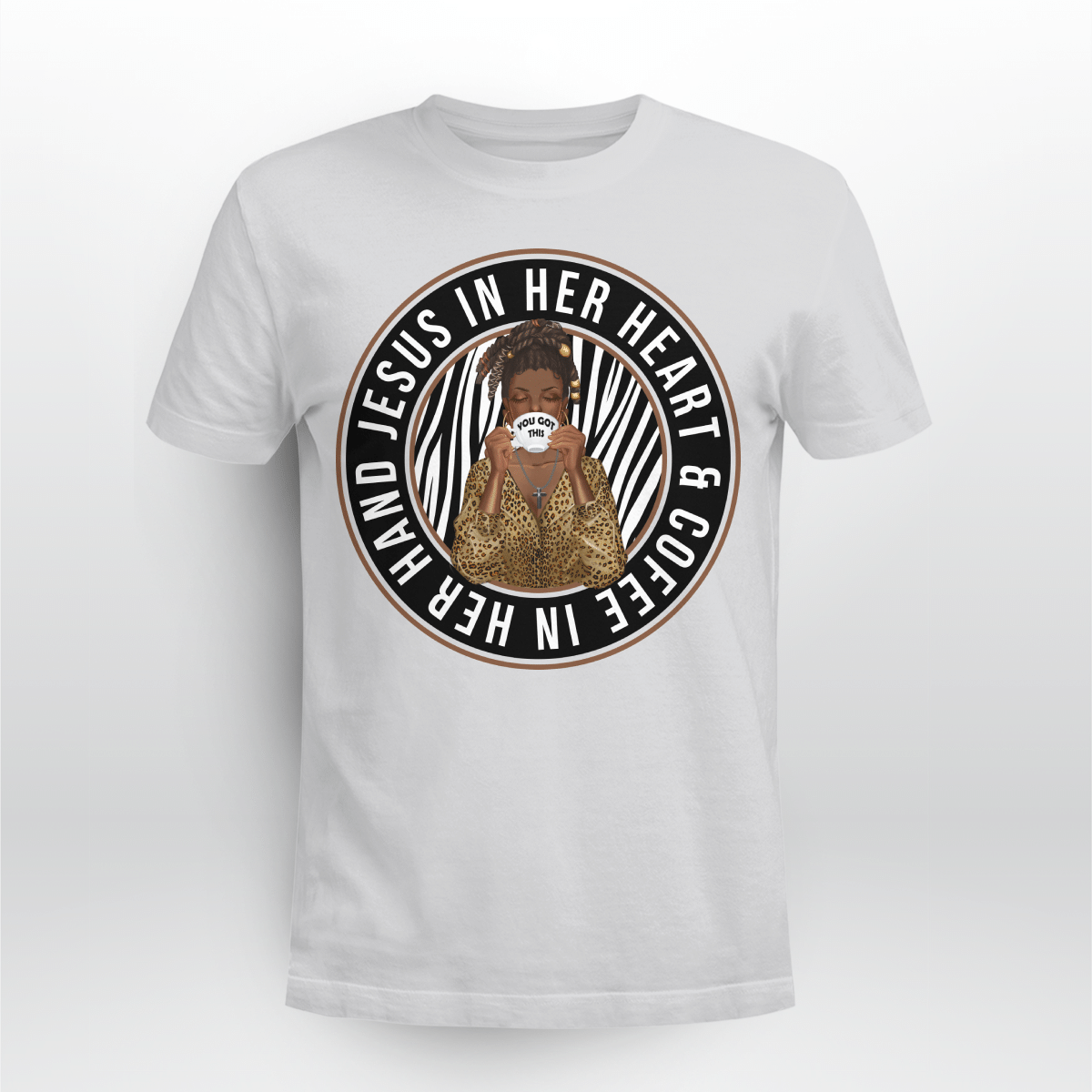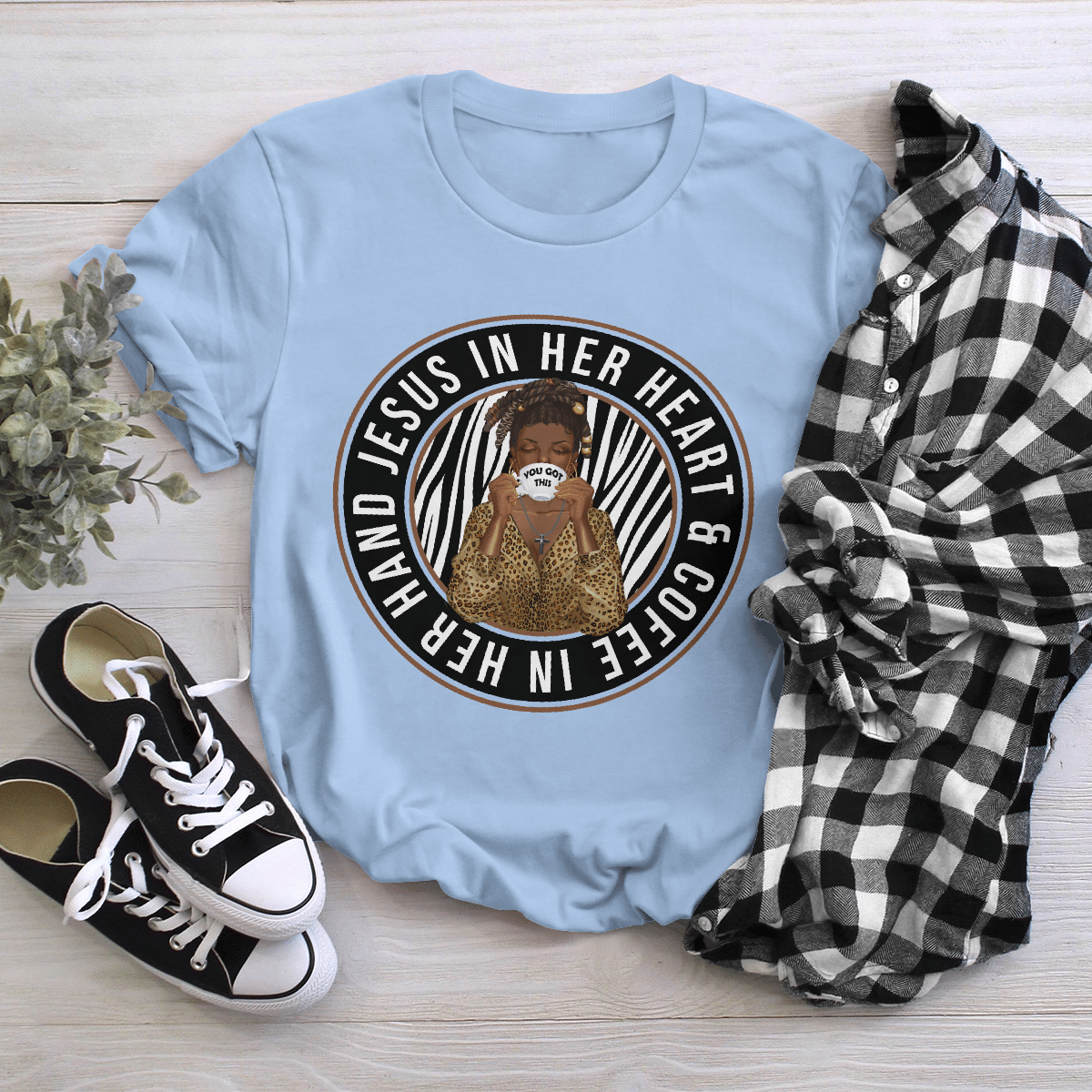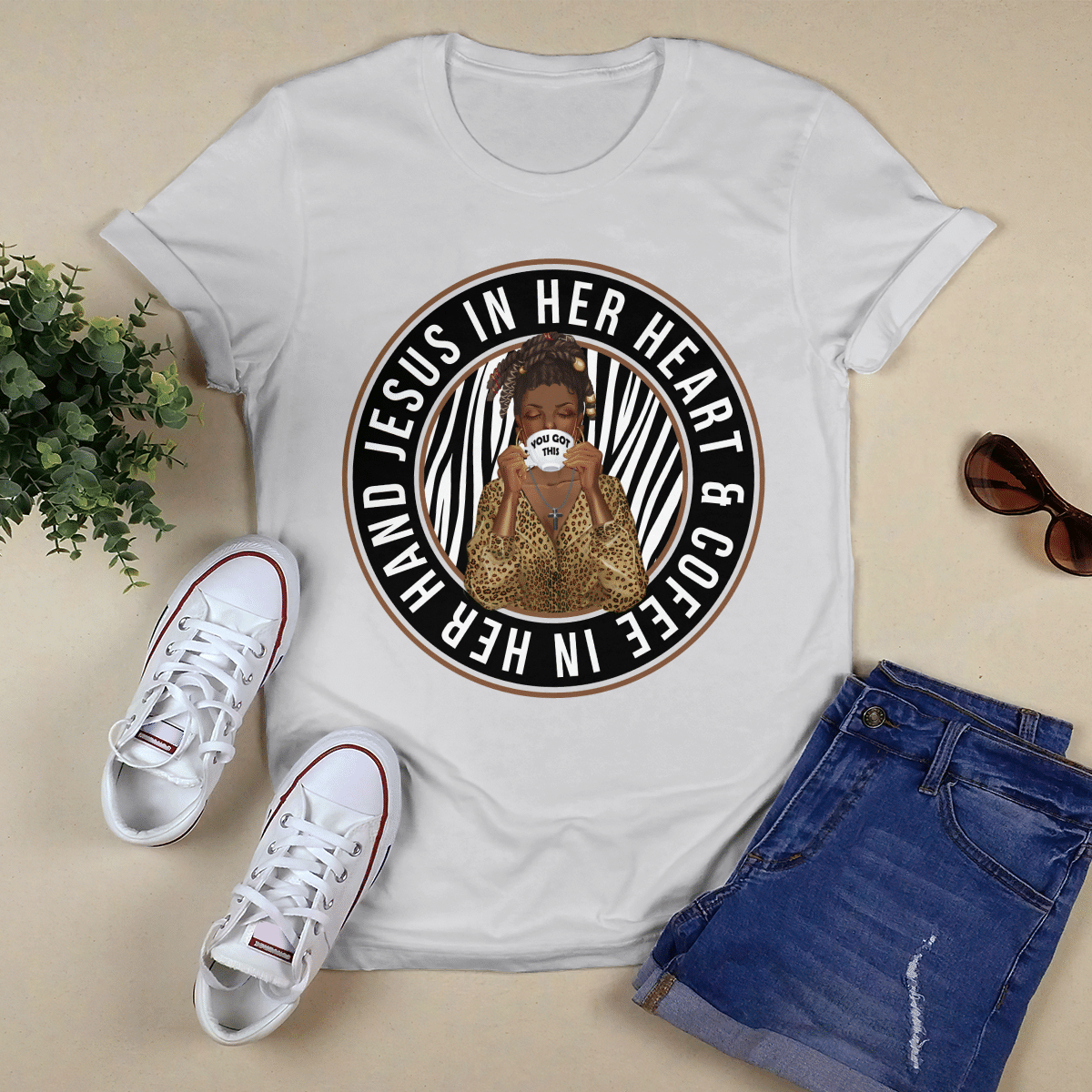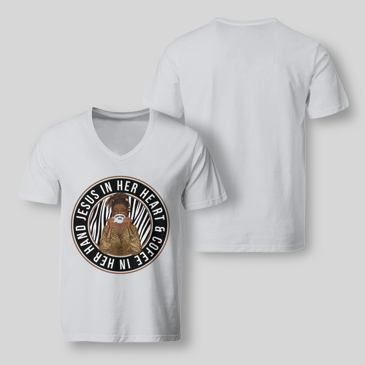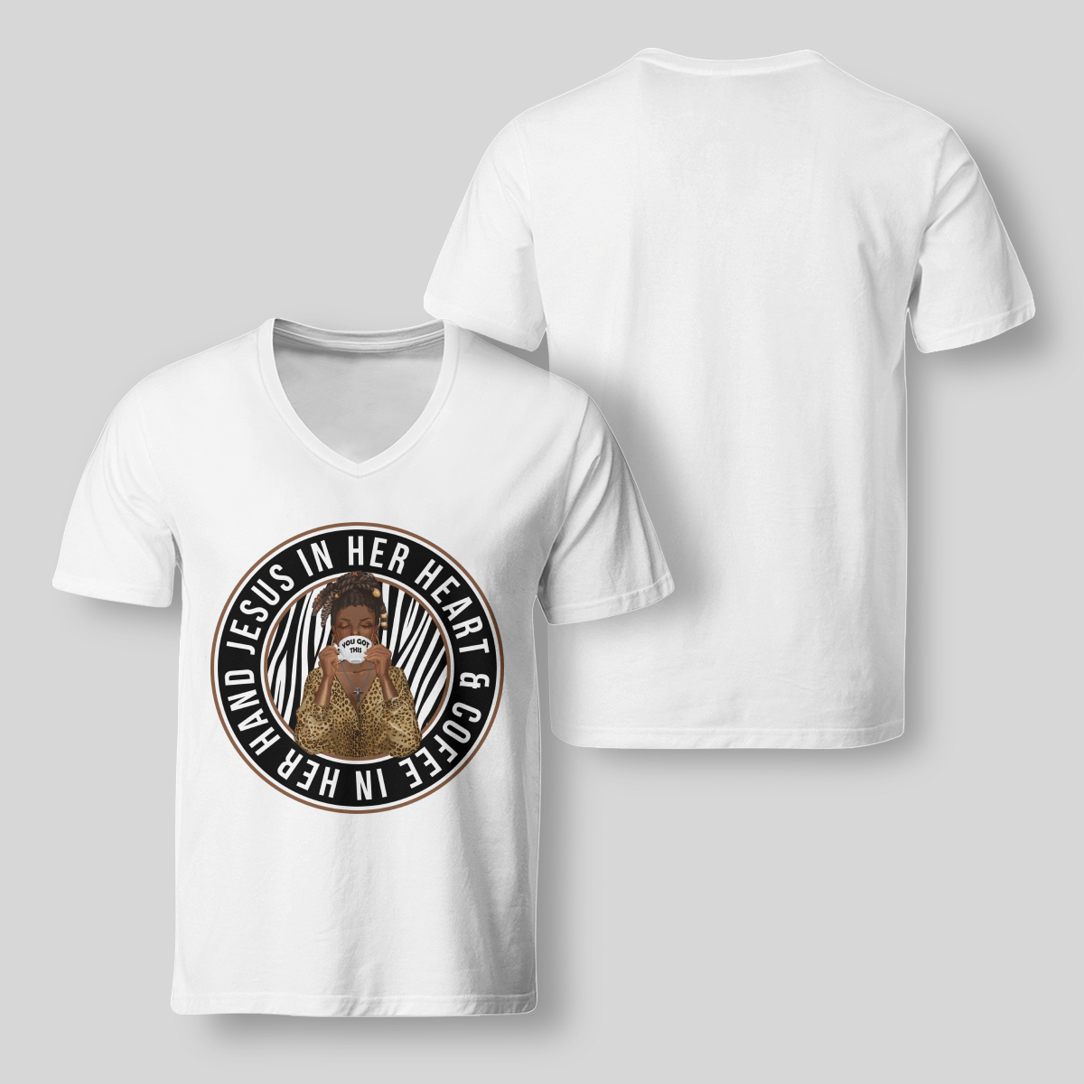 Black Woman Tshirt For Black Girl Shirt Jesus In Her Heart And Coffee In Her Hand Shirts