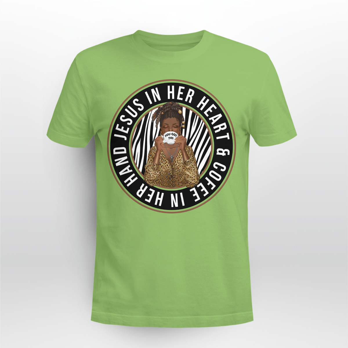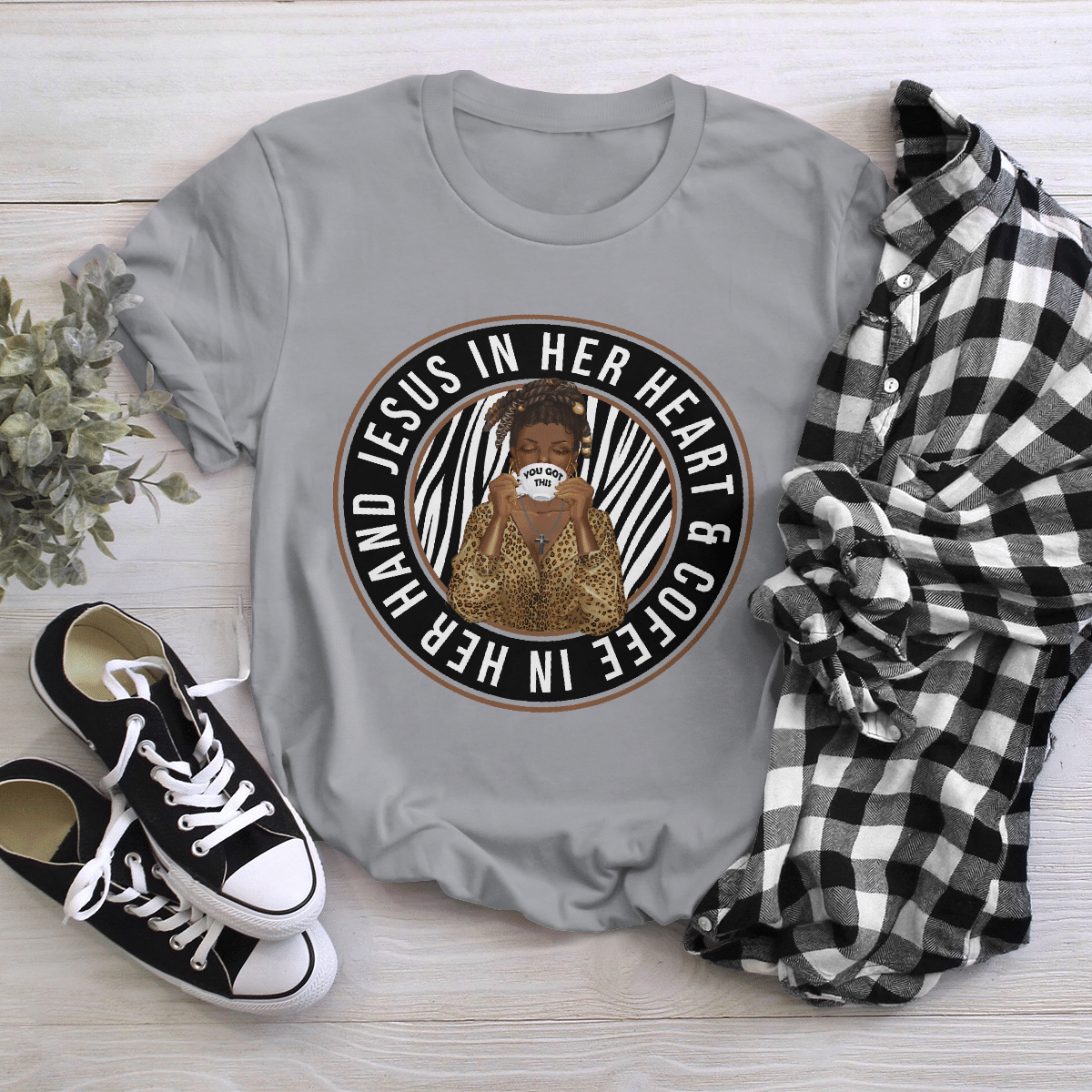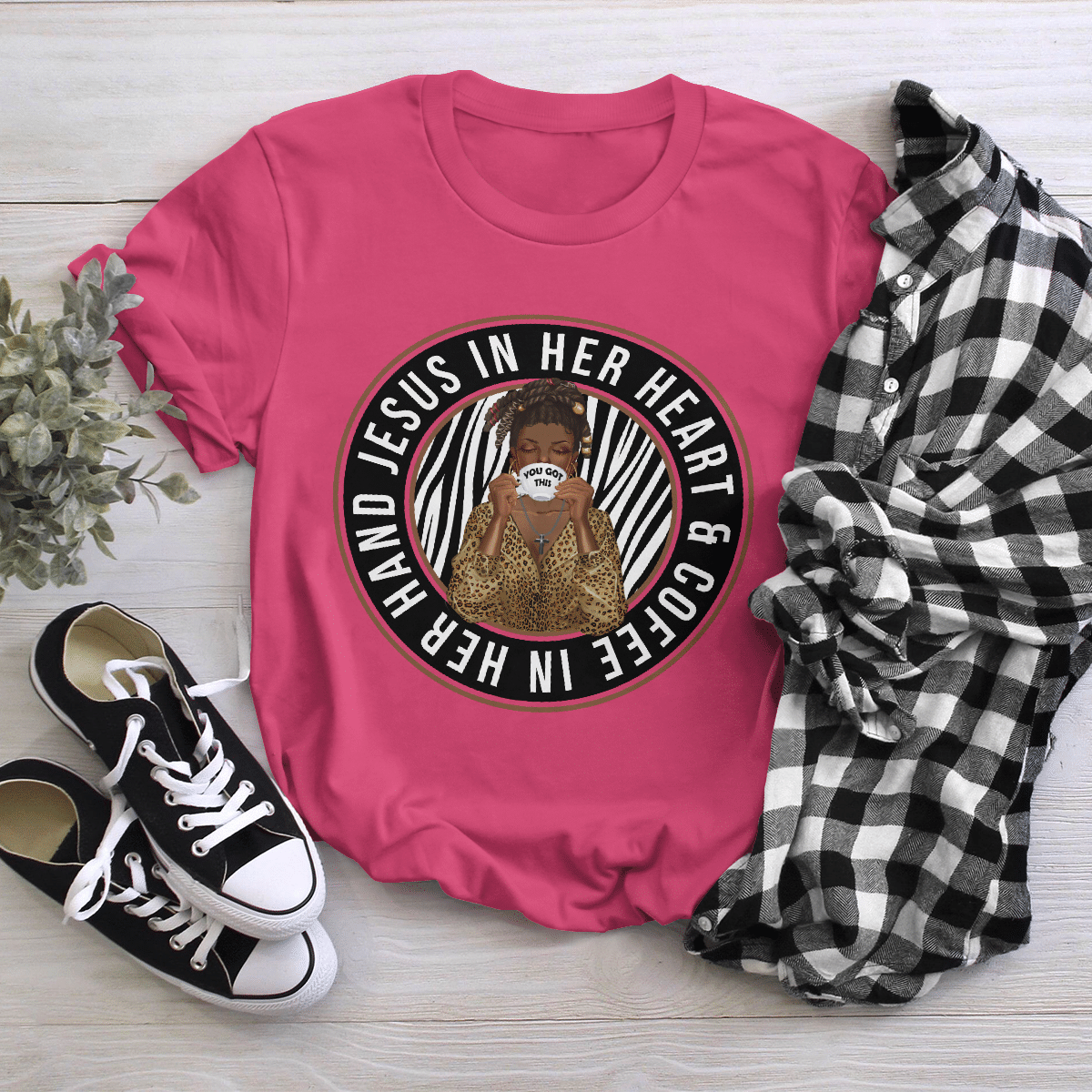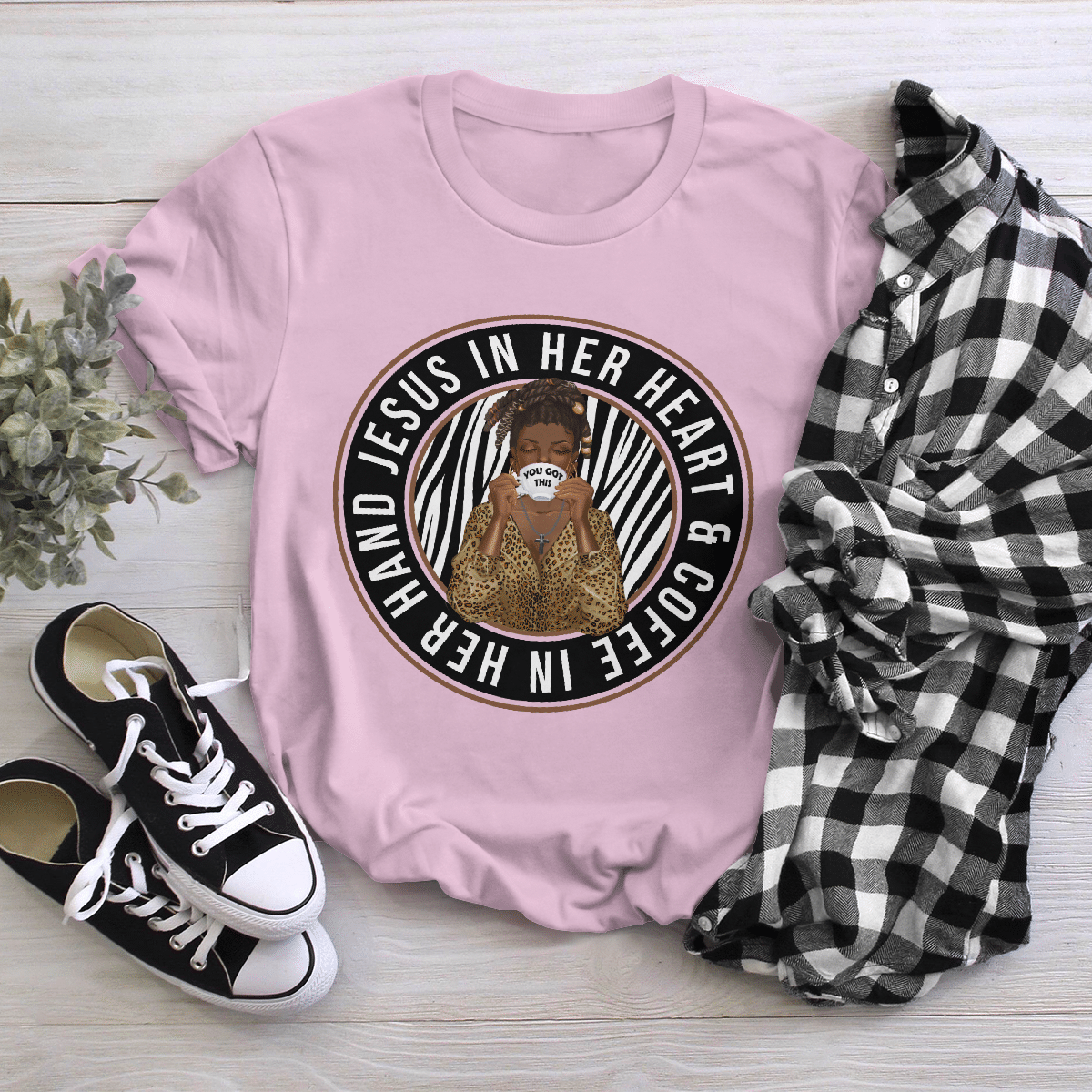 Black Woman Tshirt For Black Girl Shirt Jesus In Her Heart And Coffee In Her Hand Shirts