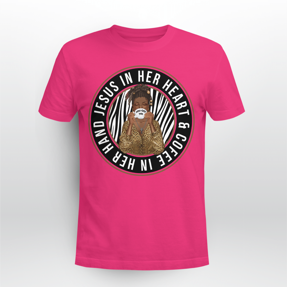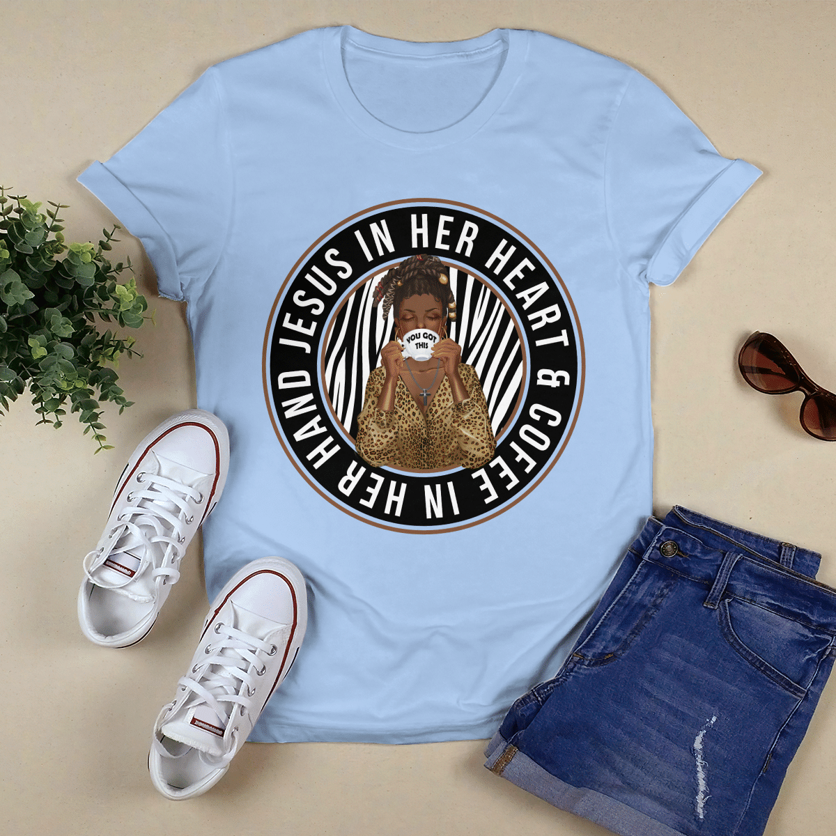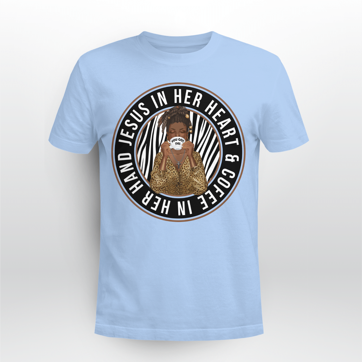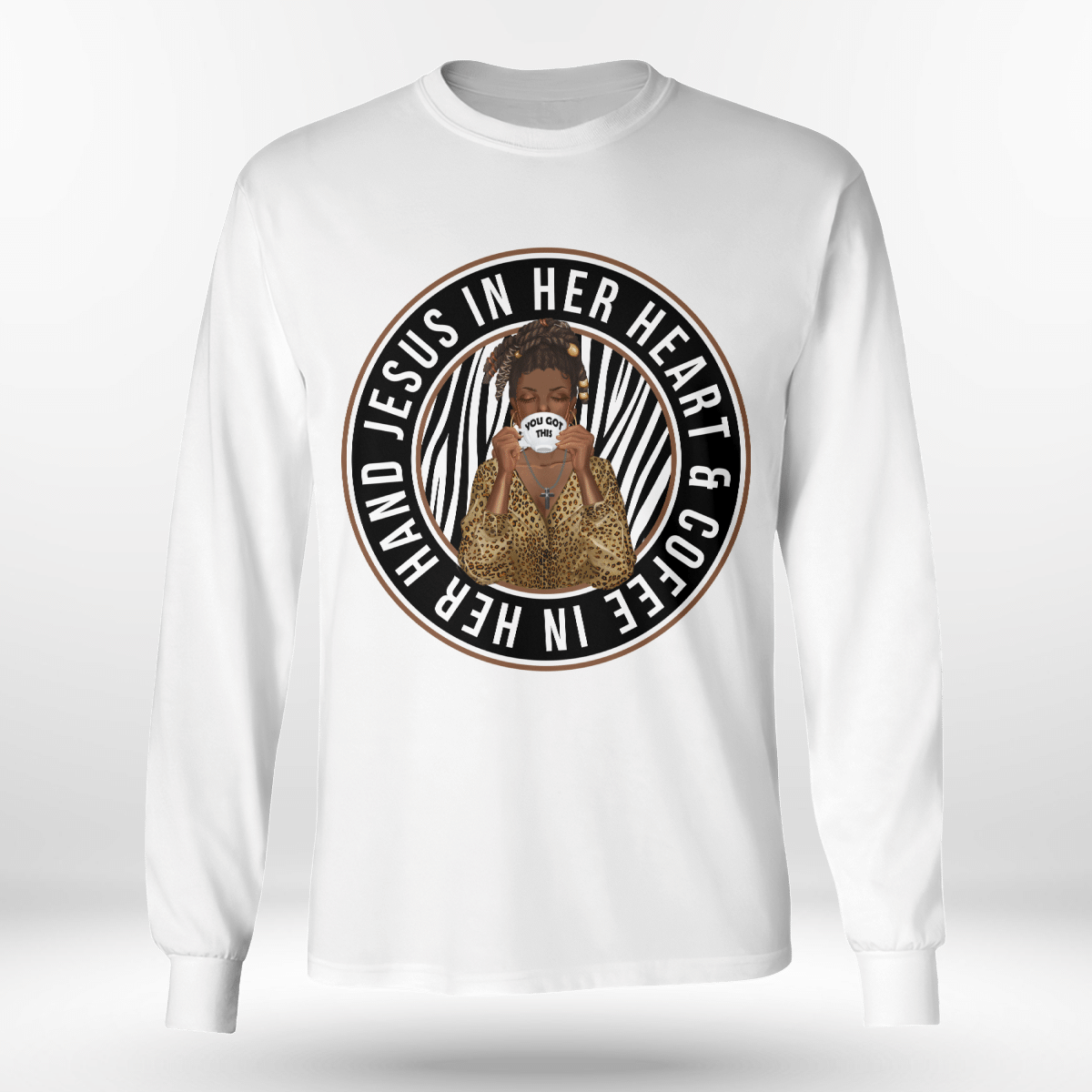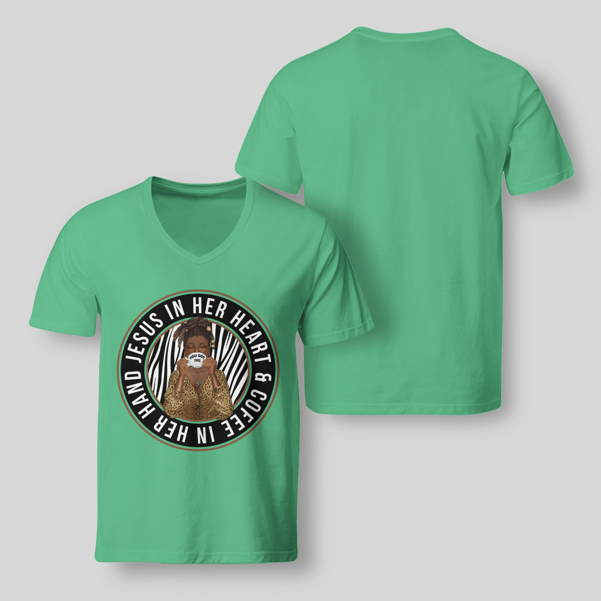 Black Woman Tshirt For Black Girl Shirt Jesus In Her Heart And Coffee In Her Hand Shirts