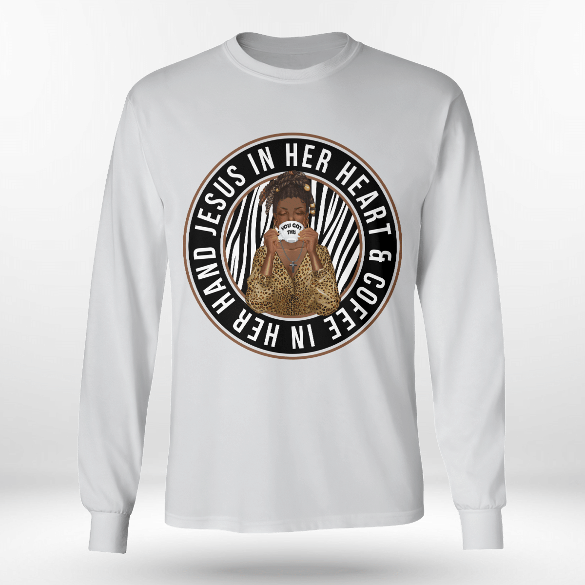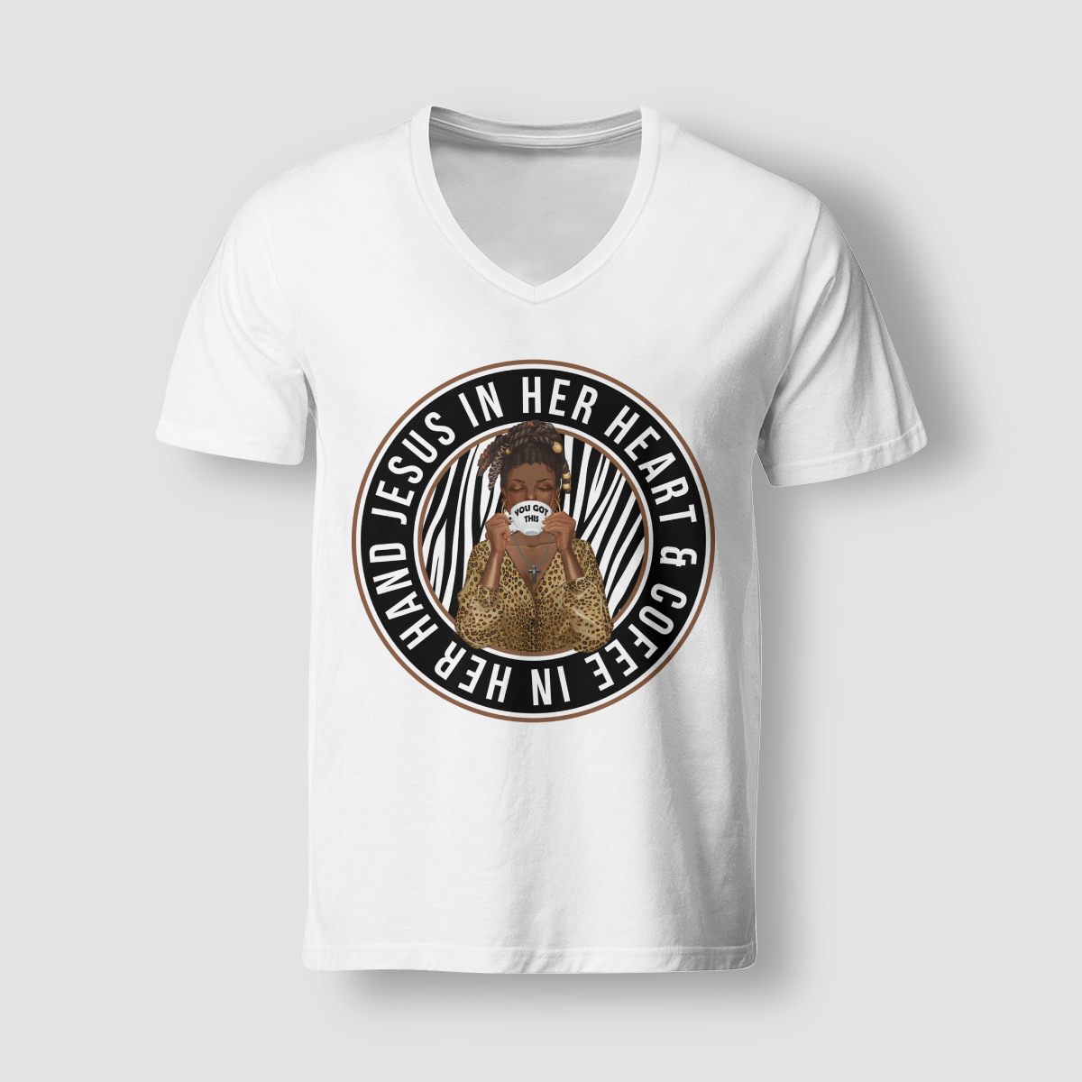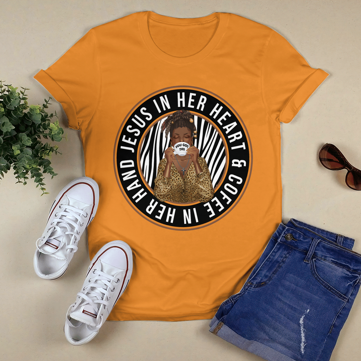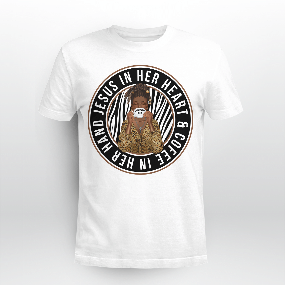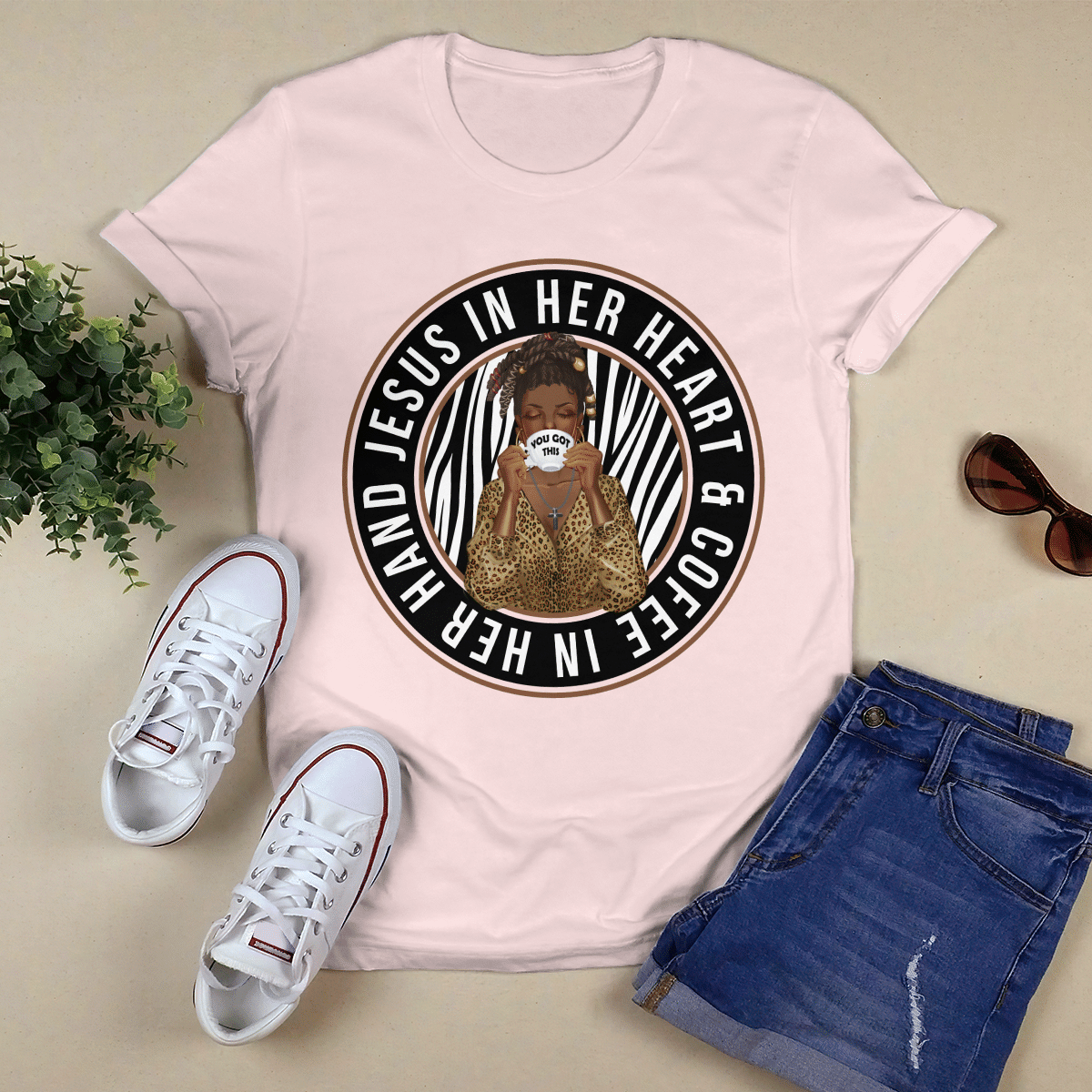 Black Woman Tshirt For Black Girl Shirt Jesus In Her Heart And Coffee In Her Hand Shirts