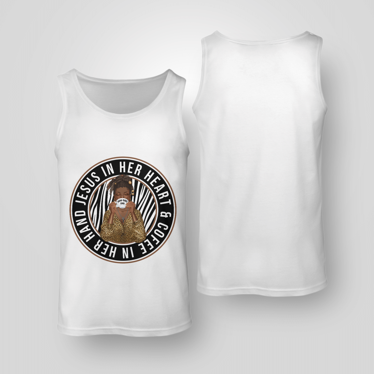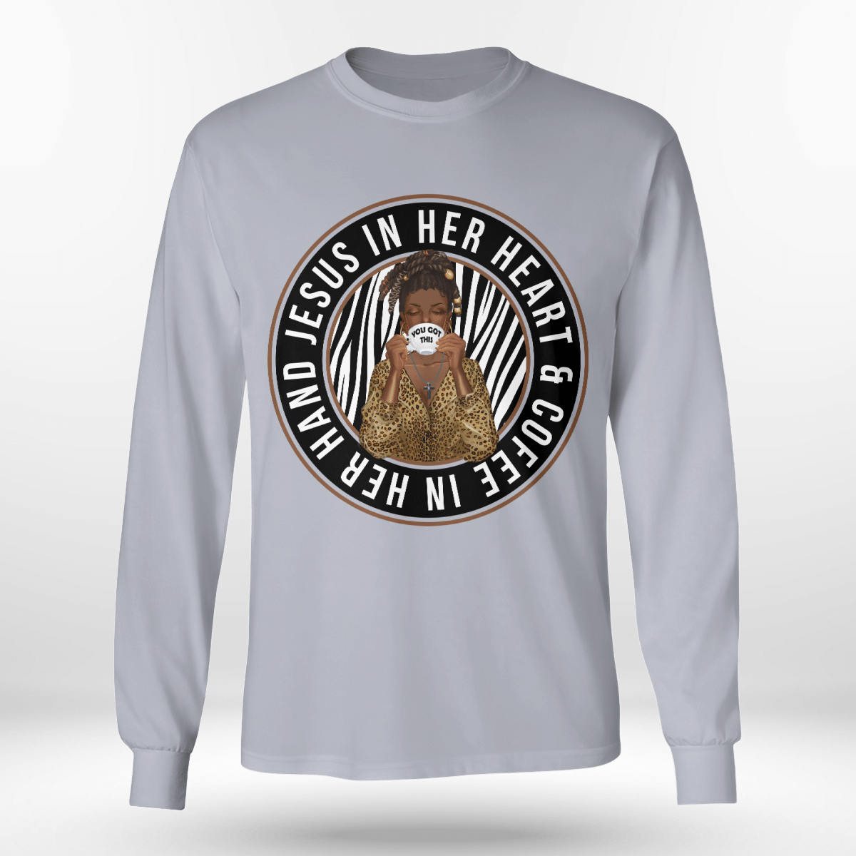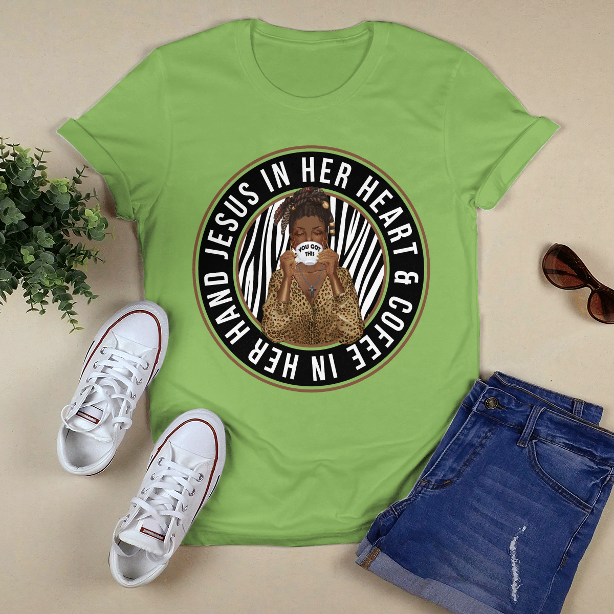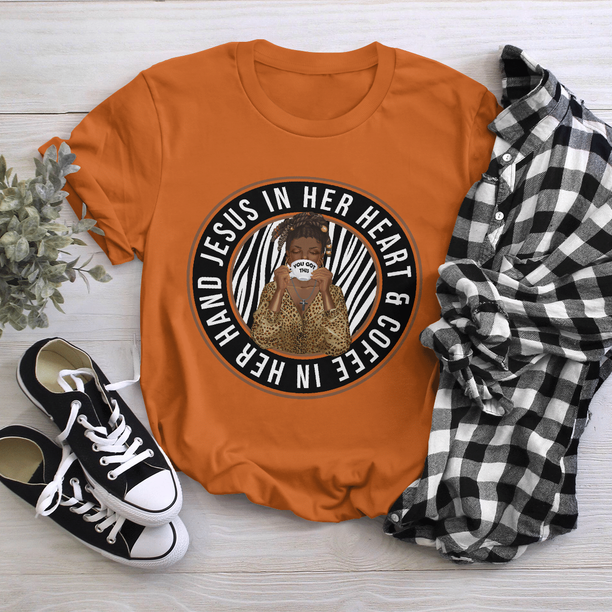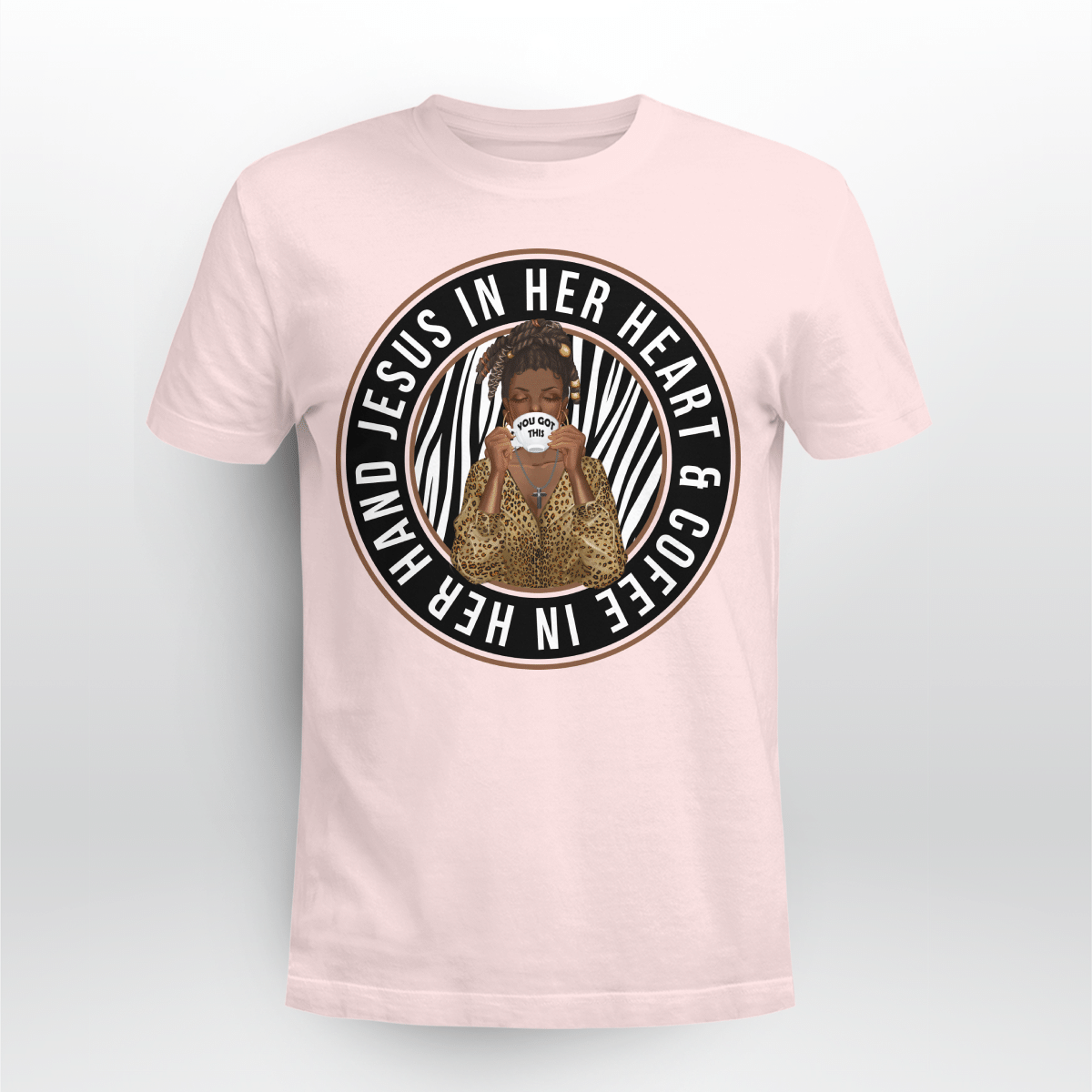 Black Woman Tshirt For Black Girl Shirt Jesus In Her Heart And Coffee In Her Hand Shirts