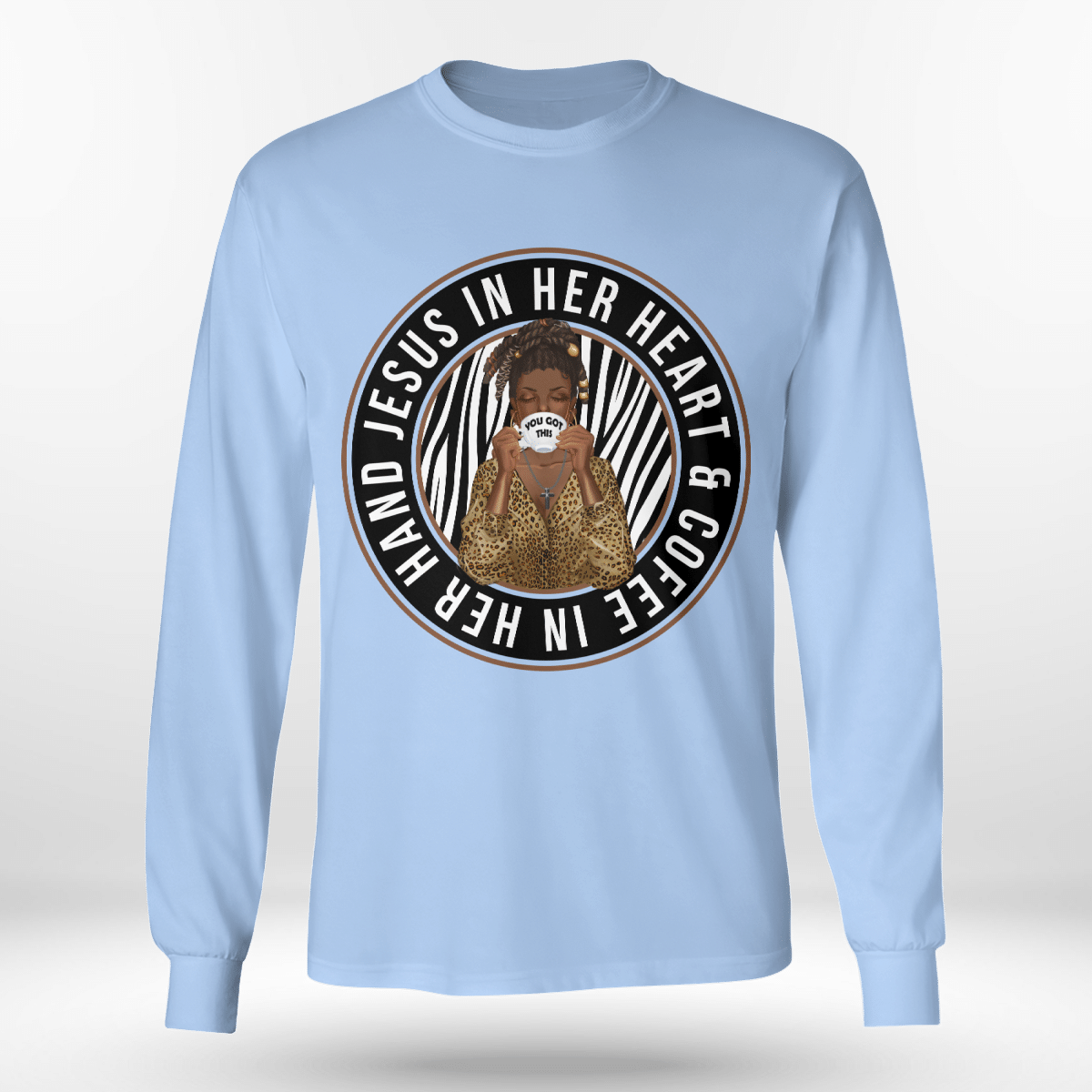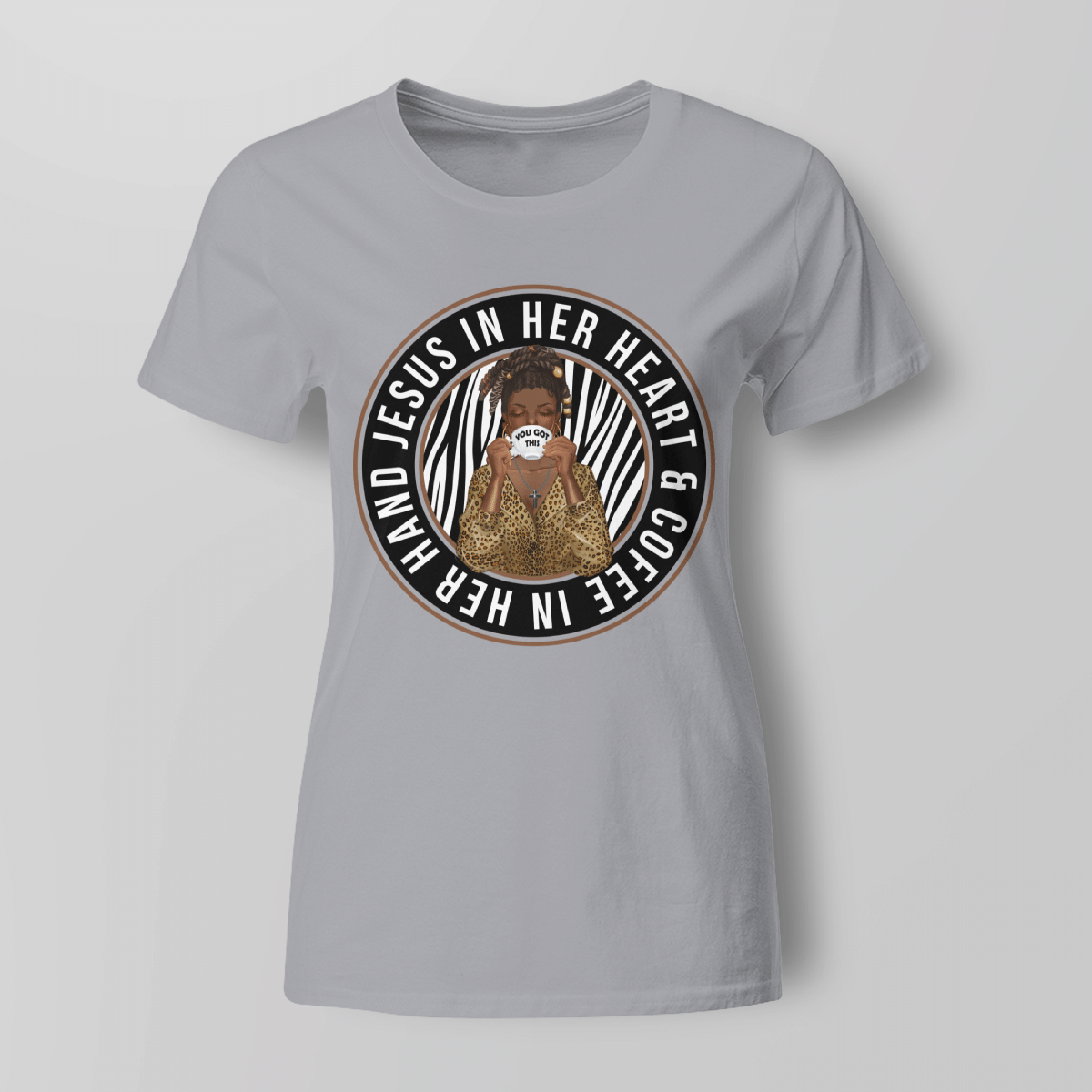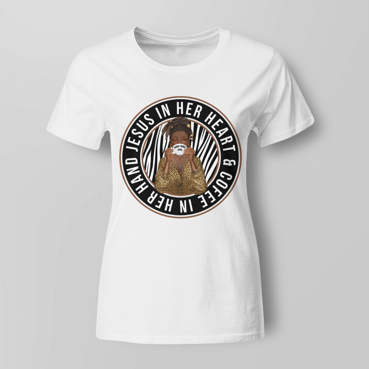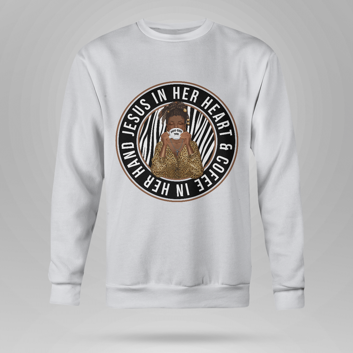 Black Woman Tshirt For Black Girl Shirt Jesus In Her Heart And Coffee In Her Hand Shirts