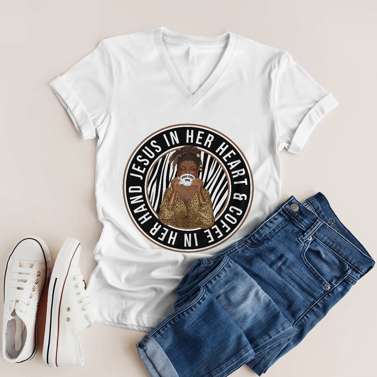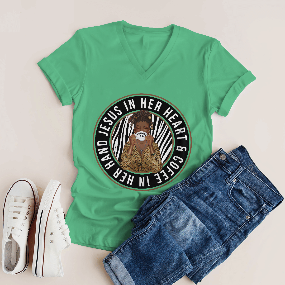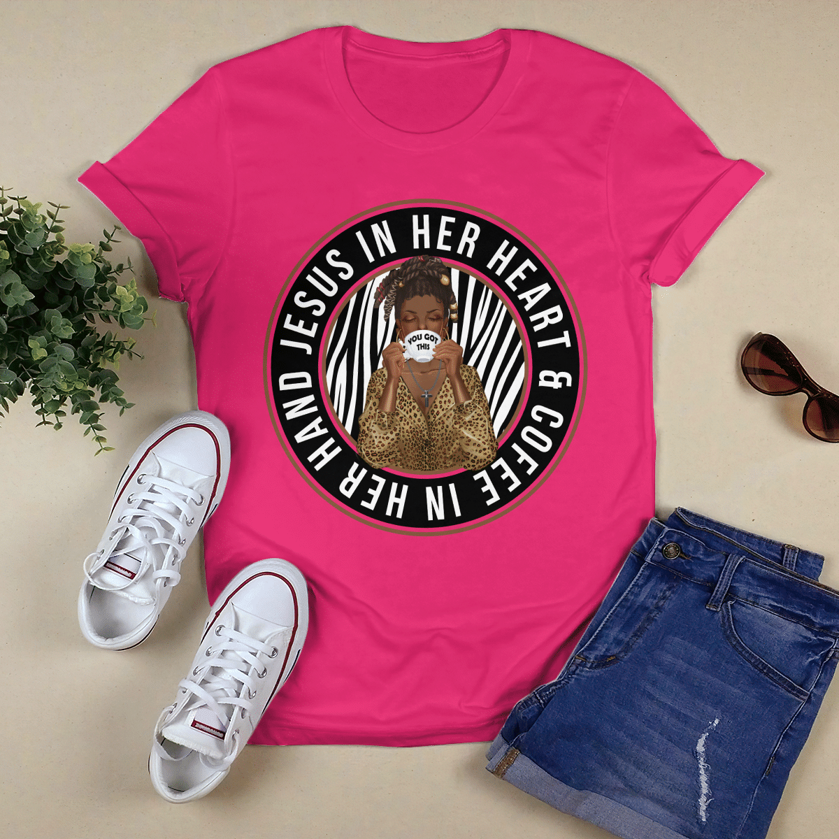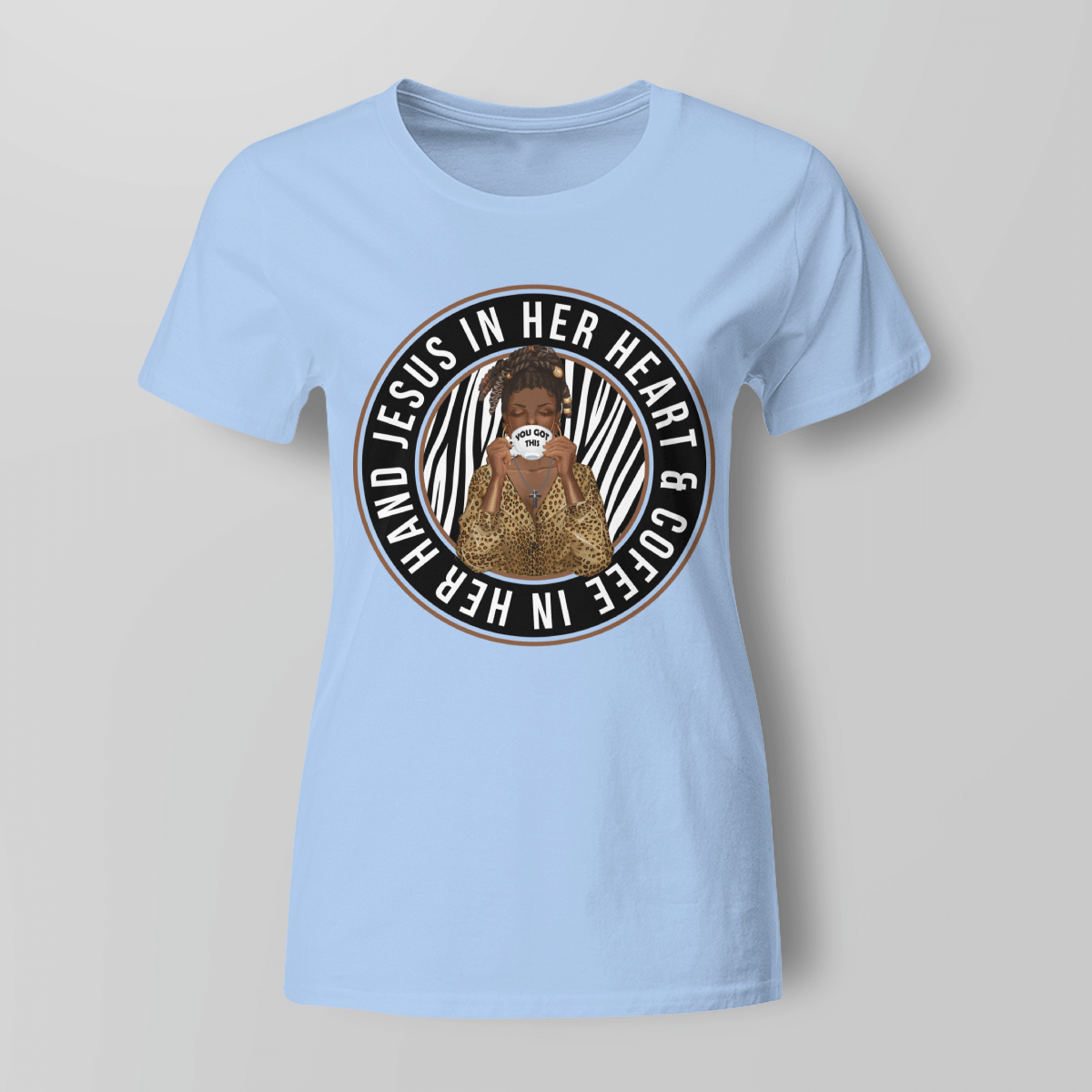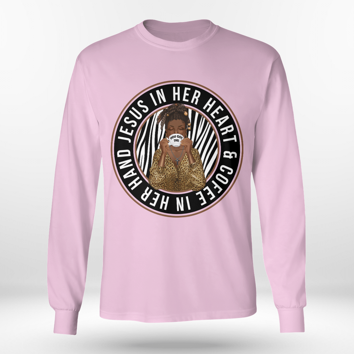 Black Woman Tshirt For Black Girl Shirt Jesus In Her Heart And Coffee In Her Hand Shirts