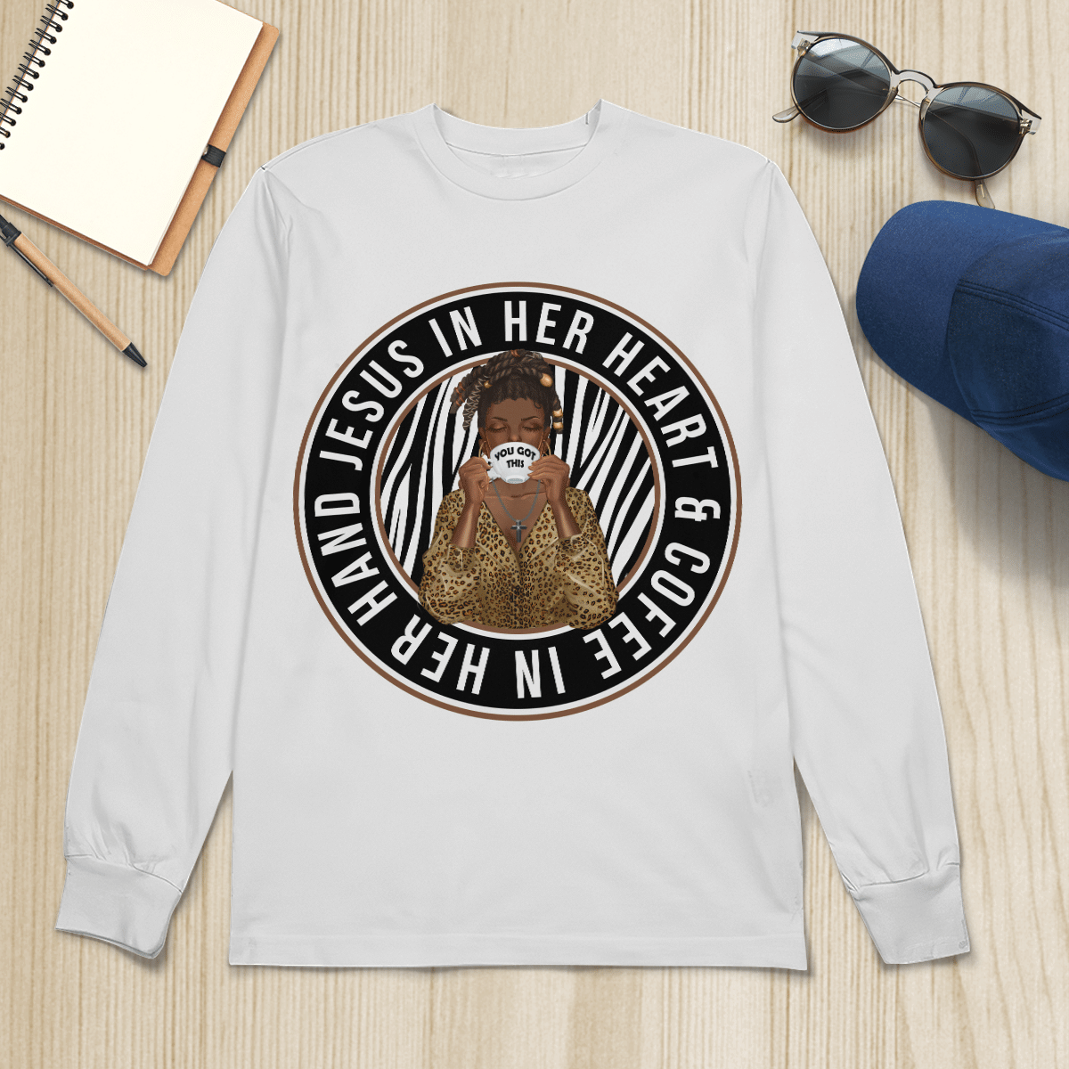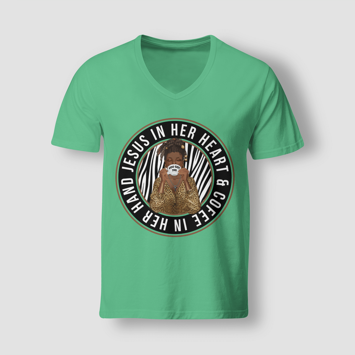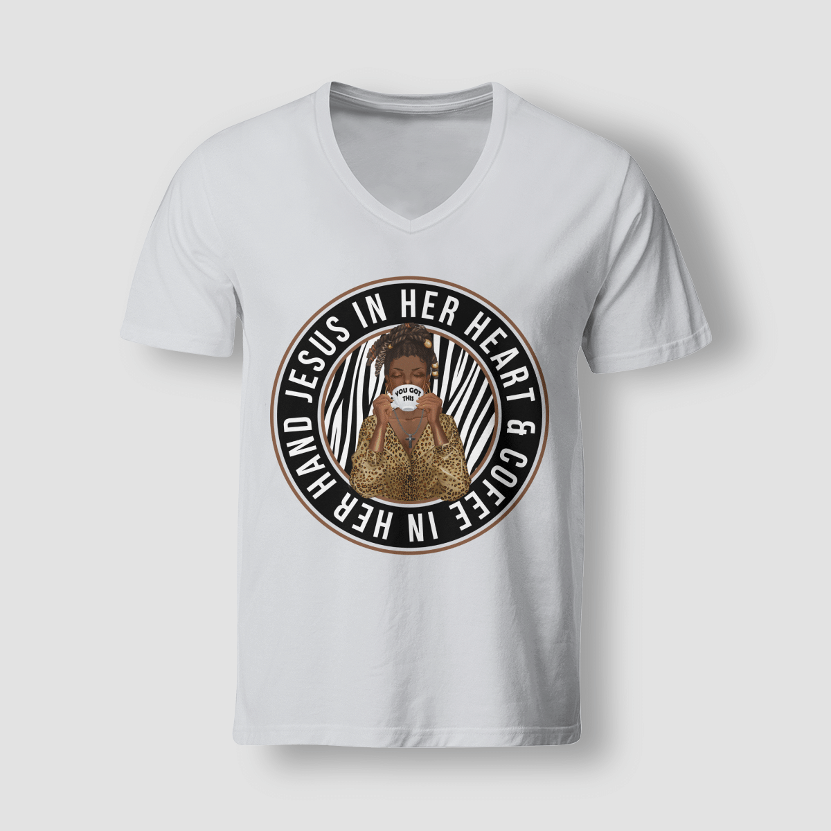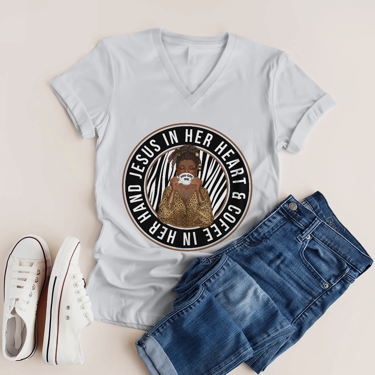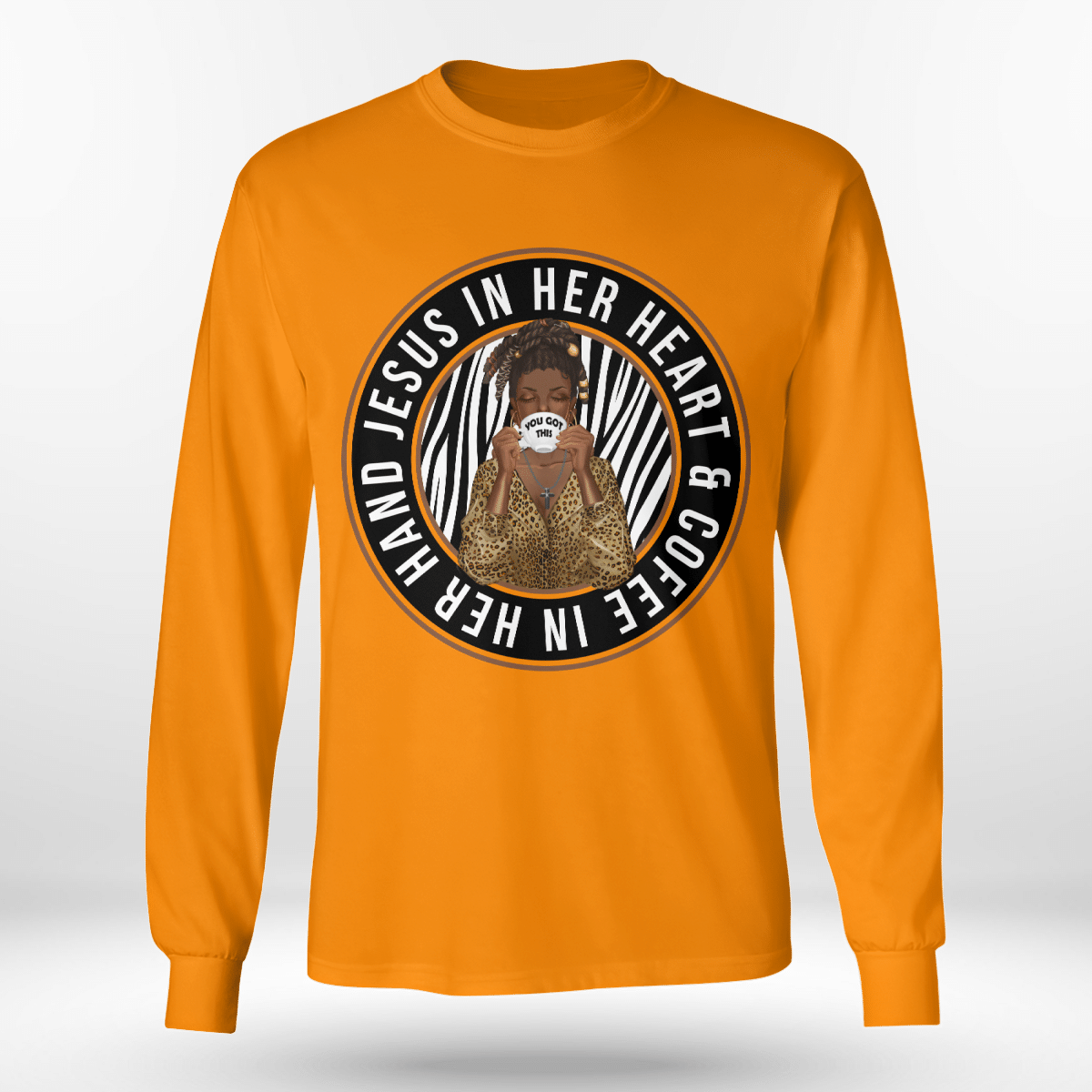 Black Woman Tshirt For Black Girl Shirt Jesus In Her Heart And Coffee In Her Hand Shirts