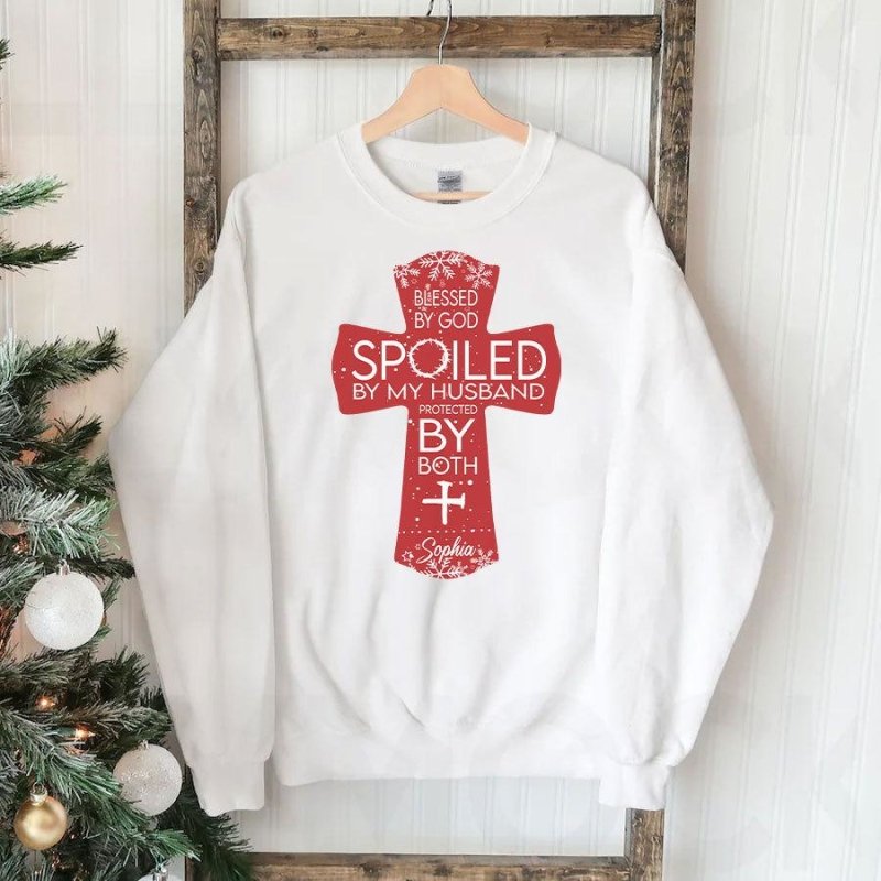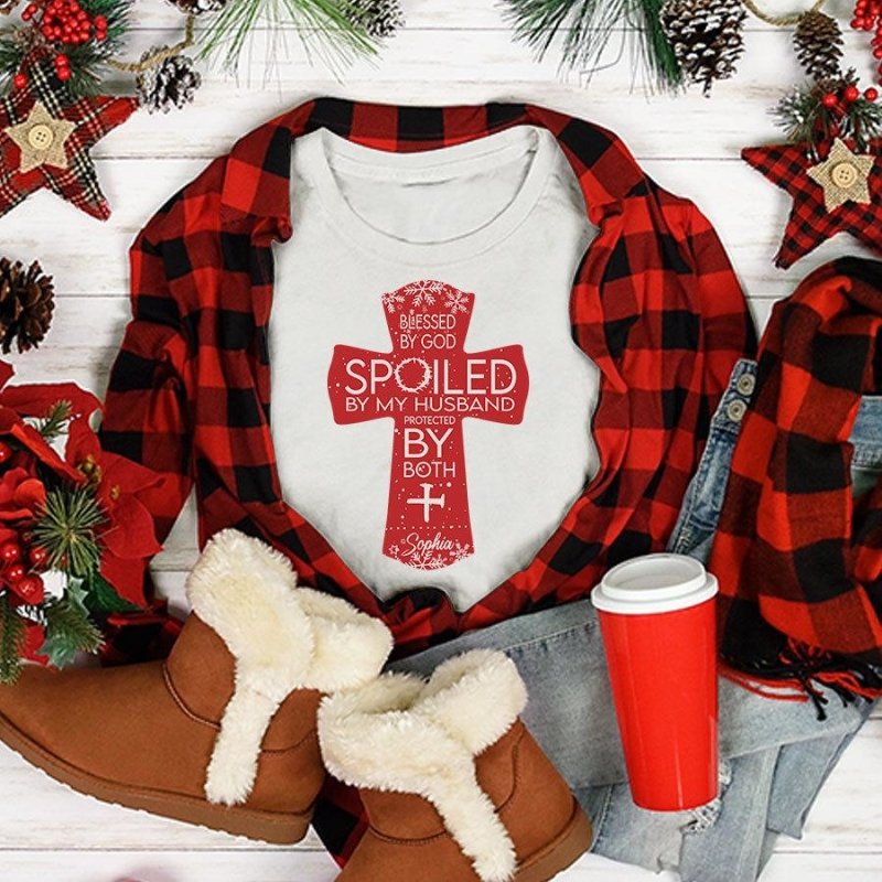 Blessed By God Spoiled By Husband Personalized Christmas Shirt For Couple