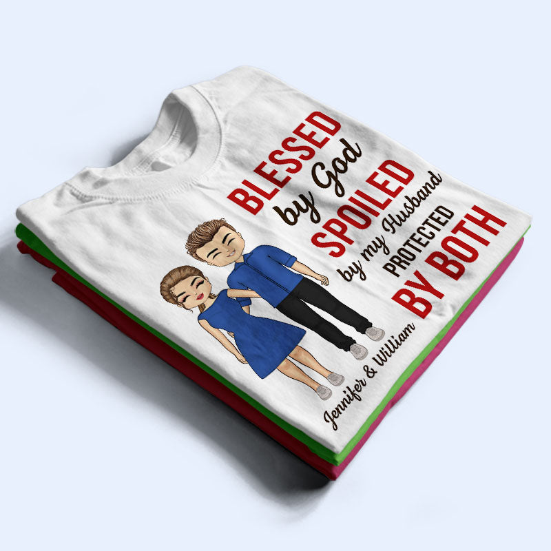 Blessed By God Spoiled By My Husband – Couple Gift – Personalized Custom T Shirt