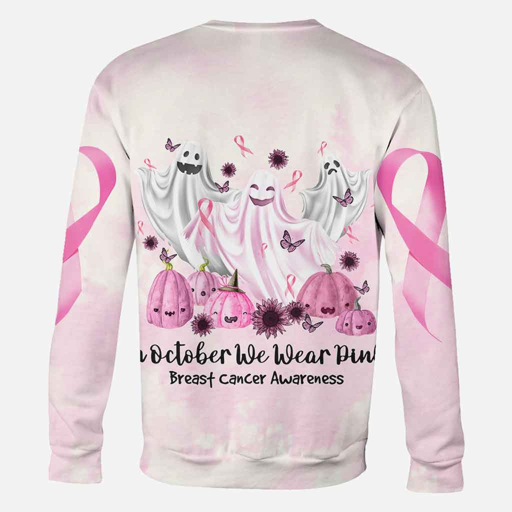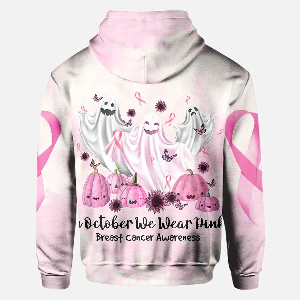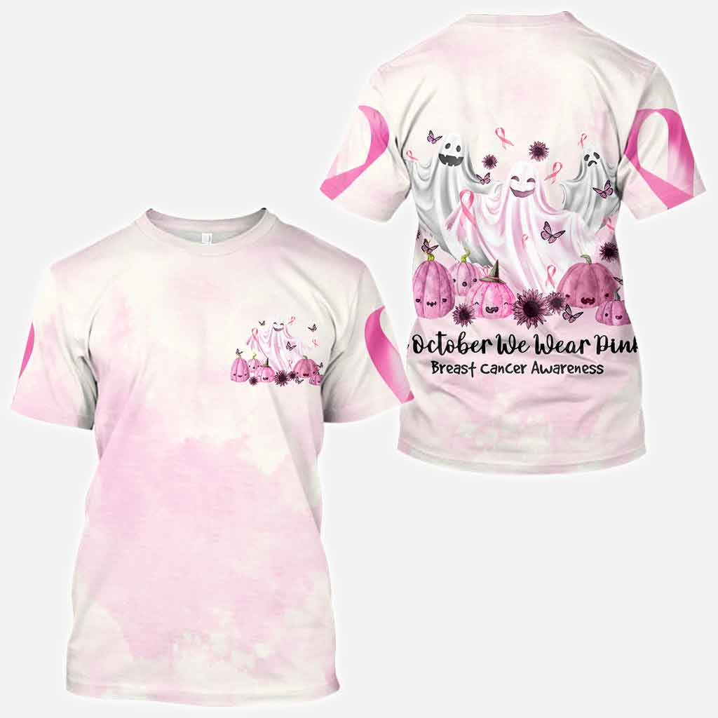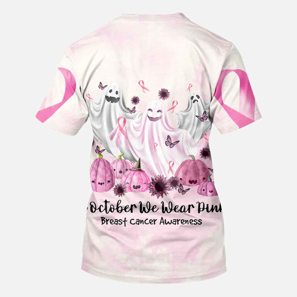 Boo In October We Wear Pink Breast Cancer Awareness All Over Print Shirts