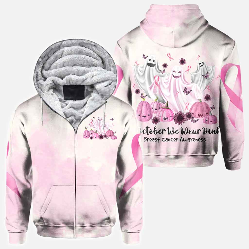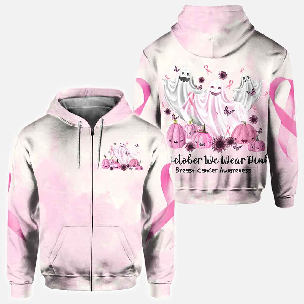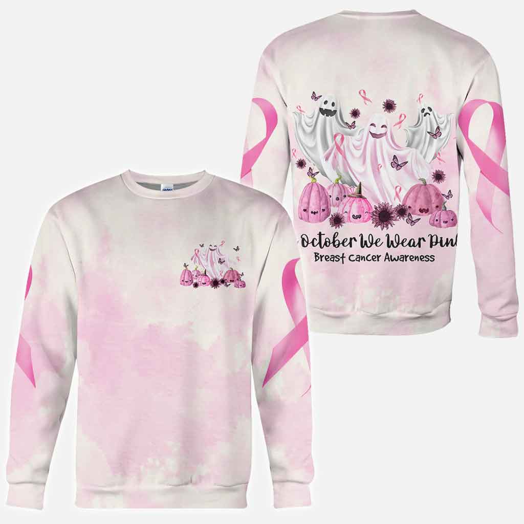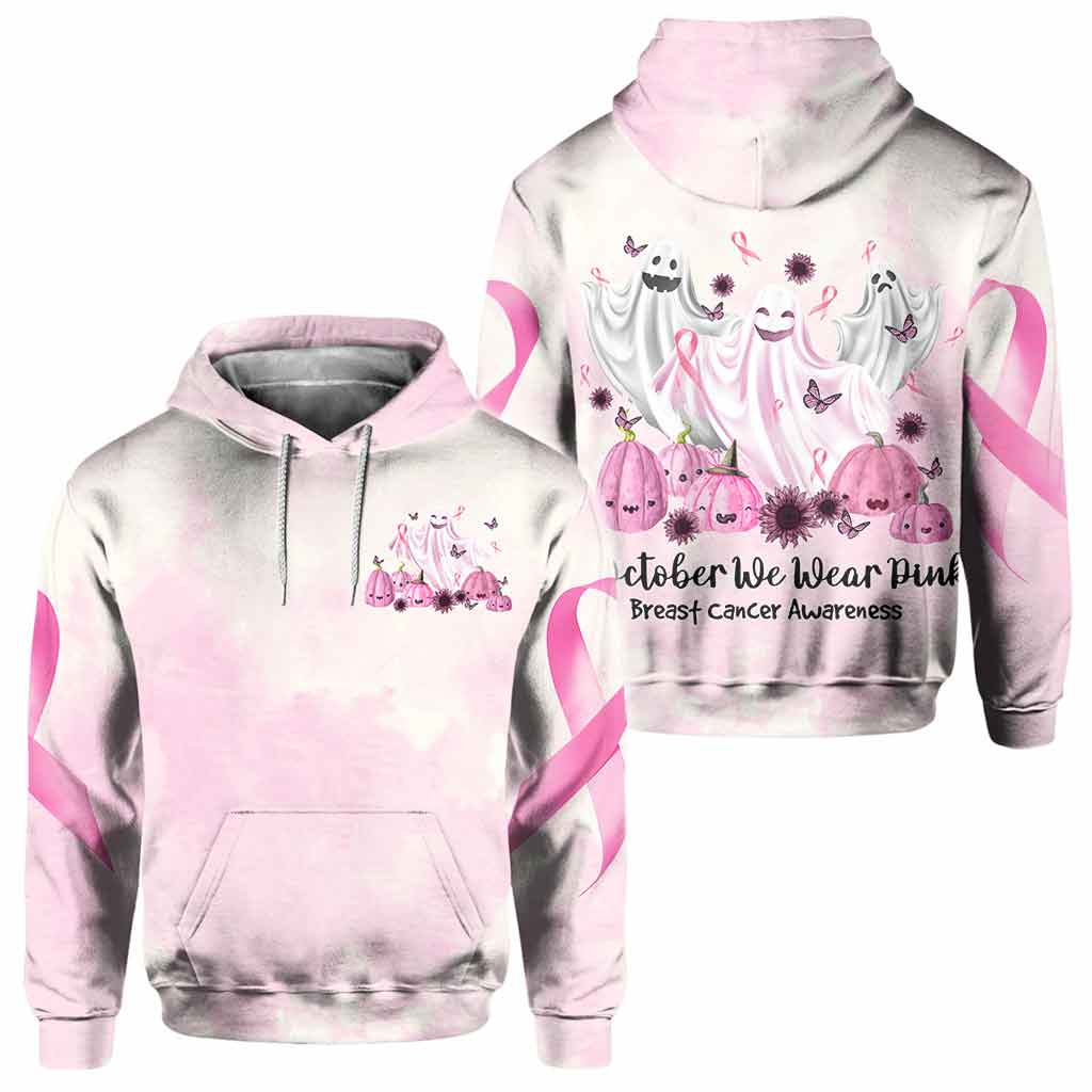 Boo In October We Wear Pink Breast Cancer Awareness All Over Print Shirts