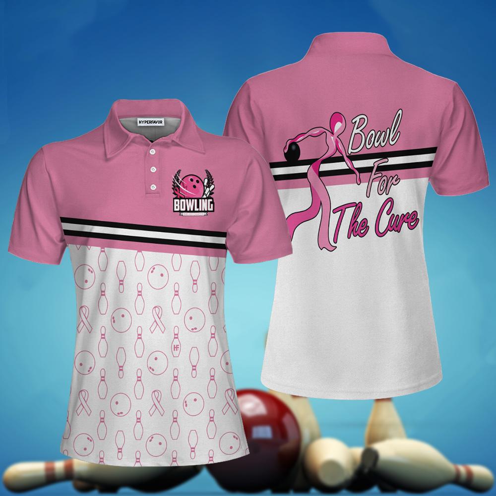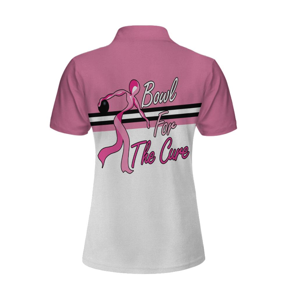 Bowl For The Cure Short Sleeve Women Polo Shirt, Breast Cancer Awareness Polo Shirt For Ladies, Pink Ribbon Shirt