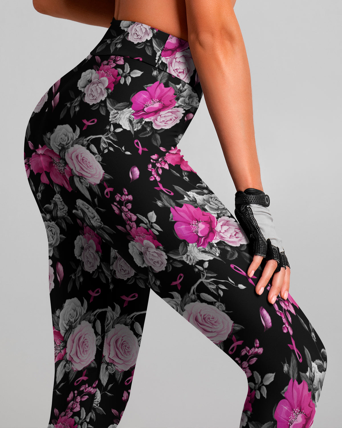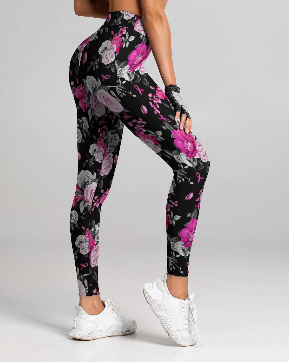Brave™ Leggings – Breast Cancer Awareness Floral Ribbons