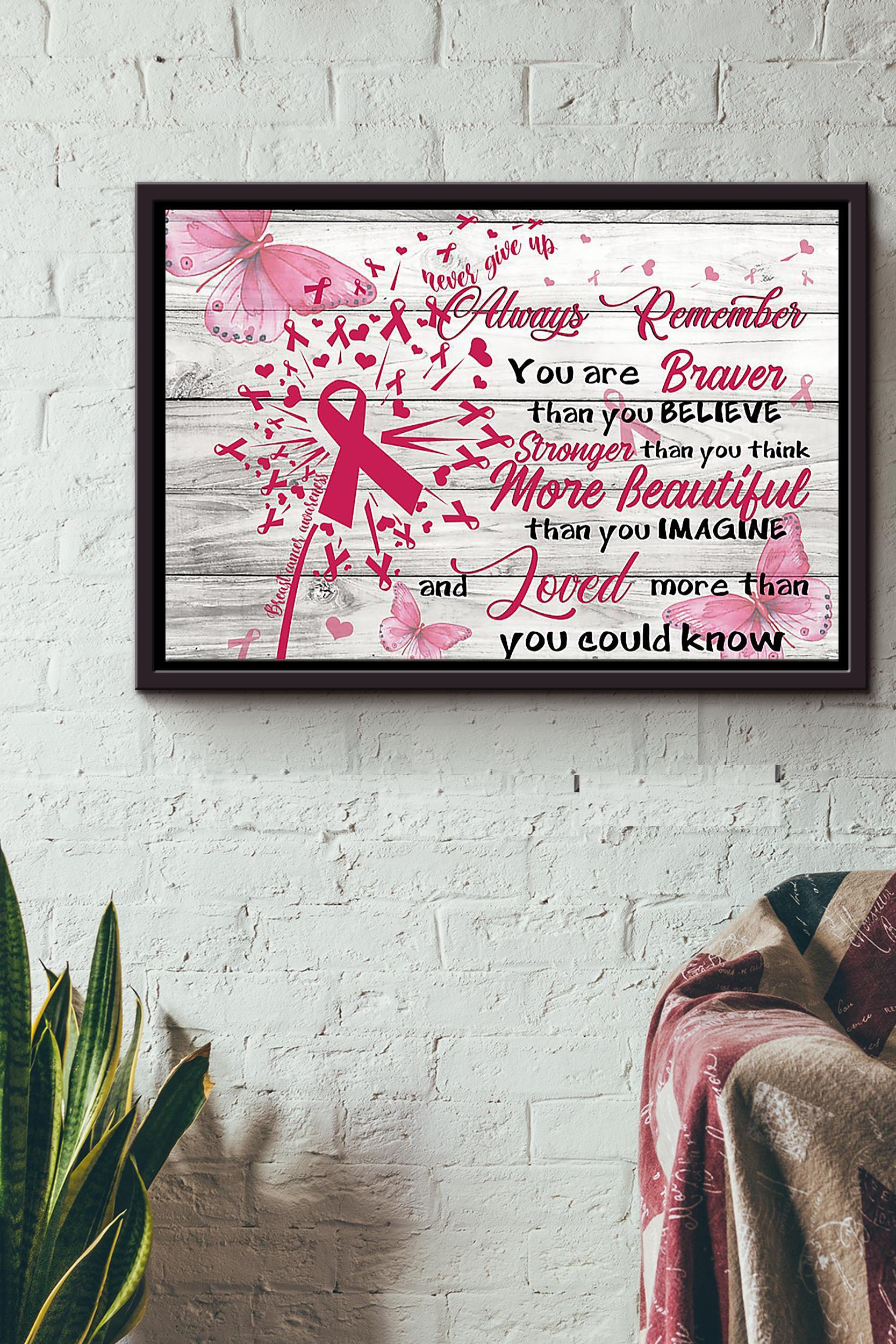 Breast Cancer Awareness Always Remember You Are Braver Than You Believe Stronger Than You Think More Beautiful Than You Imagine And Loved More Than You Could Know Poster N Framed Matte Canvas