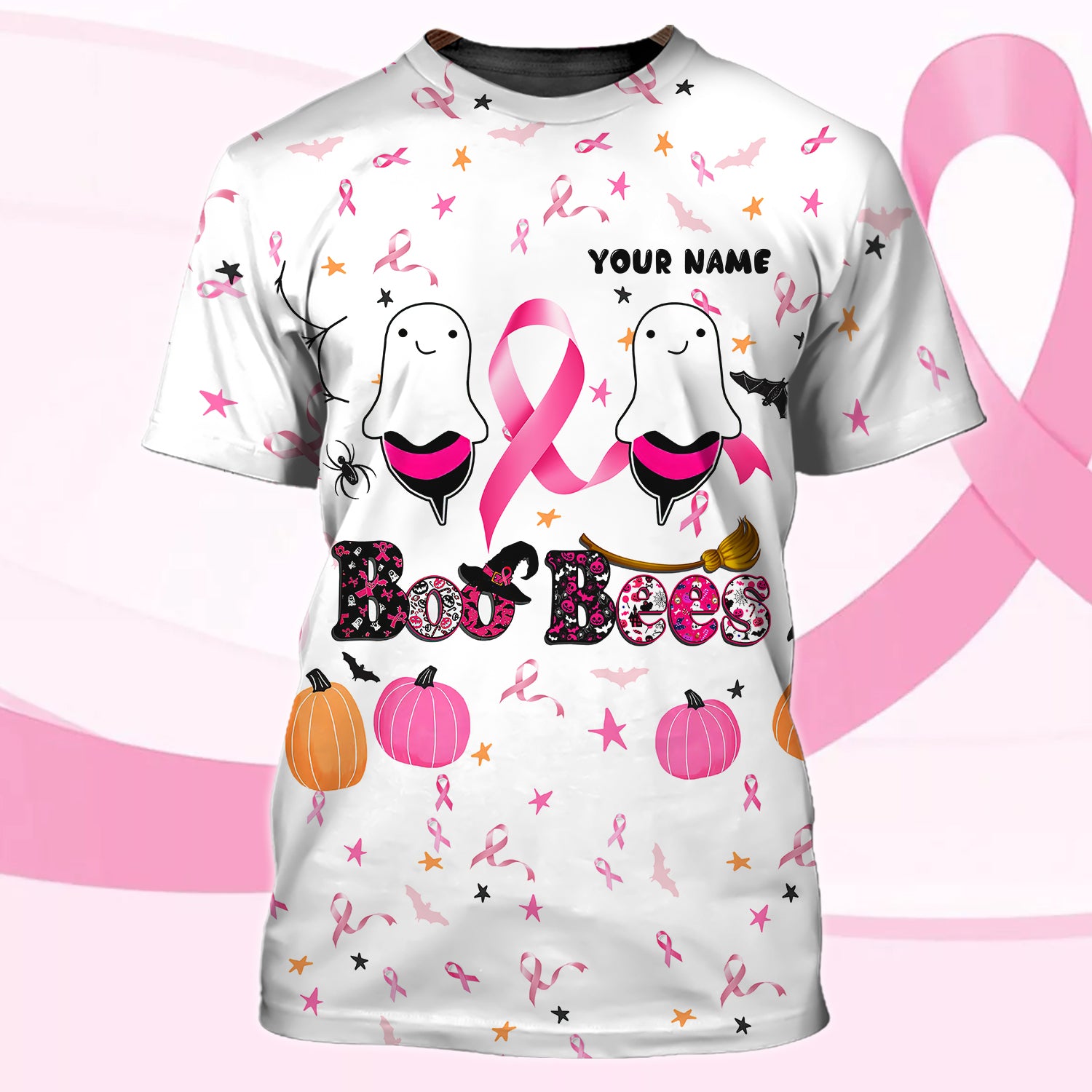 Breast Cancer Awareness – Boo Bees – Personalized Name 3D T Shirt – Hdmt