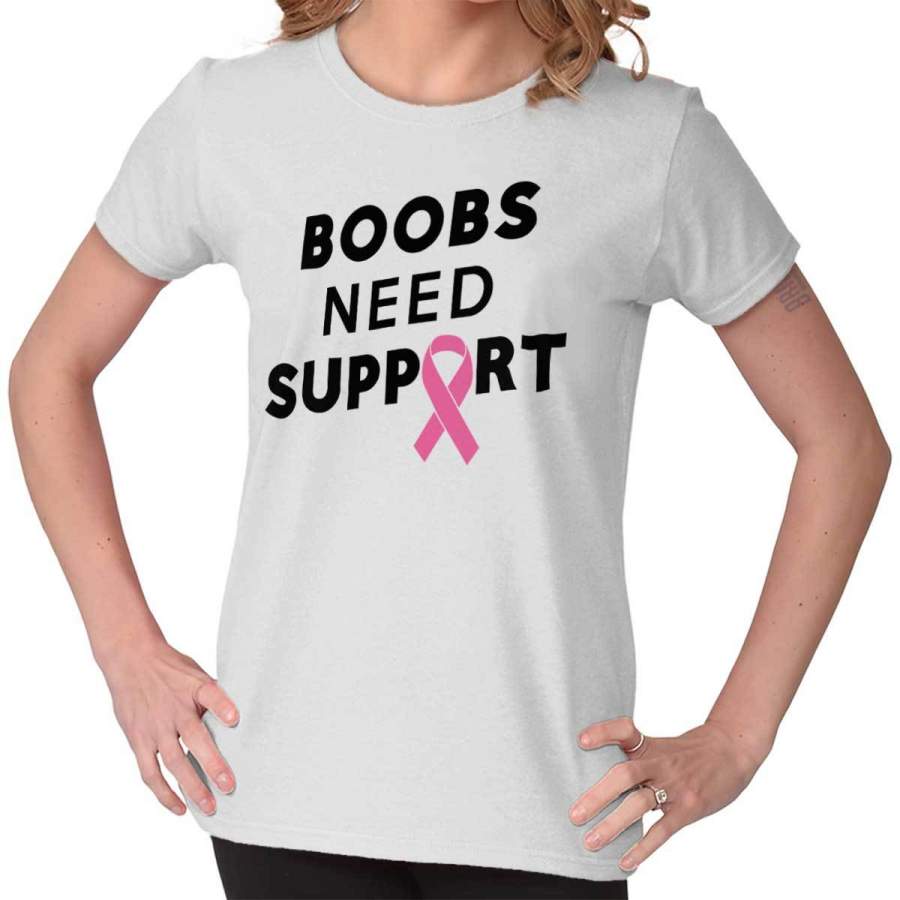 Breast Cancer Awareness Boobs Need Support Ladies T-Shirt